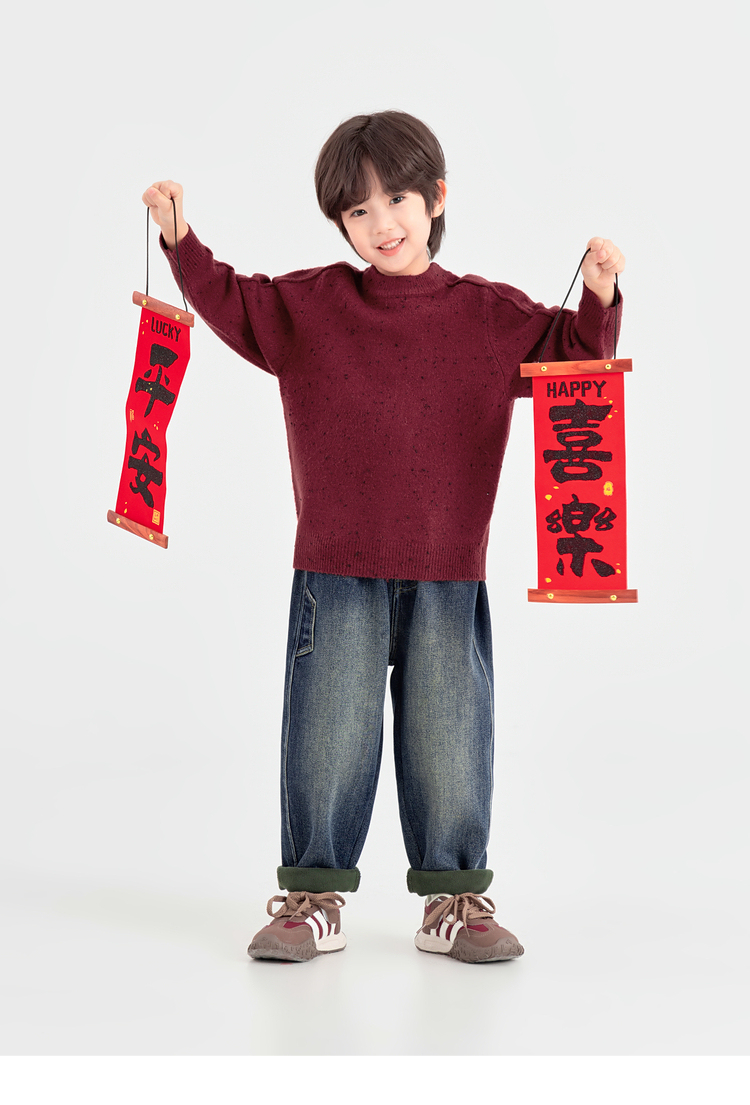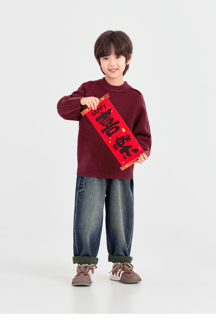 【件件底价,童装双倍积分】多多家男童毛衣针织衫秋冬款2025冬装新款儿童中大童红色新年上衣11420