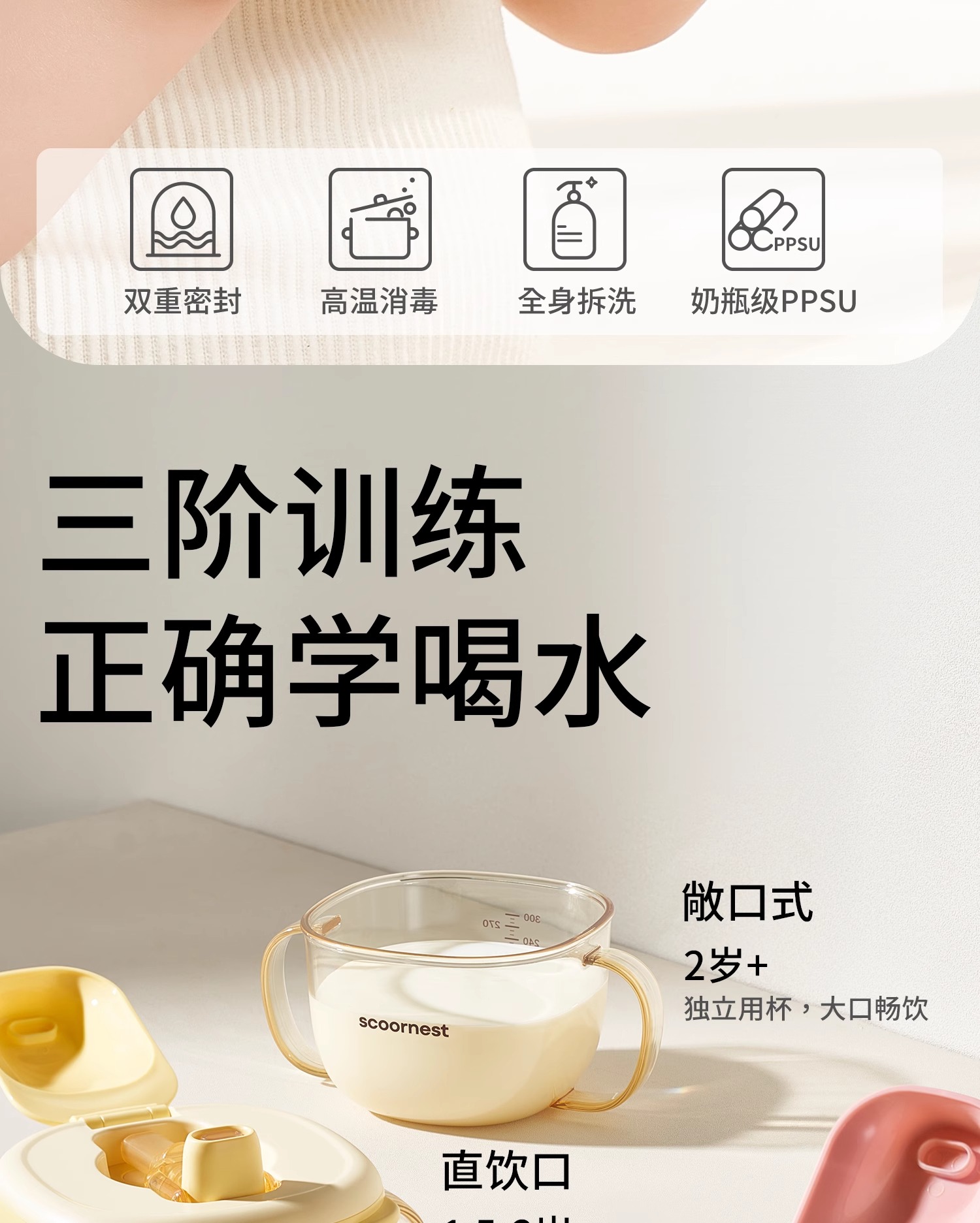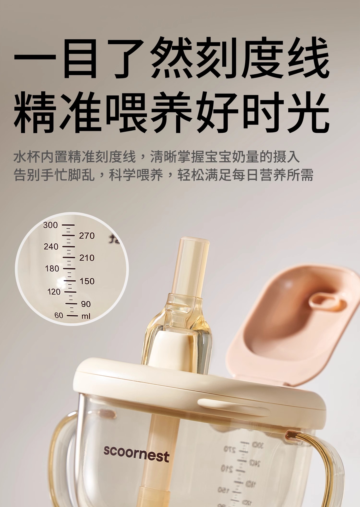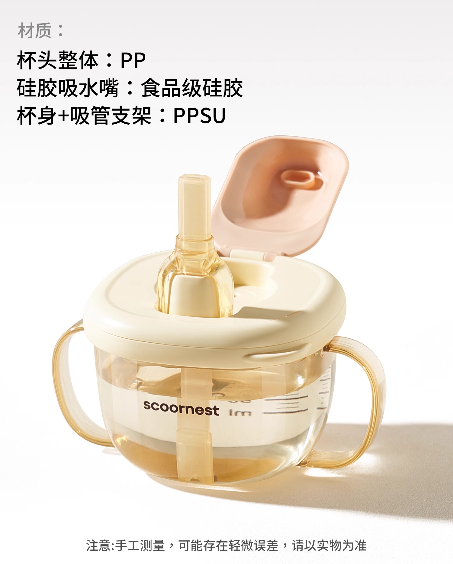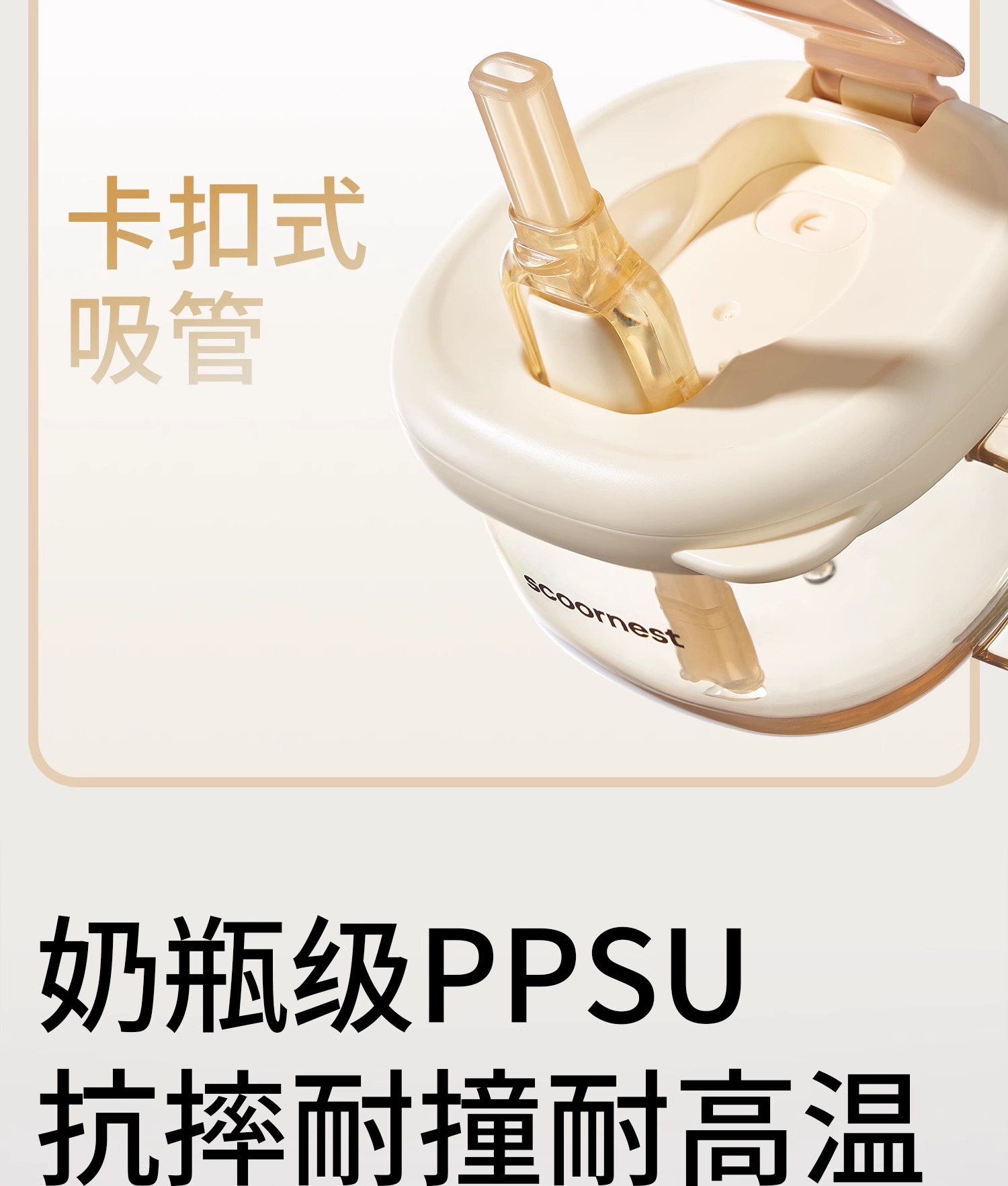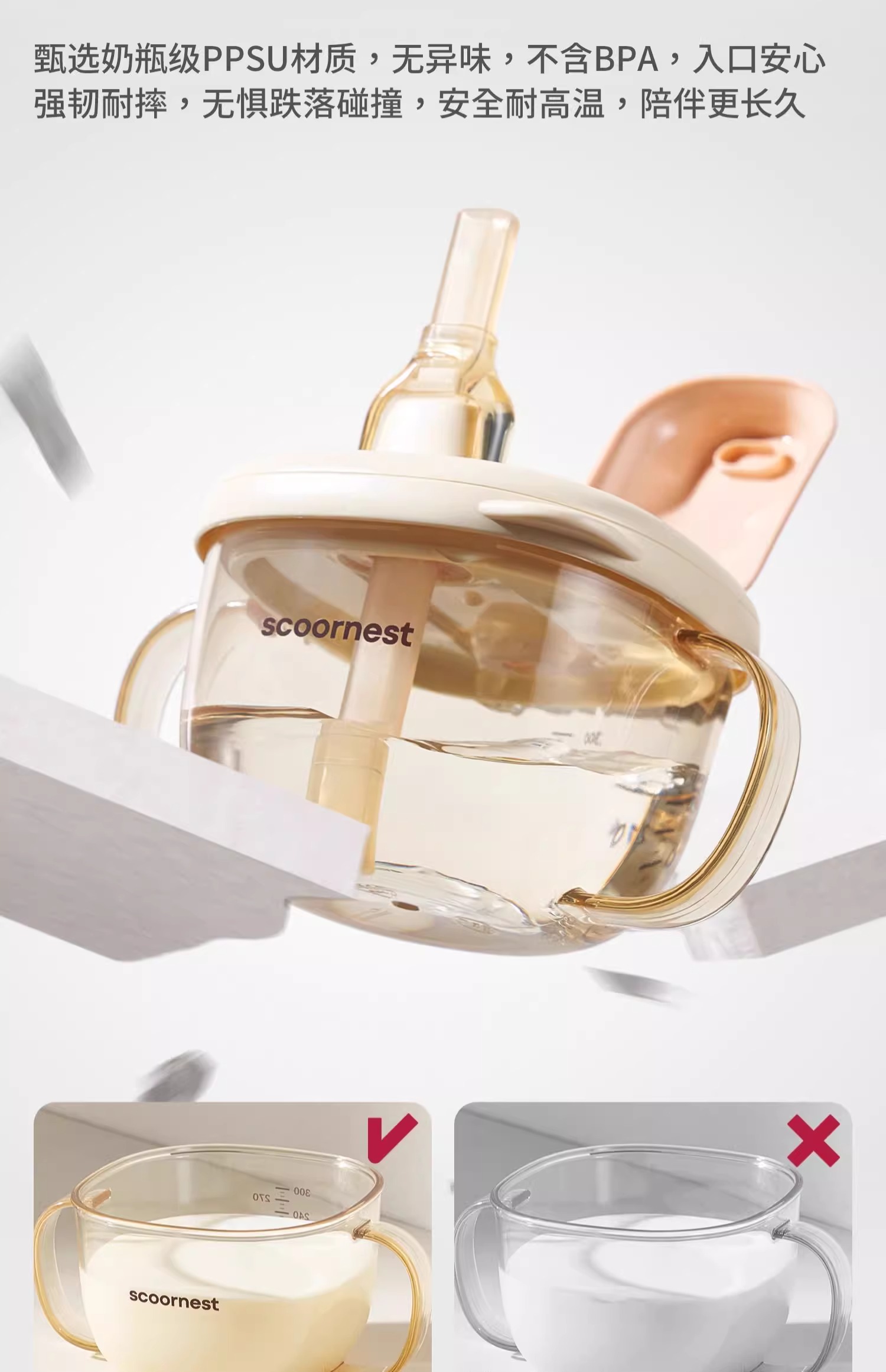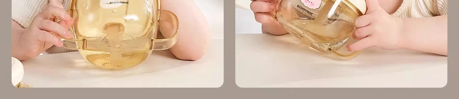 科巢儿童牛奶杯1-2-3岁以上宝宝奶瓶PPSU刻度吸管直饮喝水杯防摔