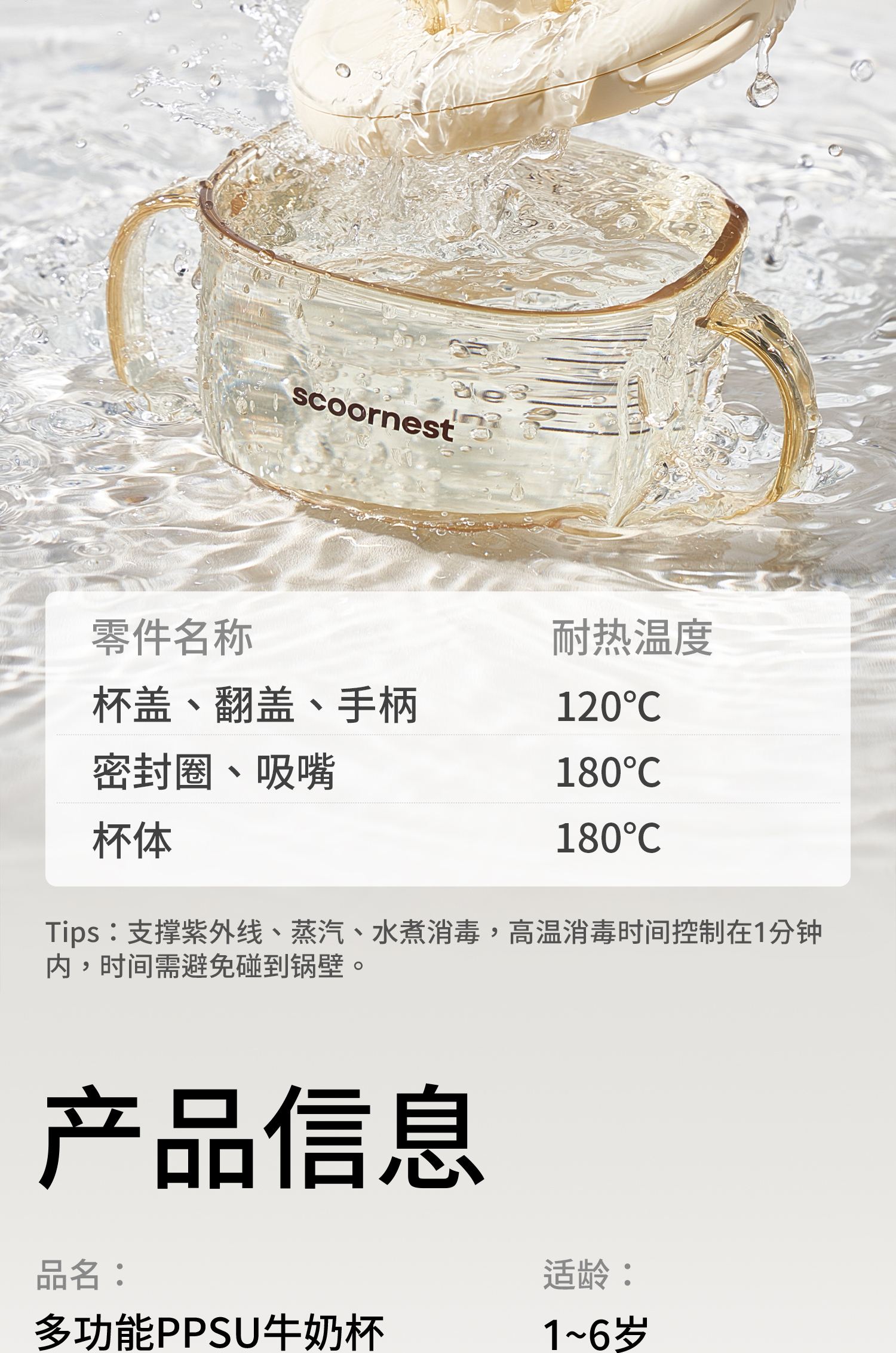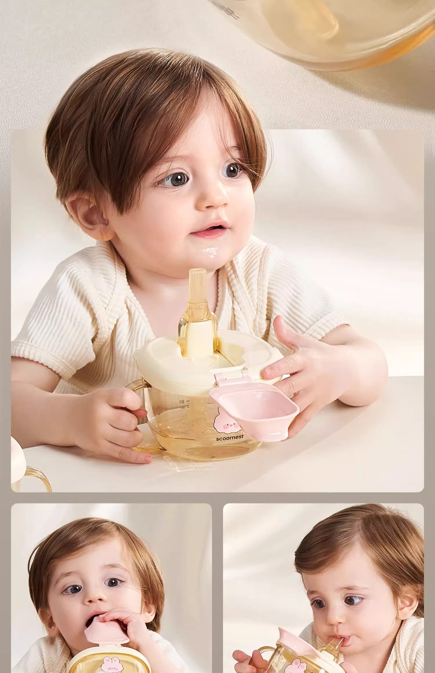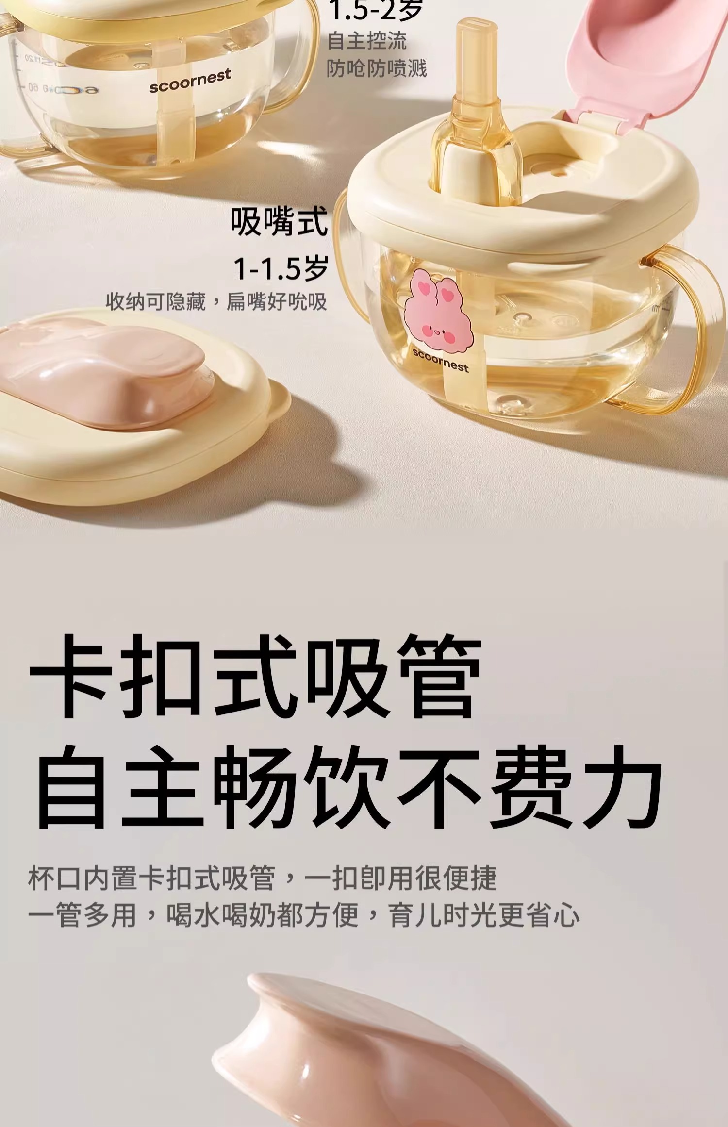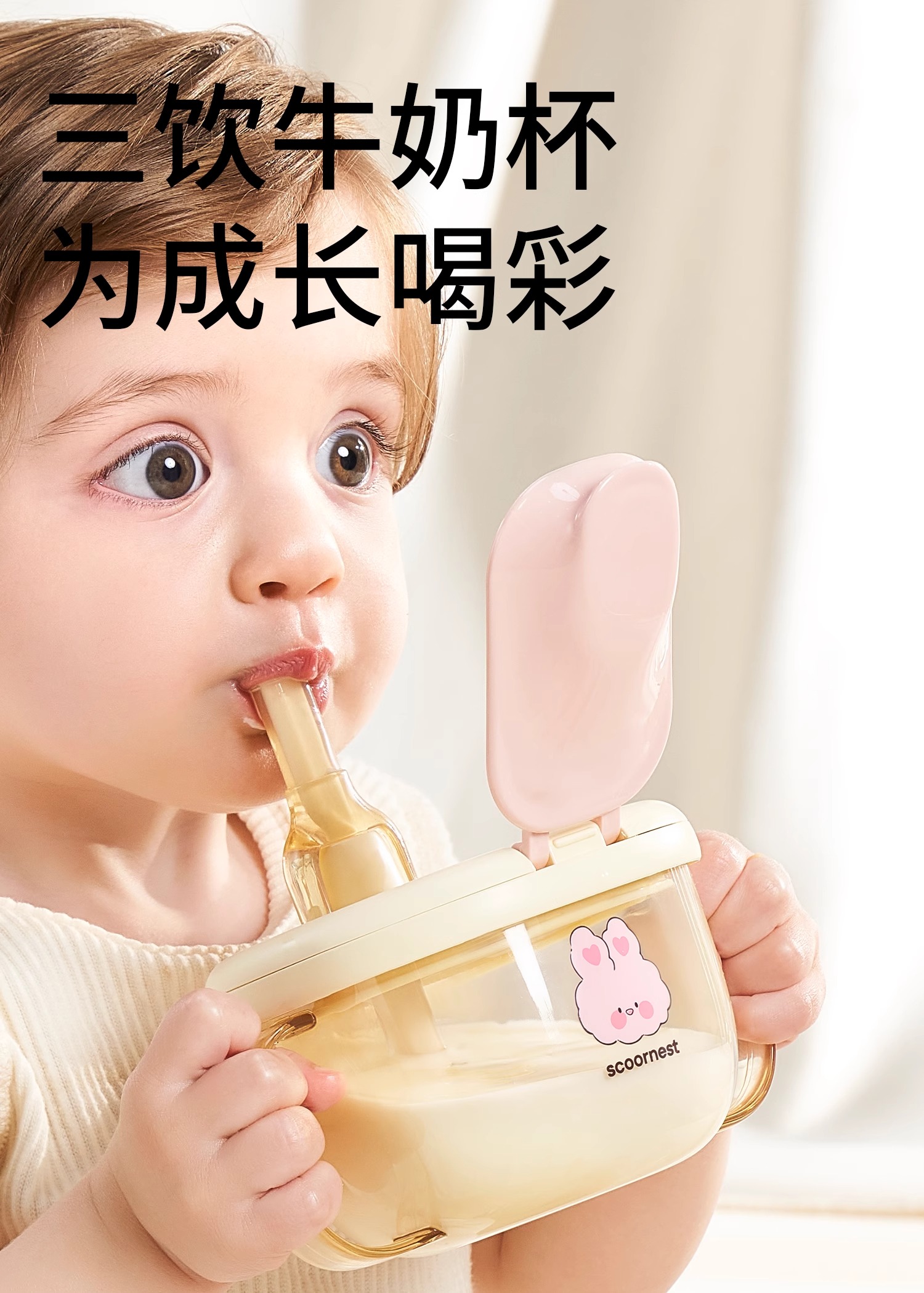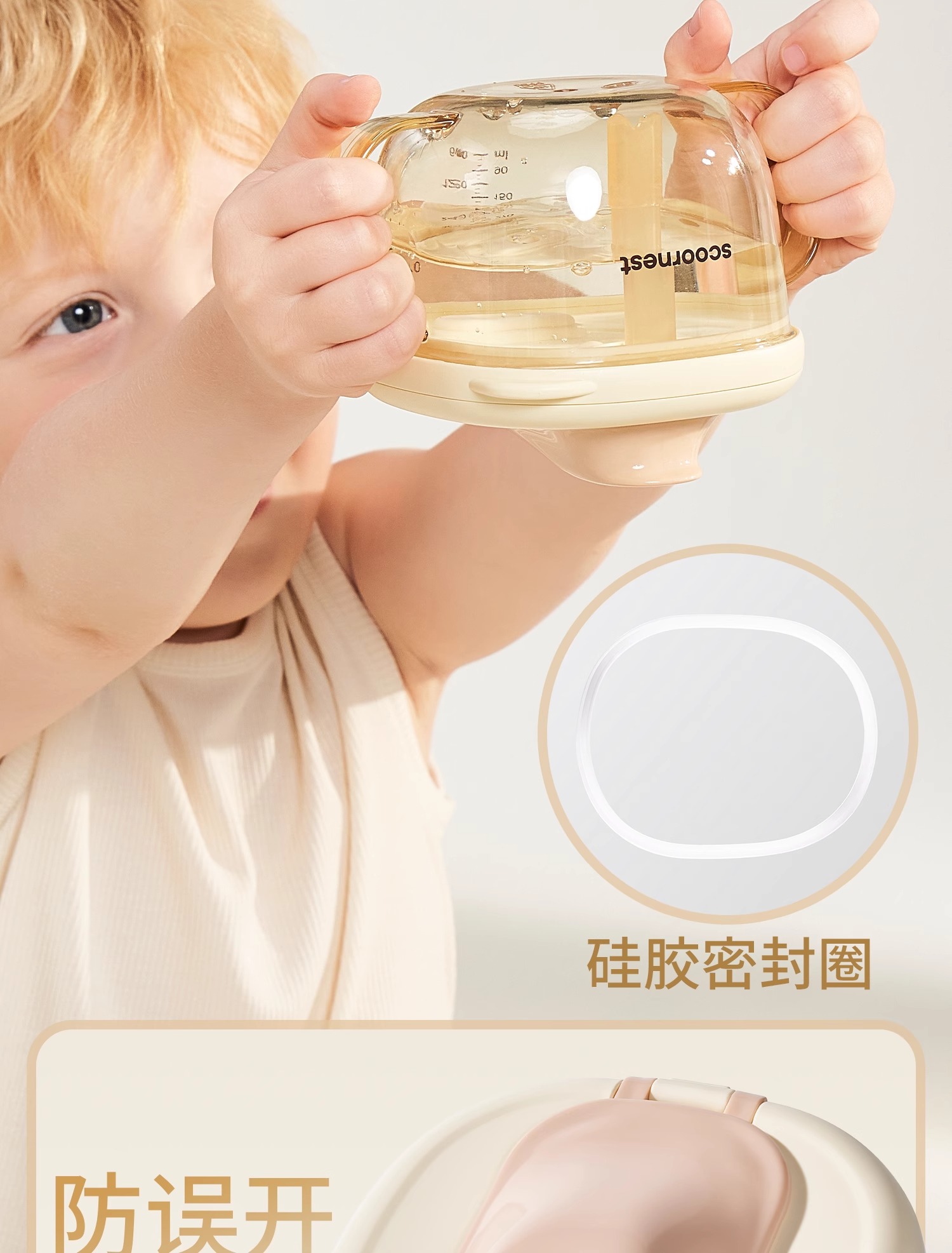 科巢儿童牛奶杯1-2-3岁以上宝宝奶瓶PPSU刻度吸管直饮喝水杯防摔