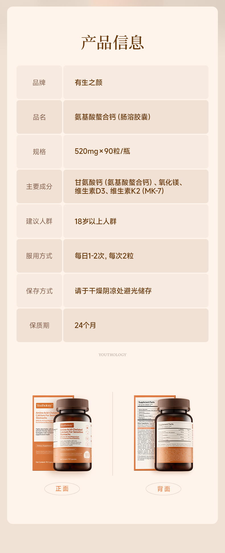 Youthology 成人氨基酸螯合钙胶囊 520mg*90粒