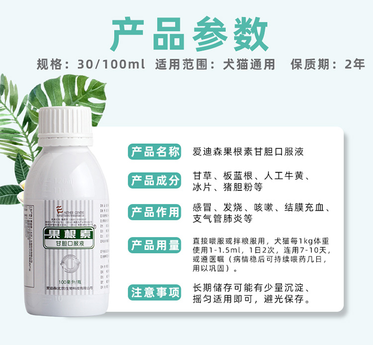 爱迪森果根素甘胆口服液狗狗猫咪宠物感冒流鼻涕咳嗽猫鼻支100ml