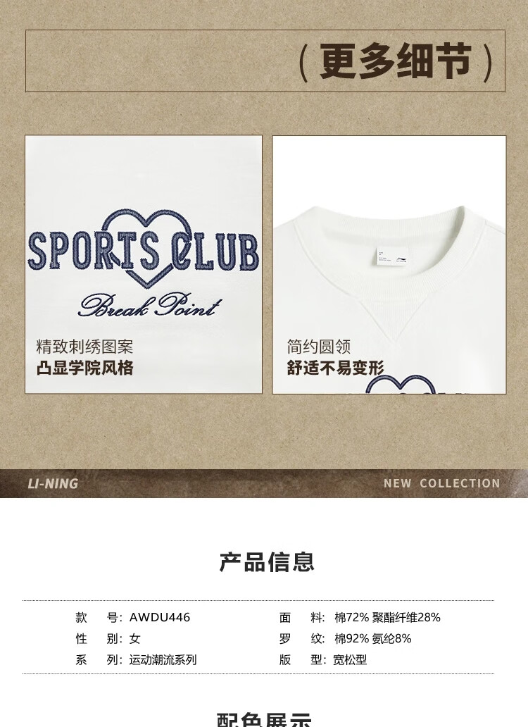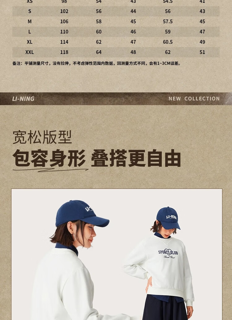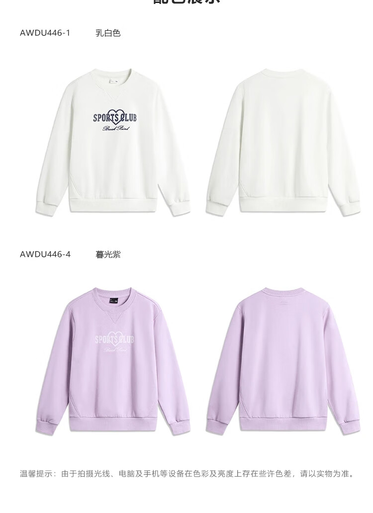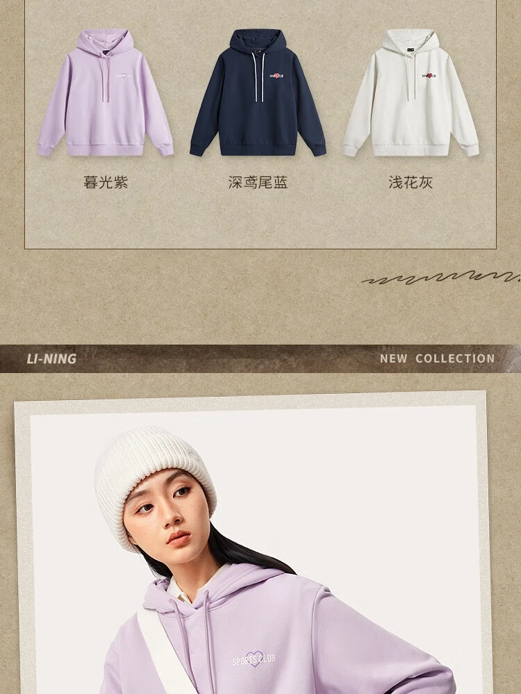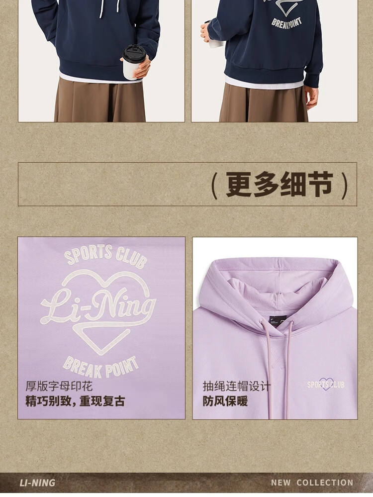 李宁加绒卫衣女宽松保暖连帽潮流时尚百搭运动上衣AWDU452