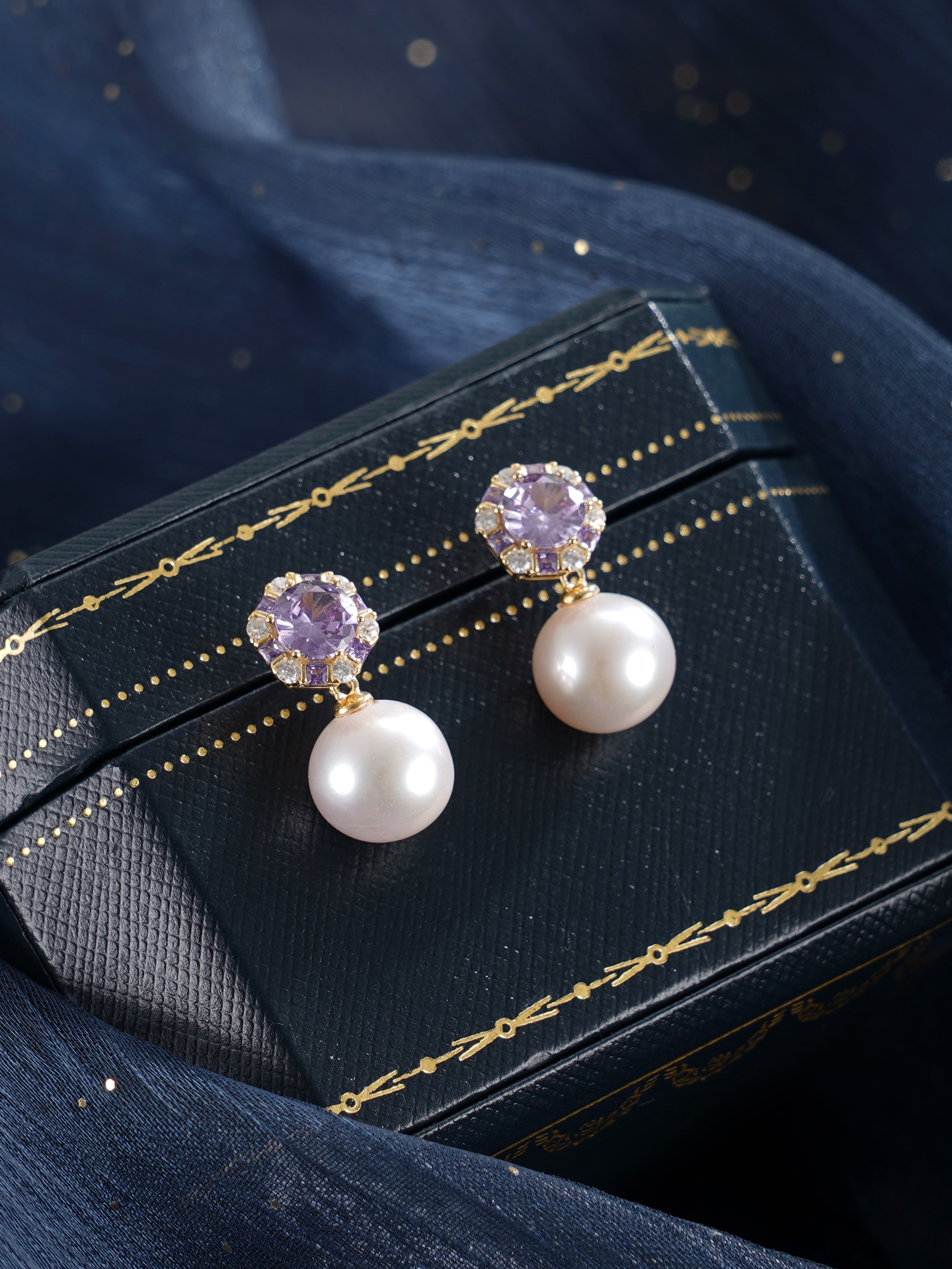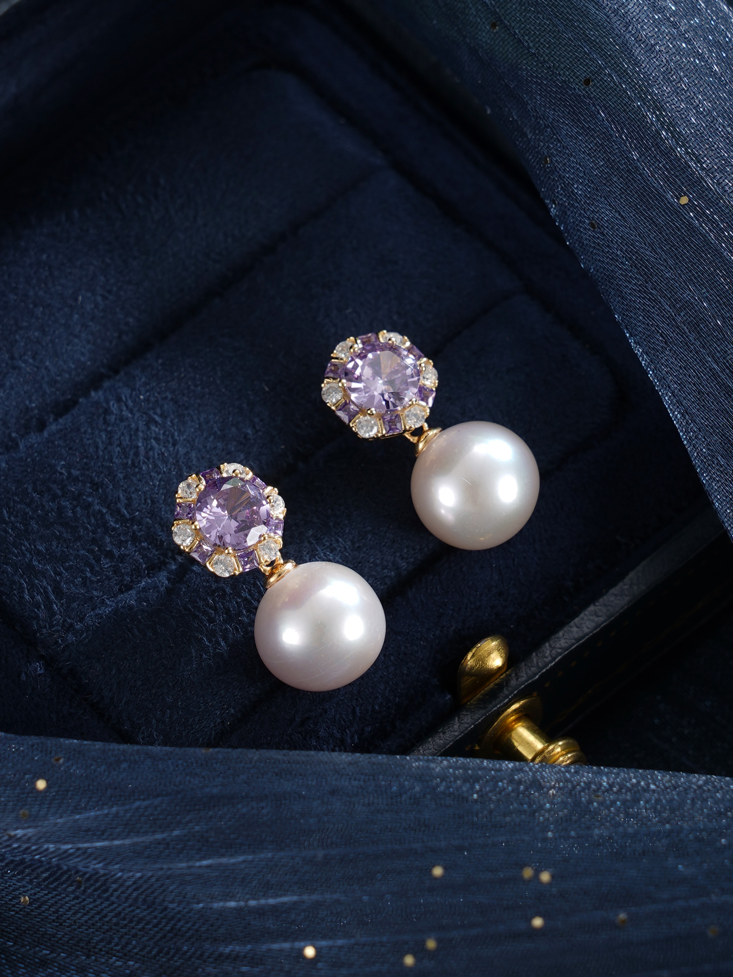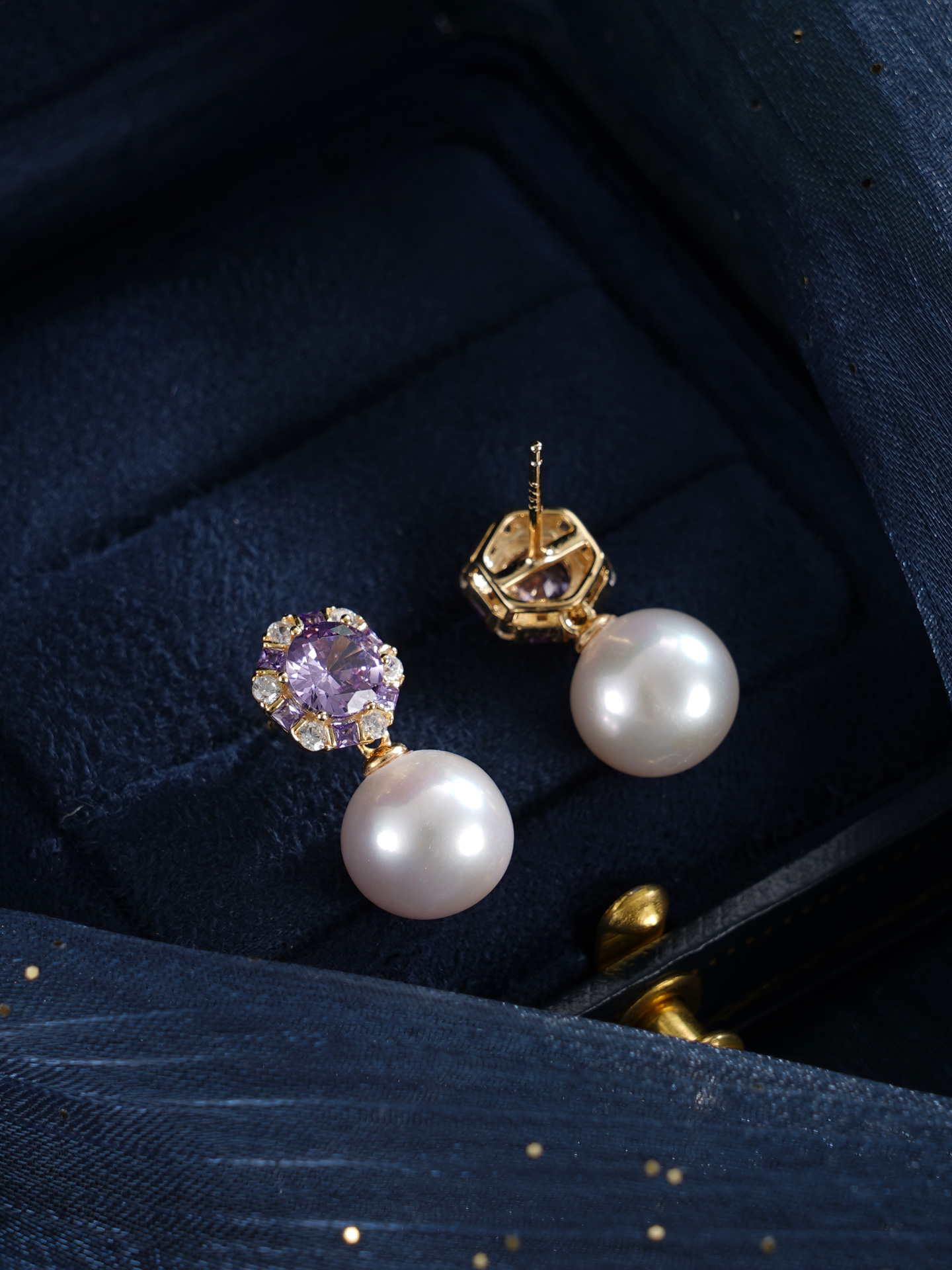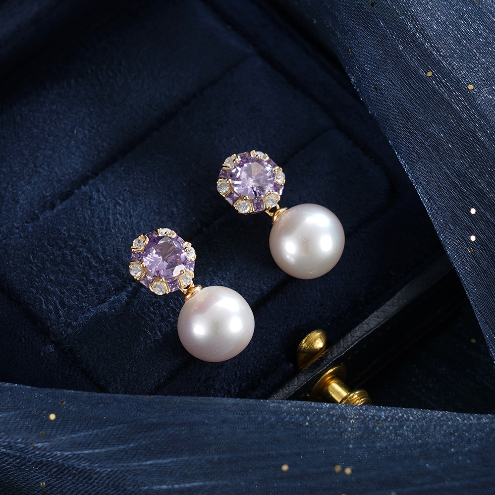 子佩集【紫宸瑶光】银S925珍珠惜王妃耳钉【MLEH021】10mm珠镀金紫锆石2601