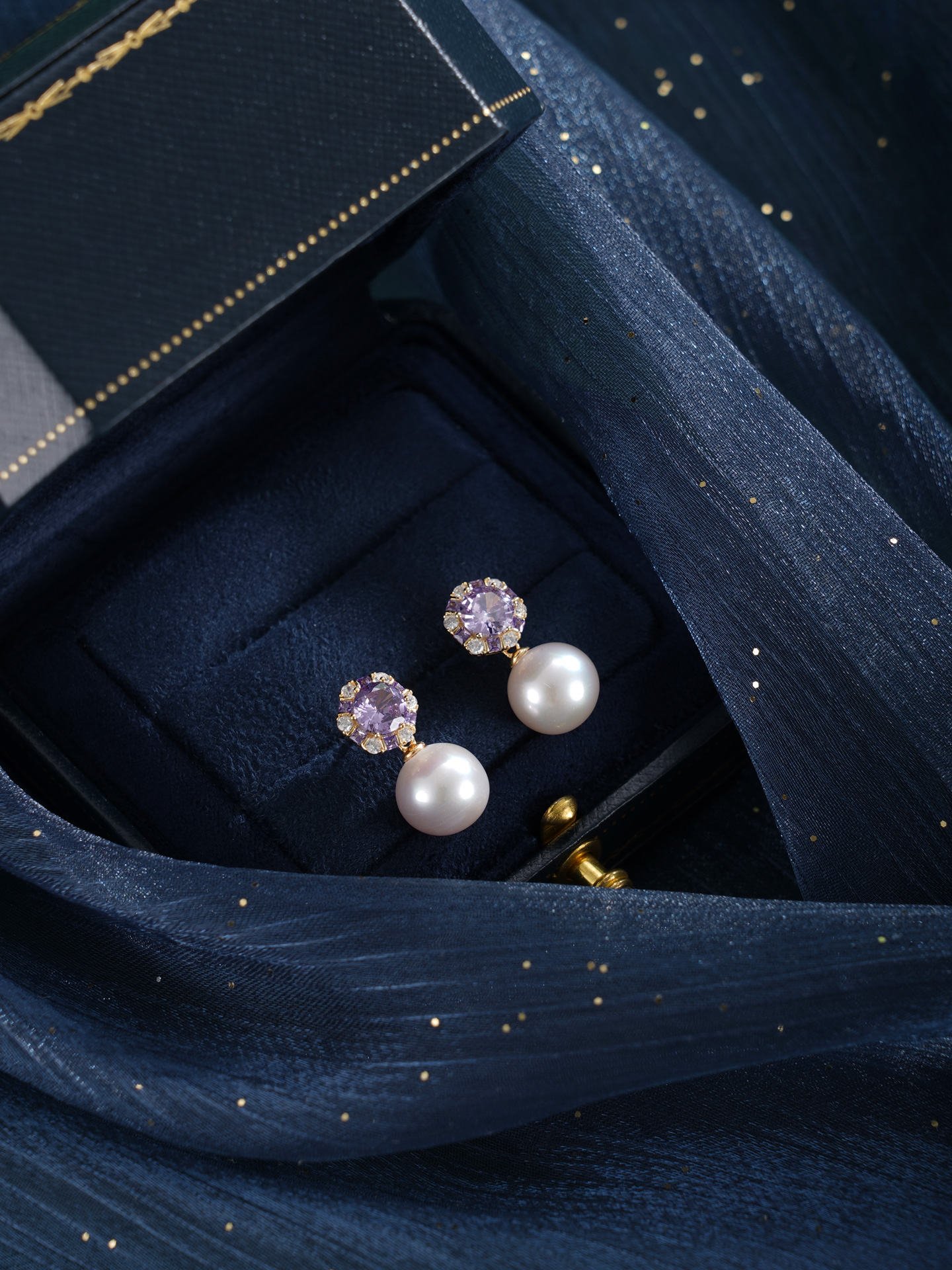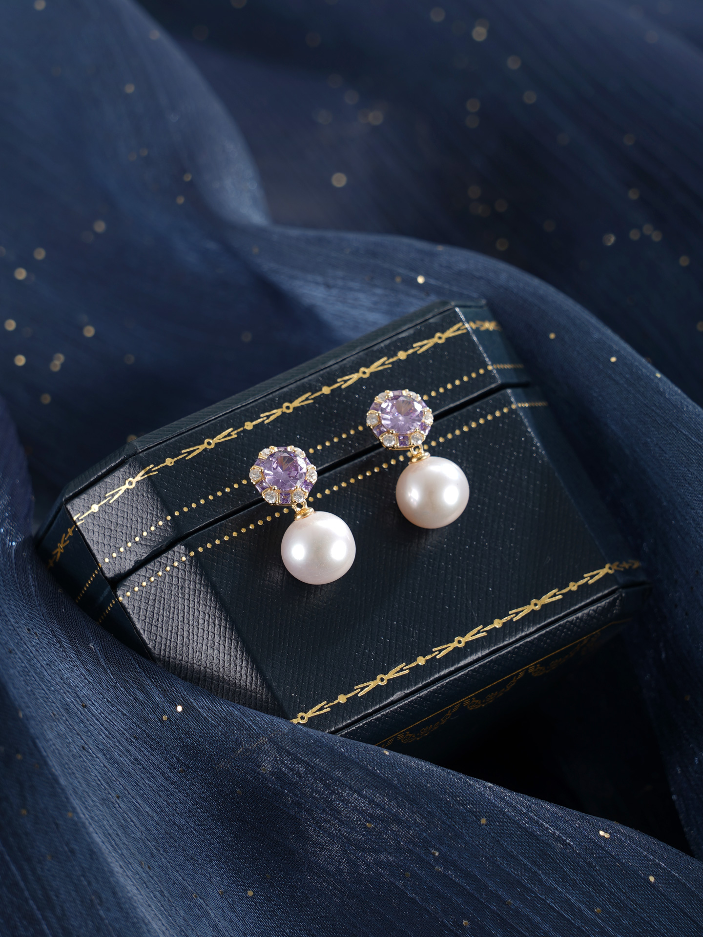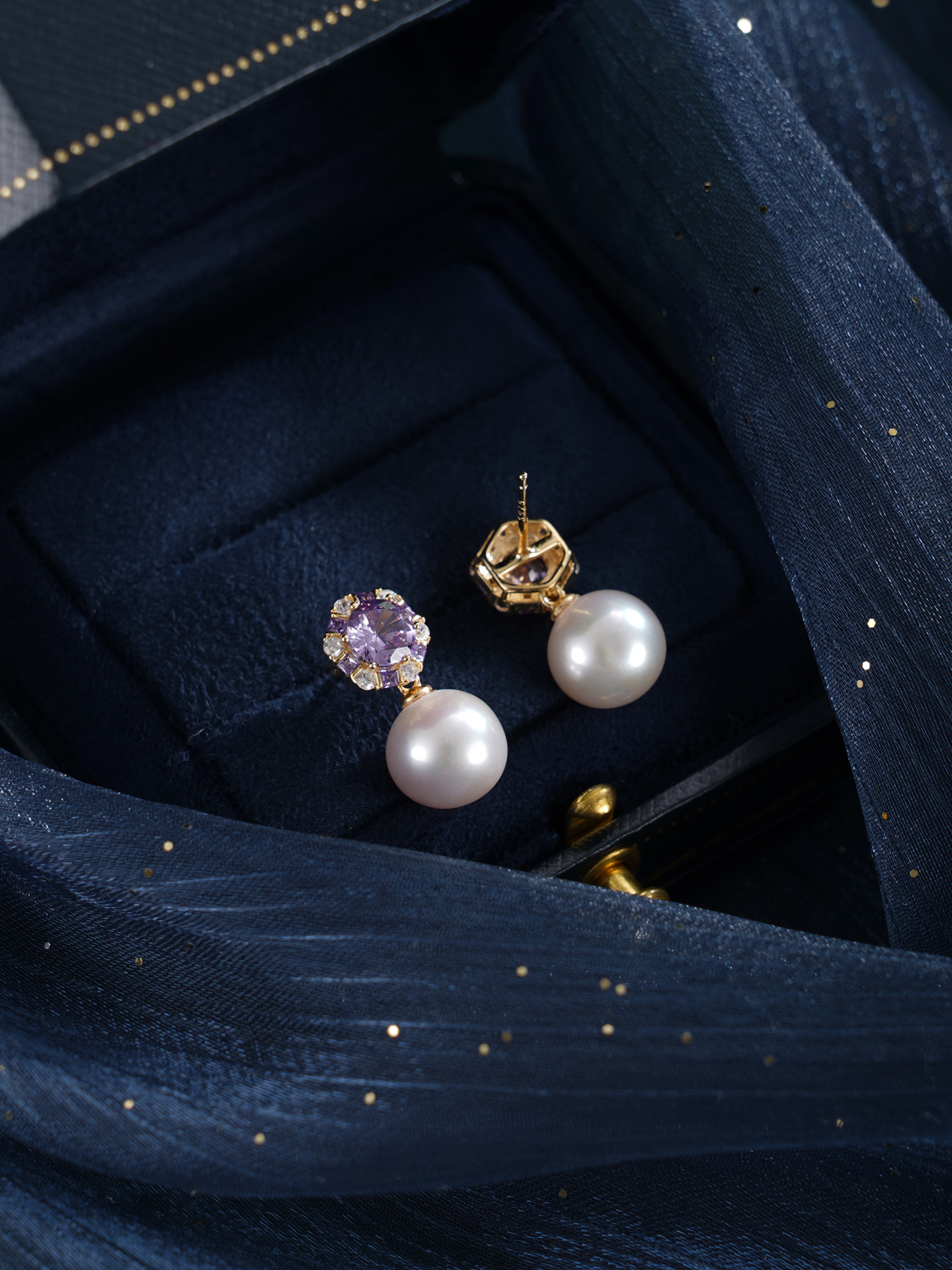 子佩集【紫宸瑶光】银S925珍珠惜王妃耳钉【MLEH021】10mm珠镀金紫锆石2601