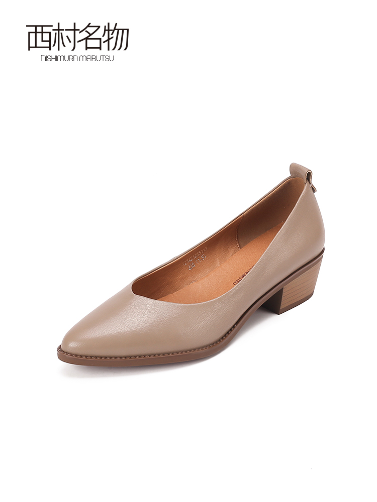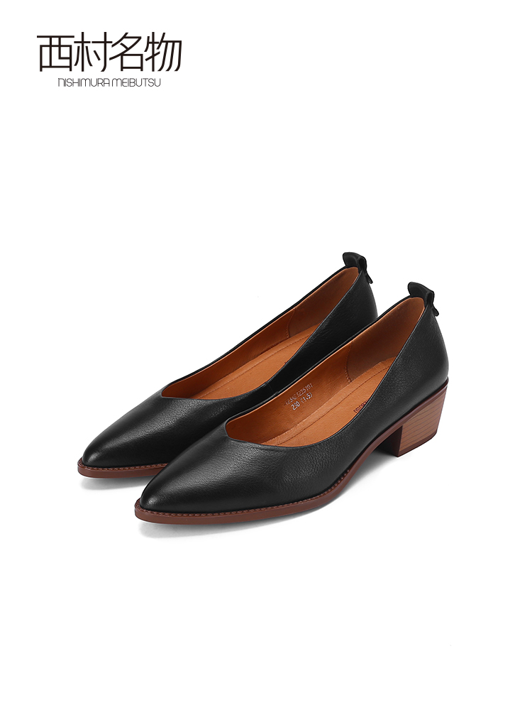 西村名物2023春季新款尖头职业一脚蹬羊皮百搭低跟浅口单鞋12351