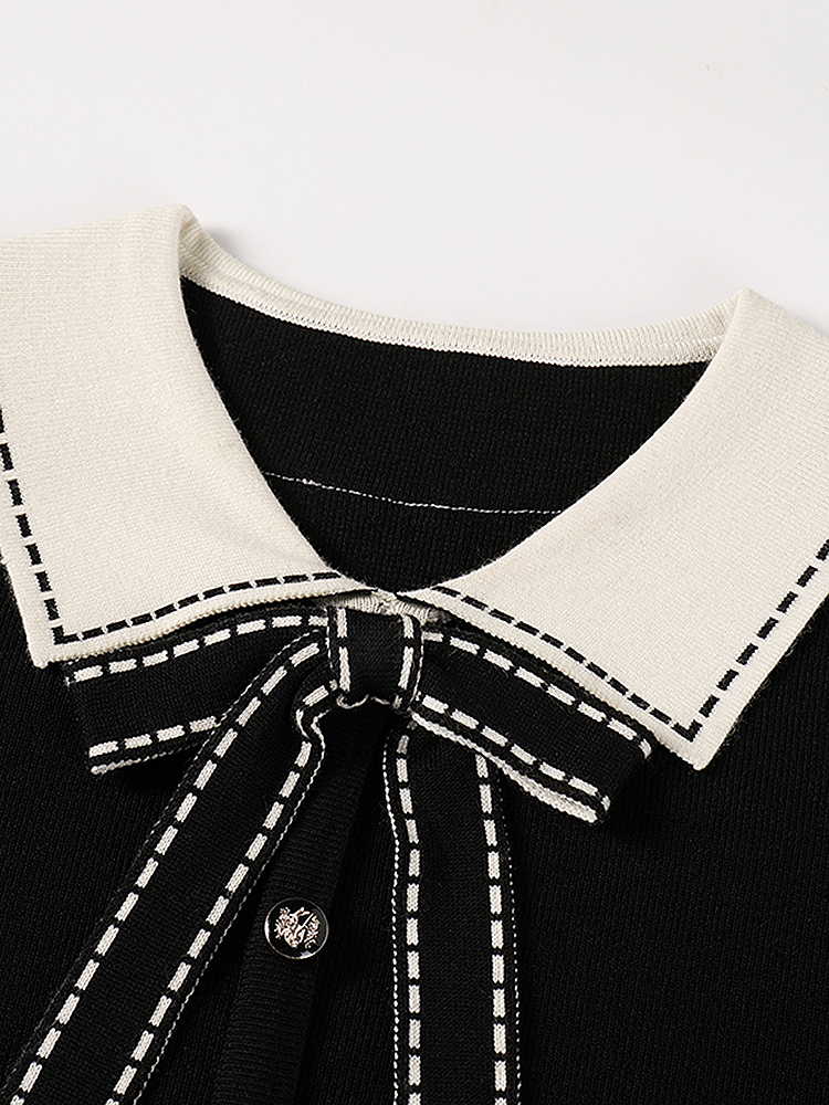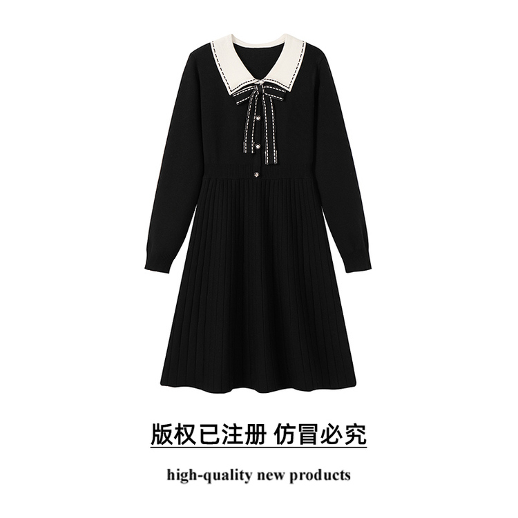 奢姿2025年春季新款大码女装撞色蝴蝶结裙子胖妹妹减龄针织连衣裙9851890302