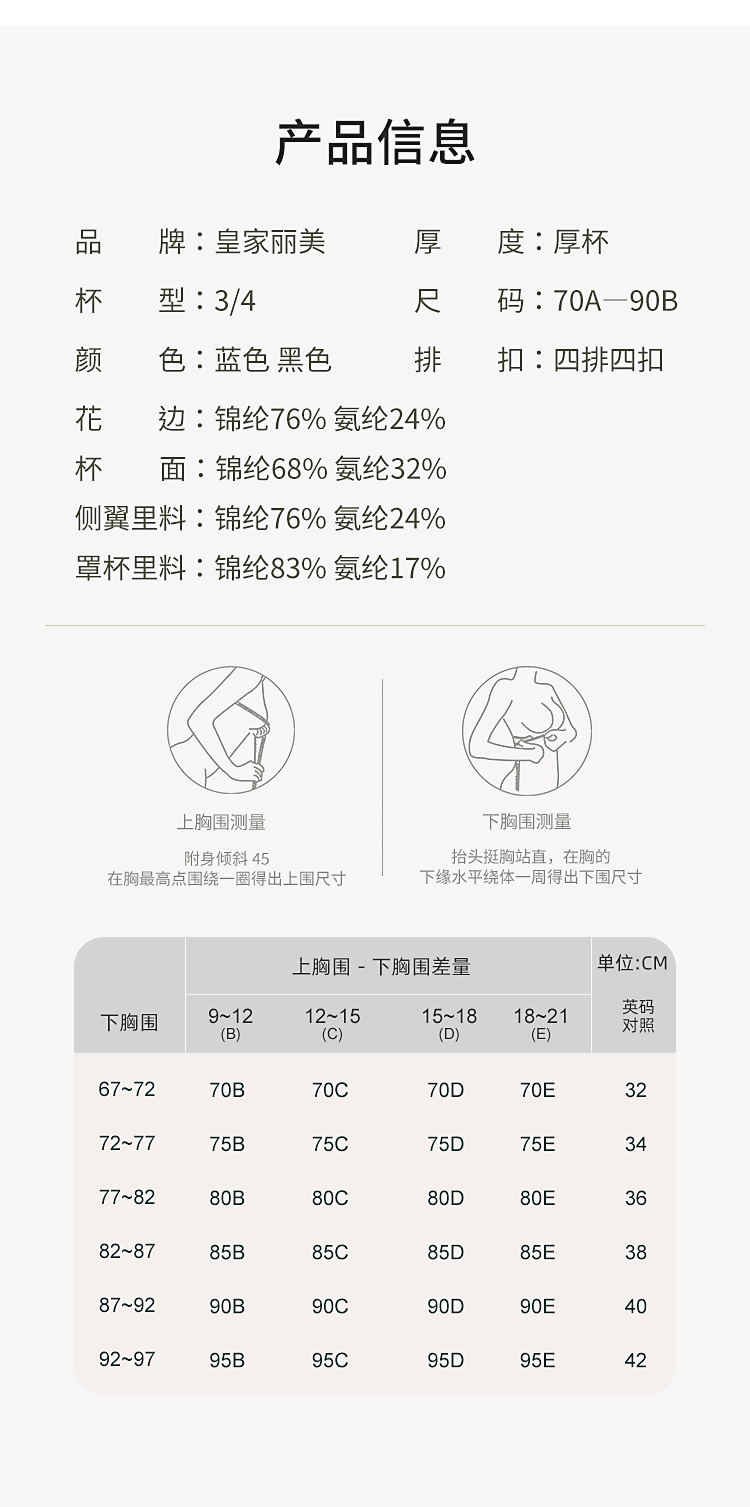 【秒杀品不退不换】皇家丽美小胸显大调整型内衣无钢圈加宽侧比收副乳文胸WWJQ006-3
