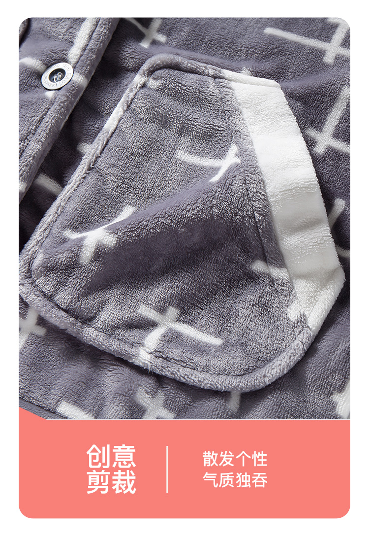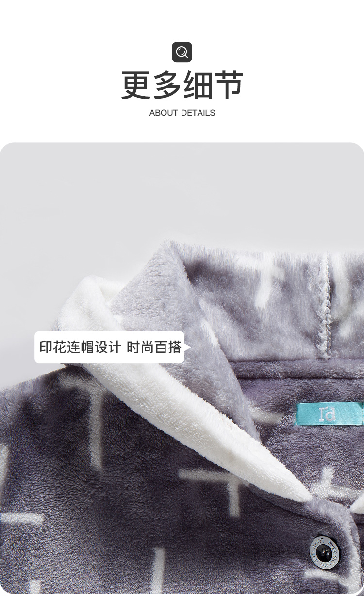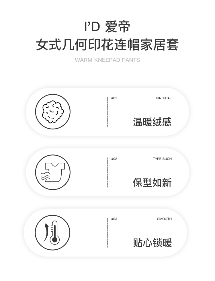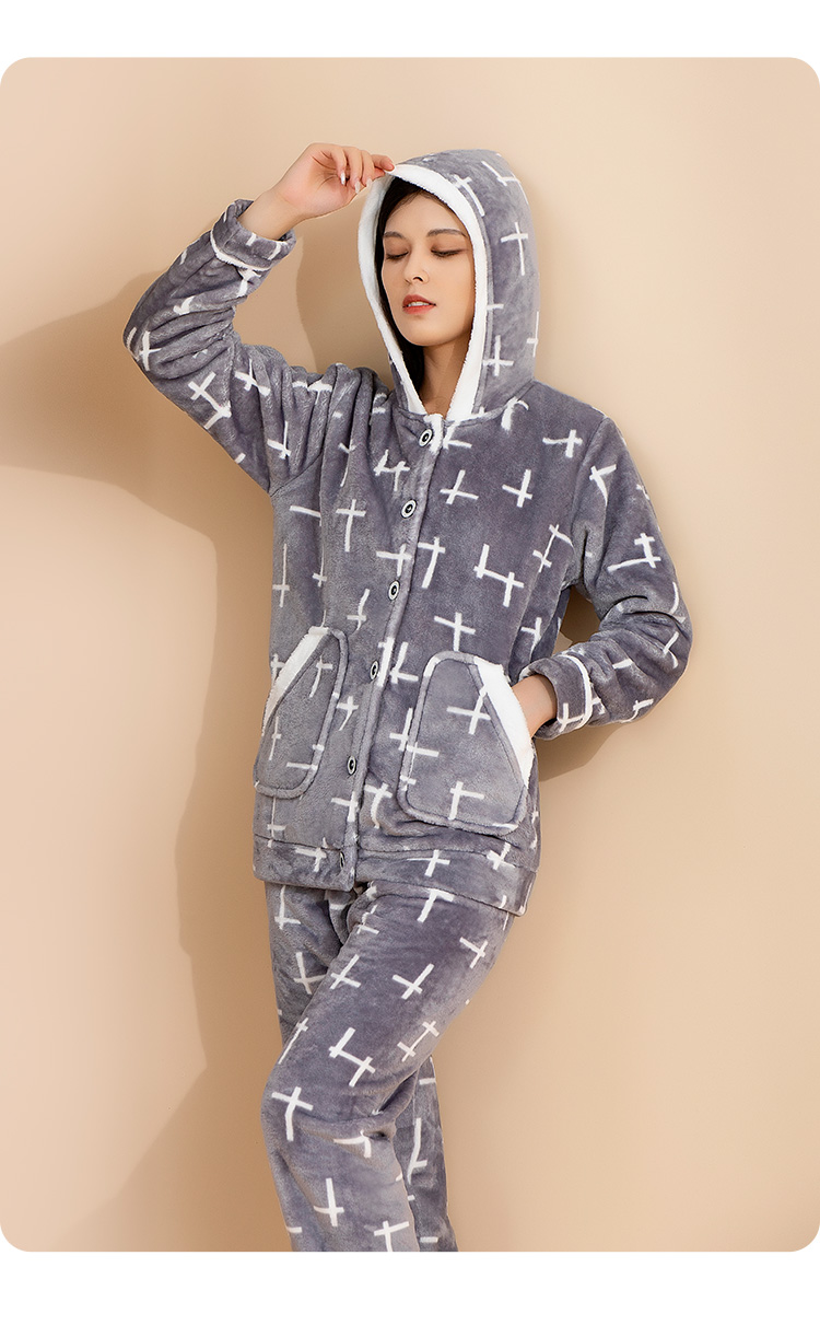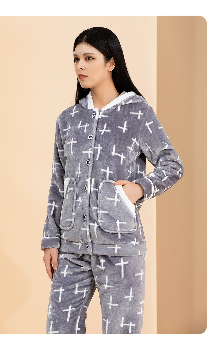 爱帝女式几何印花珊瑚绒长袖家居服套装