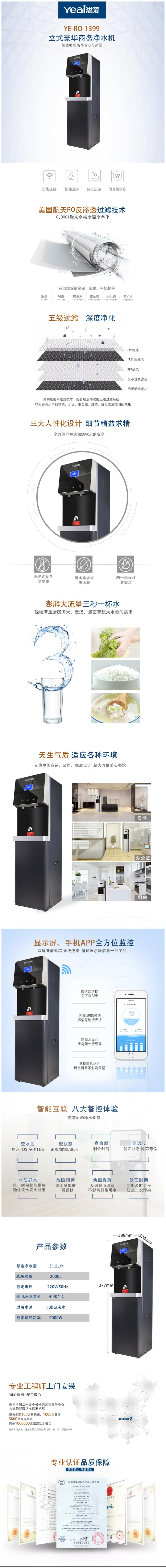 溢爱(Yeai)商务冷热一体净水机饮水机 至净款 YE-RO-1399 黑色 (含上门安装)