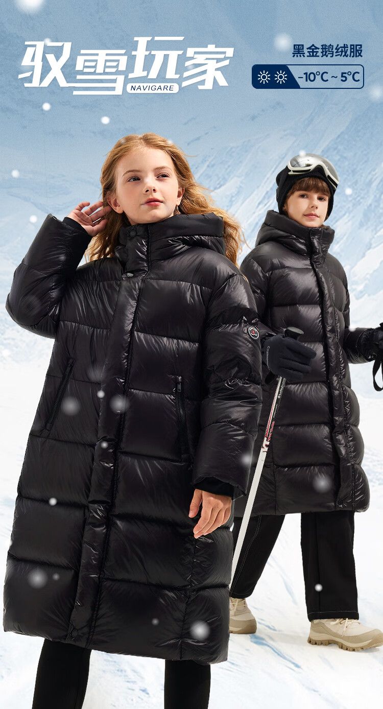 【黑金鹅绒】【纳维凯尔】【120-175】意大利小帆船男童冬款中长款三防鹅绒服