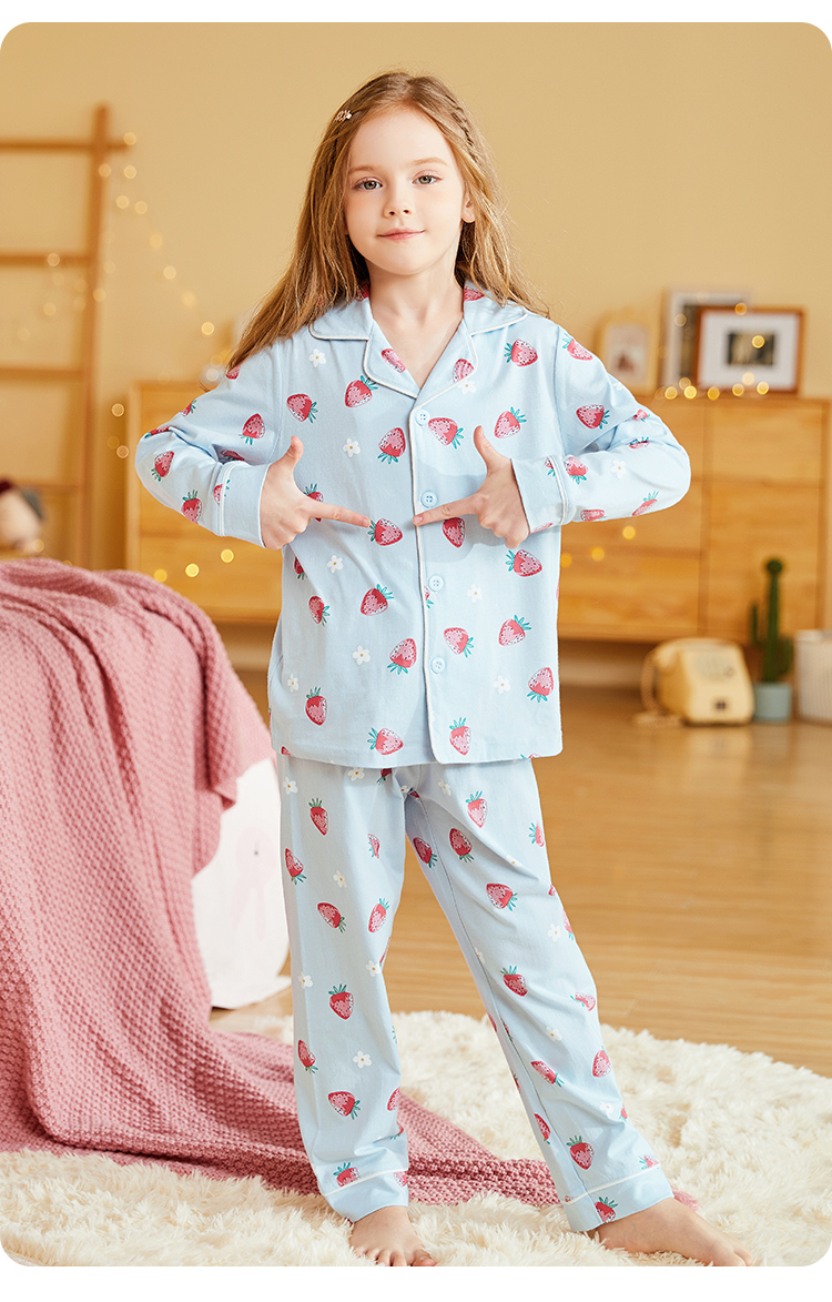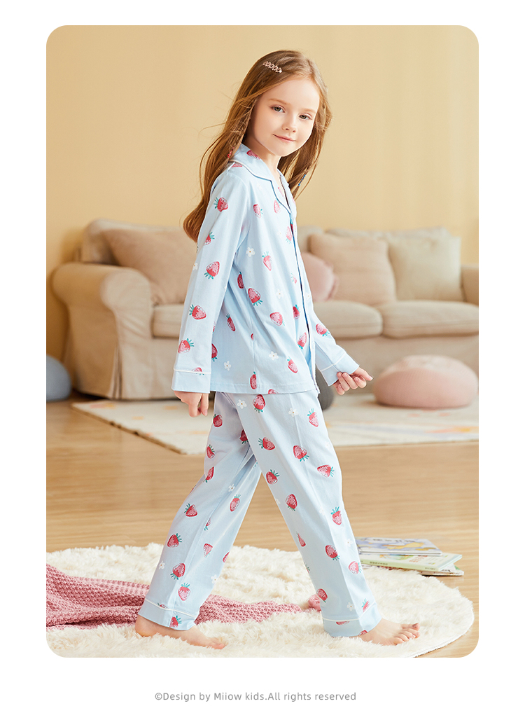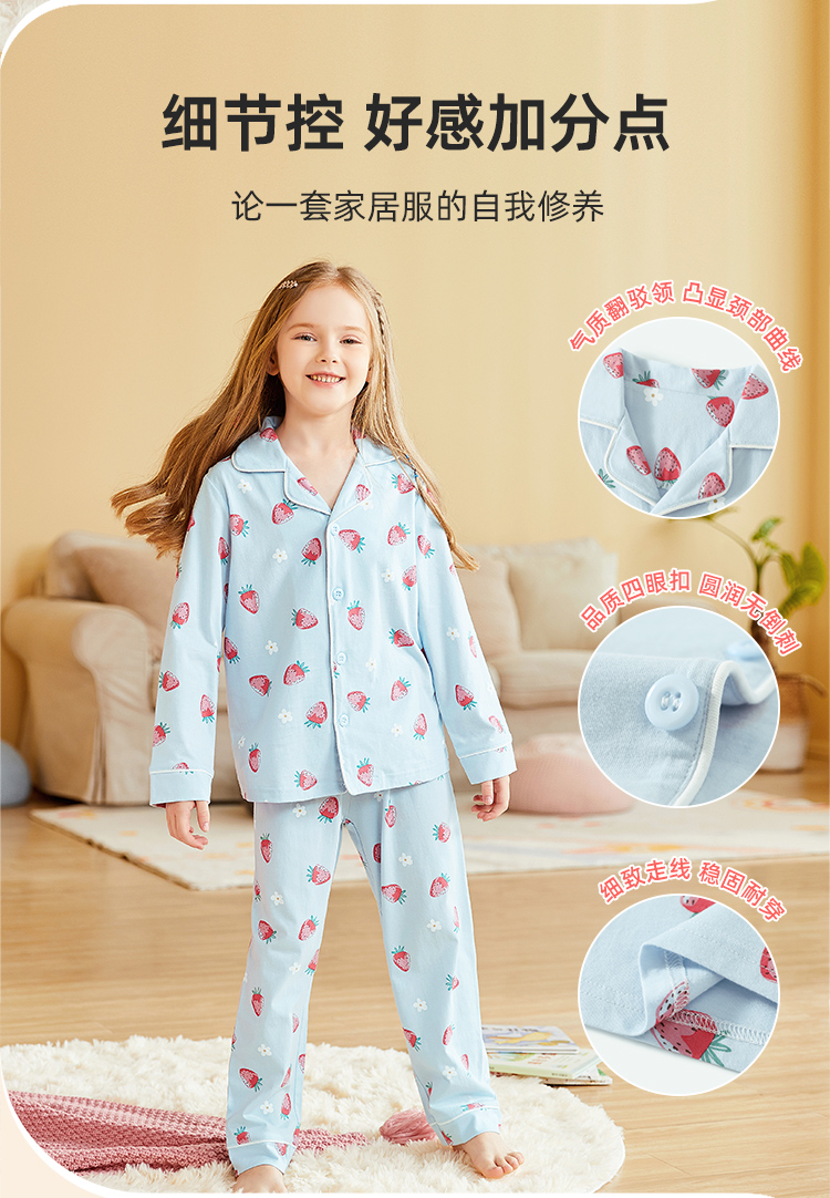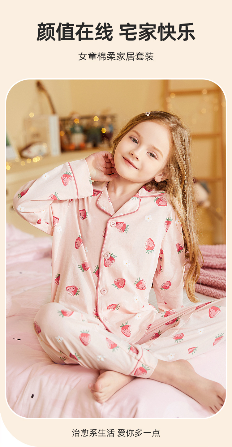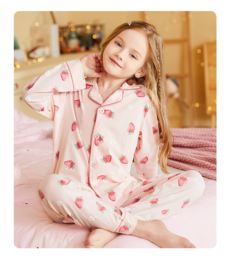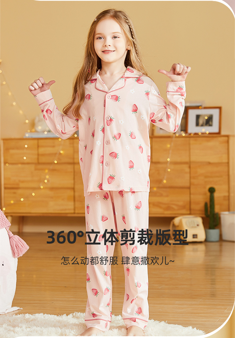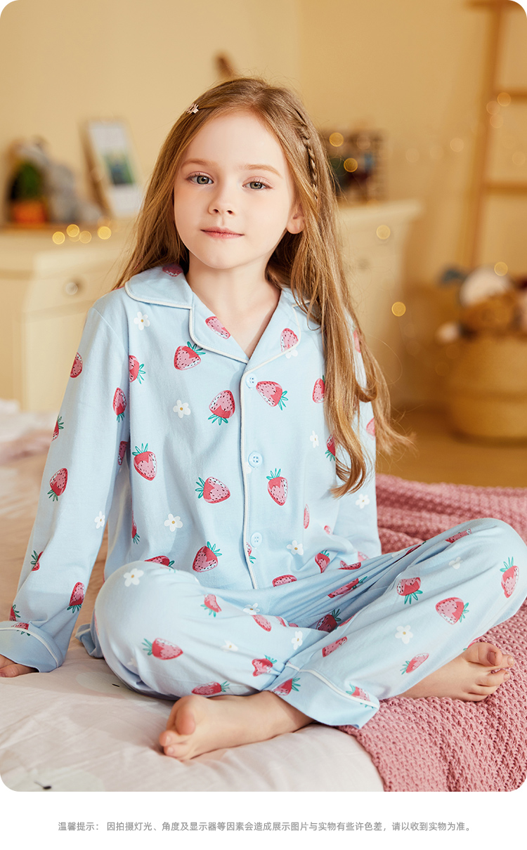 【清仓捡漏】【150-160】女童春秋款翻领草莓花朵家居服空调服套装猫人