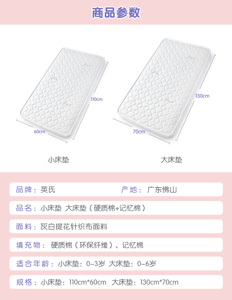 英氏新生婴儿床垫记忆棉硬质棉双面睡垫子尺寸可选YBCDJ01001A01
