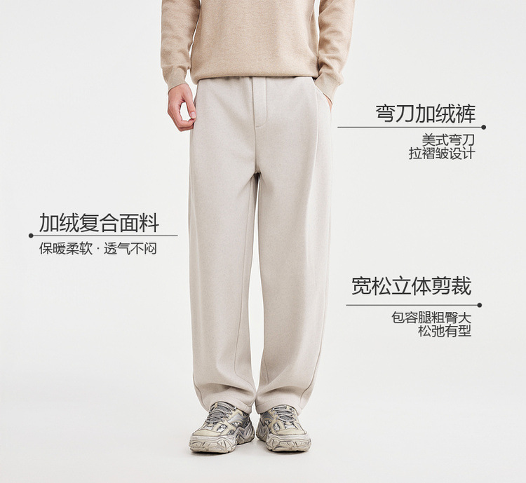 墨麦客男装美式弯刀加绒男裤2025冬季新款松紧腰男士休闲裤91522