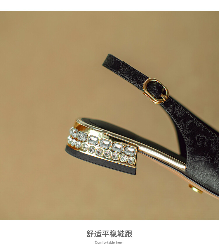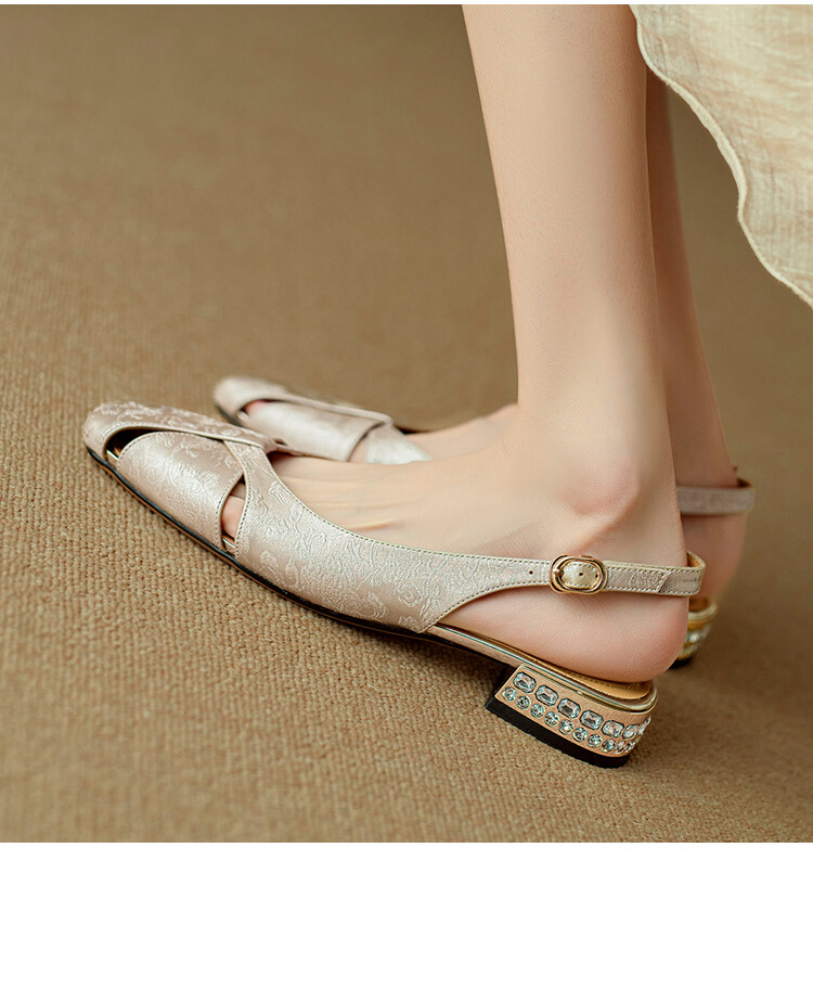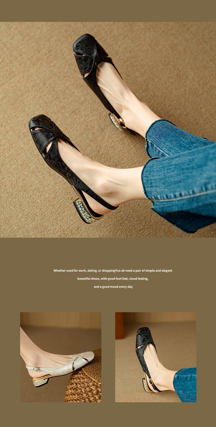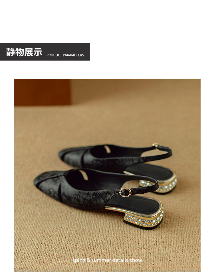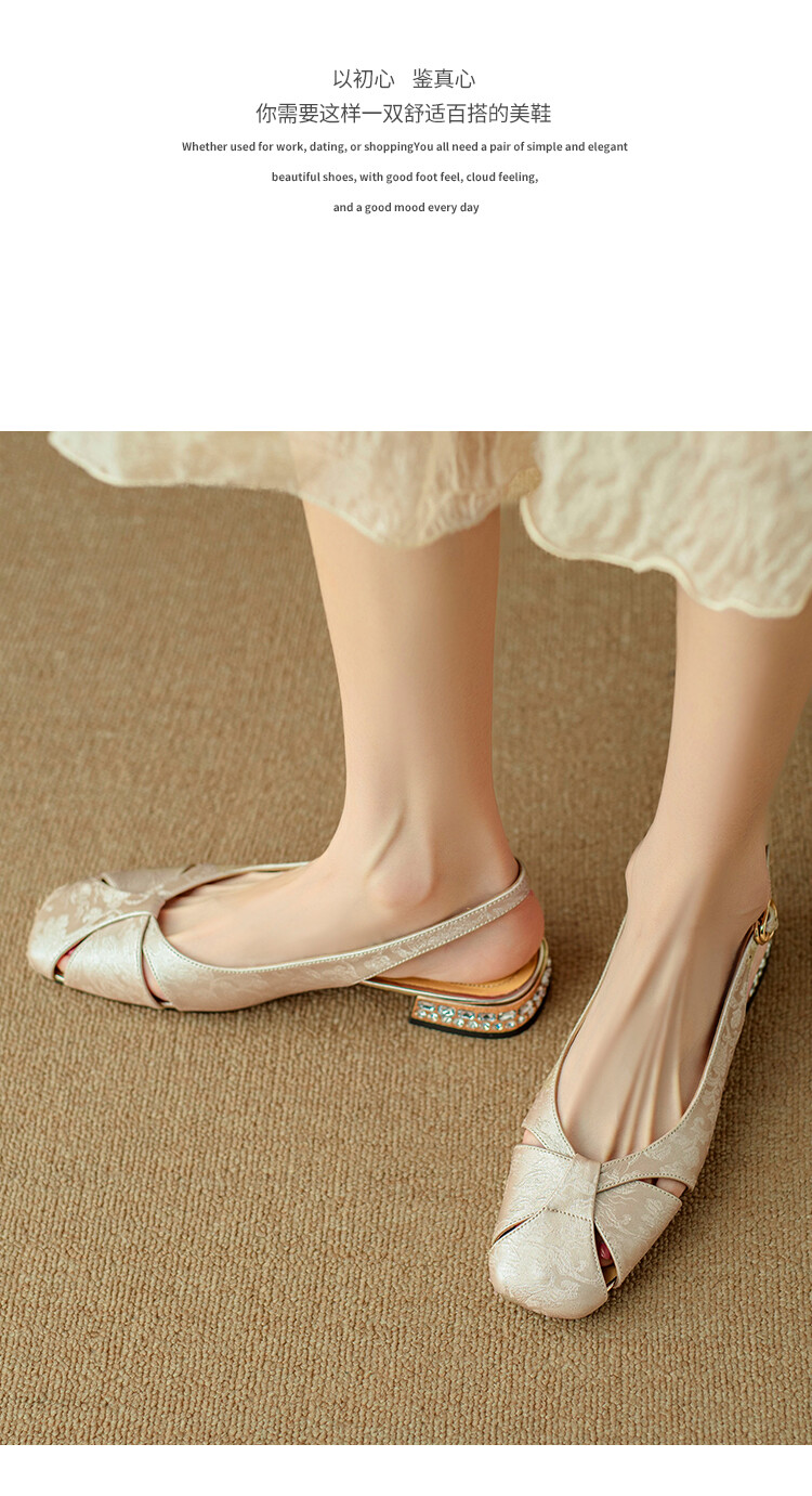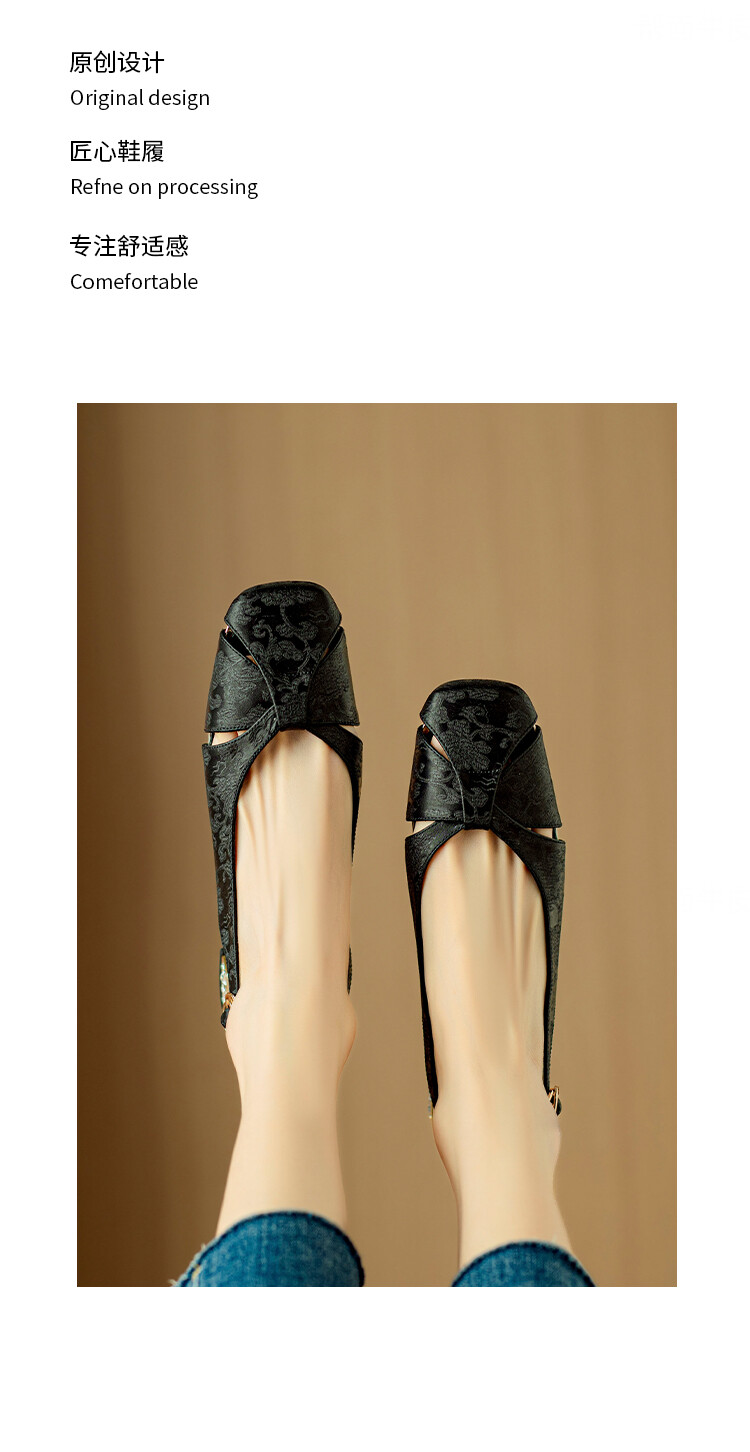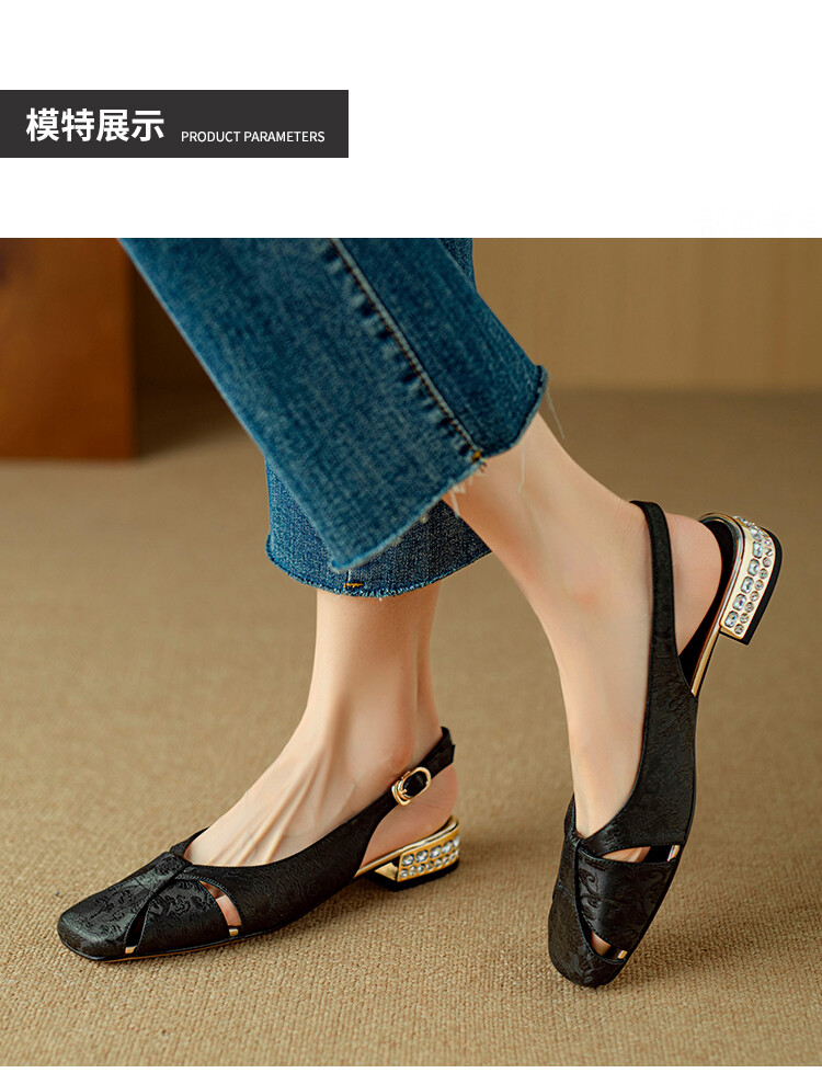 【预售5天】国风牛皮包头后空凉鞋,新中式镂空时装鞋水钻方跟鞋NJMK&K962