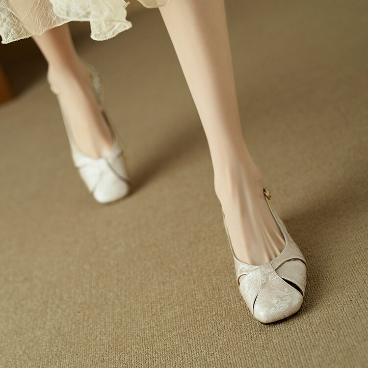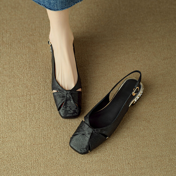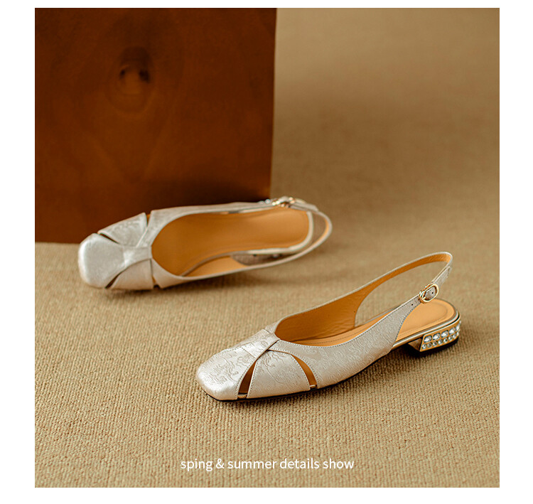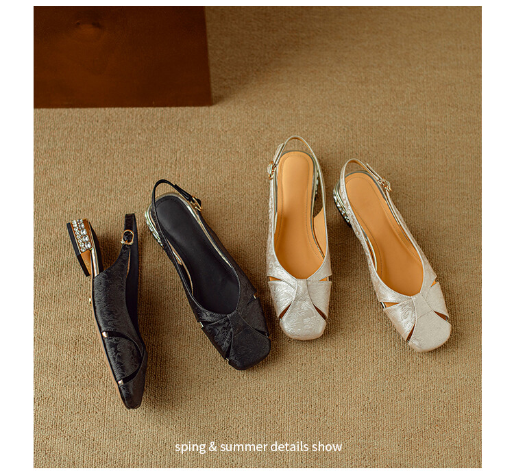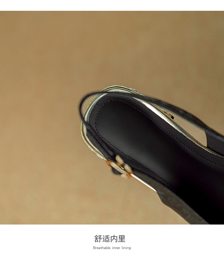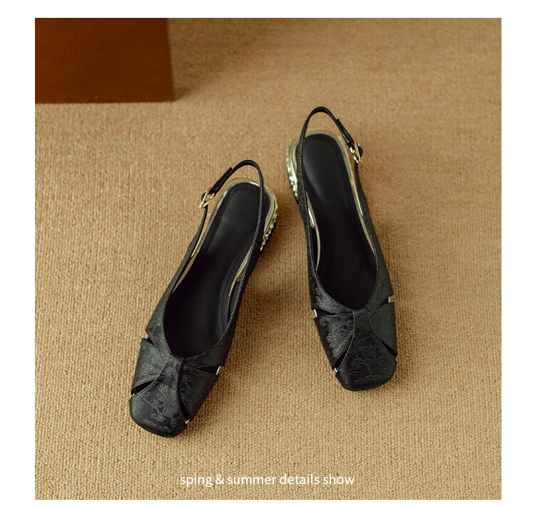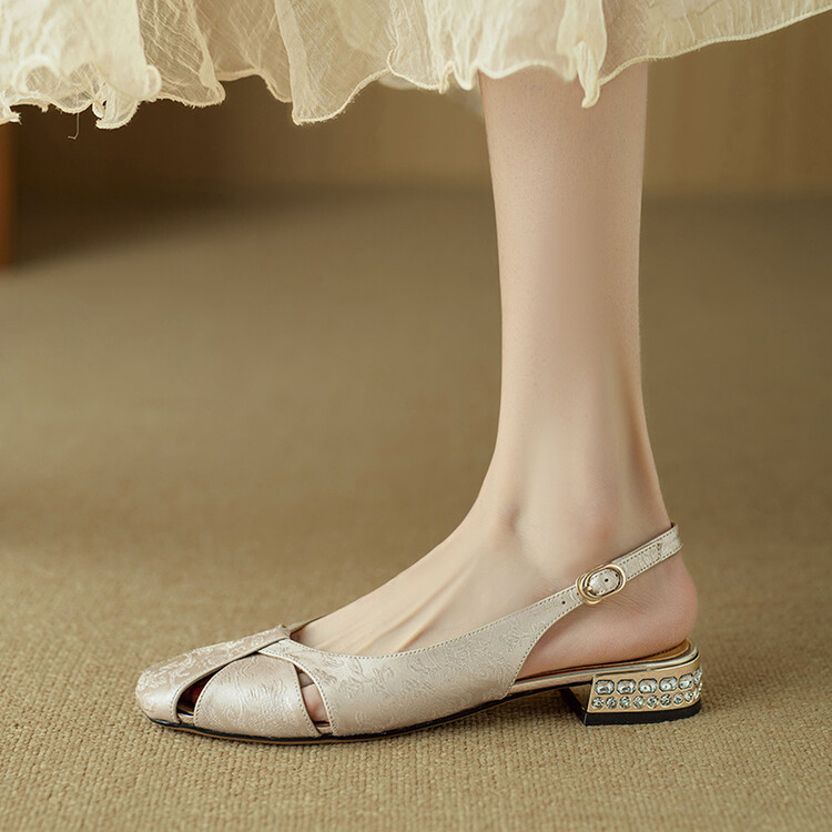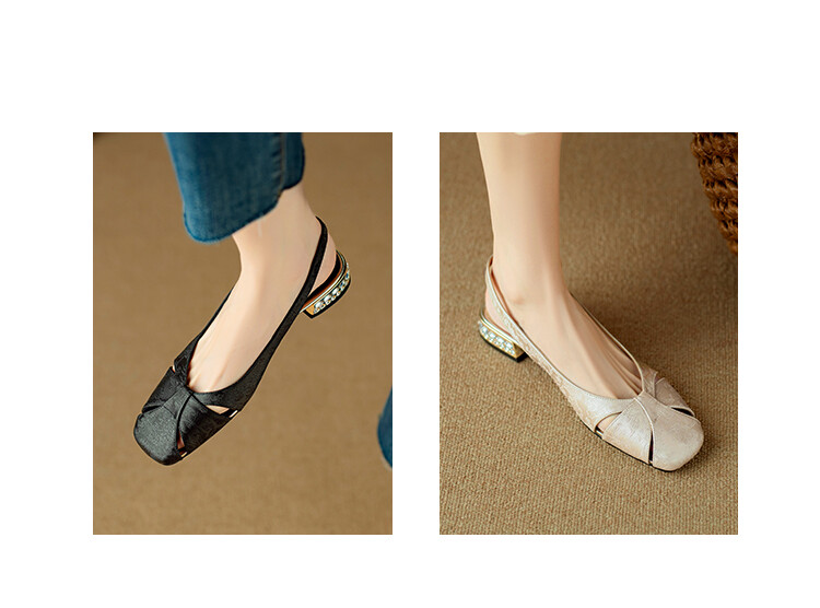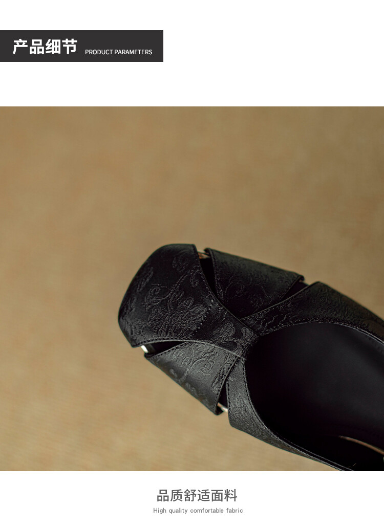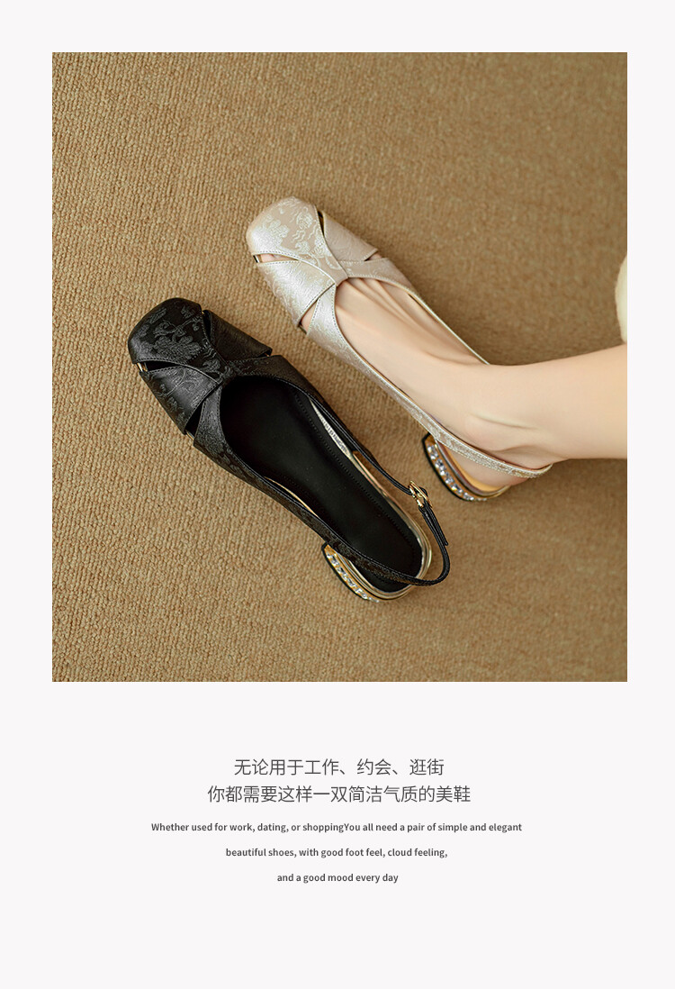 【预售5天】国风牛皮包头后空凉鞋,新中式镂空时装鞋水钻方跟鞋NJMK&K962