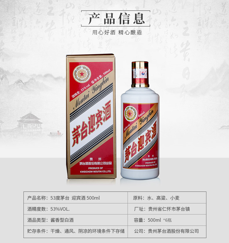 53度茅台迎宾酒(经典版)500ml 单瓶