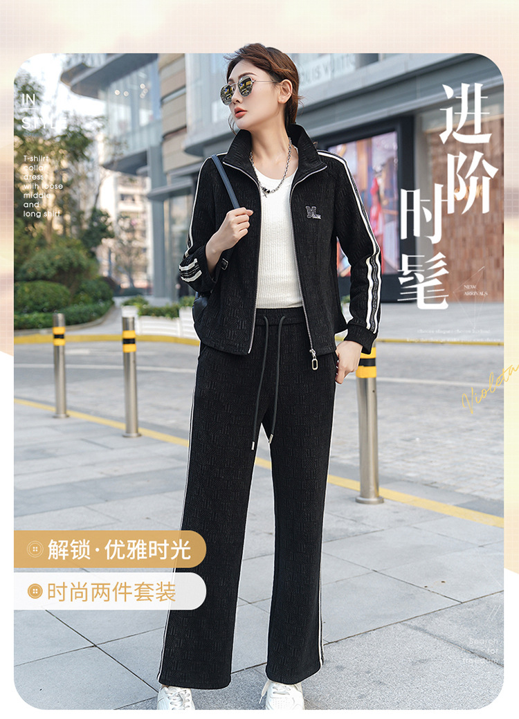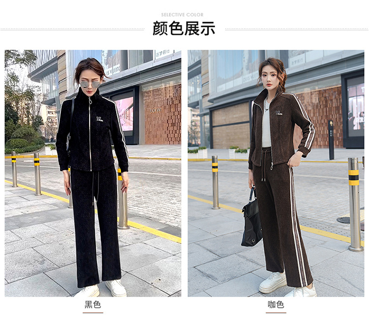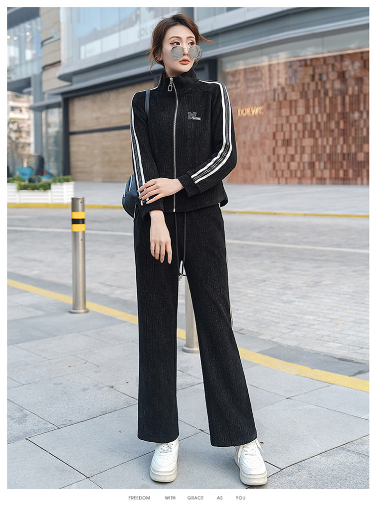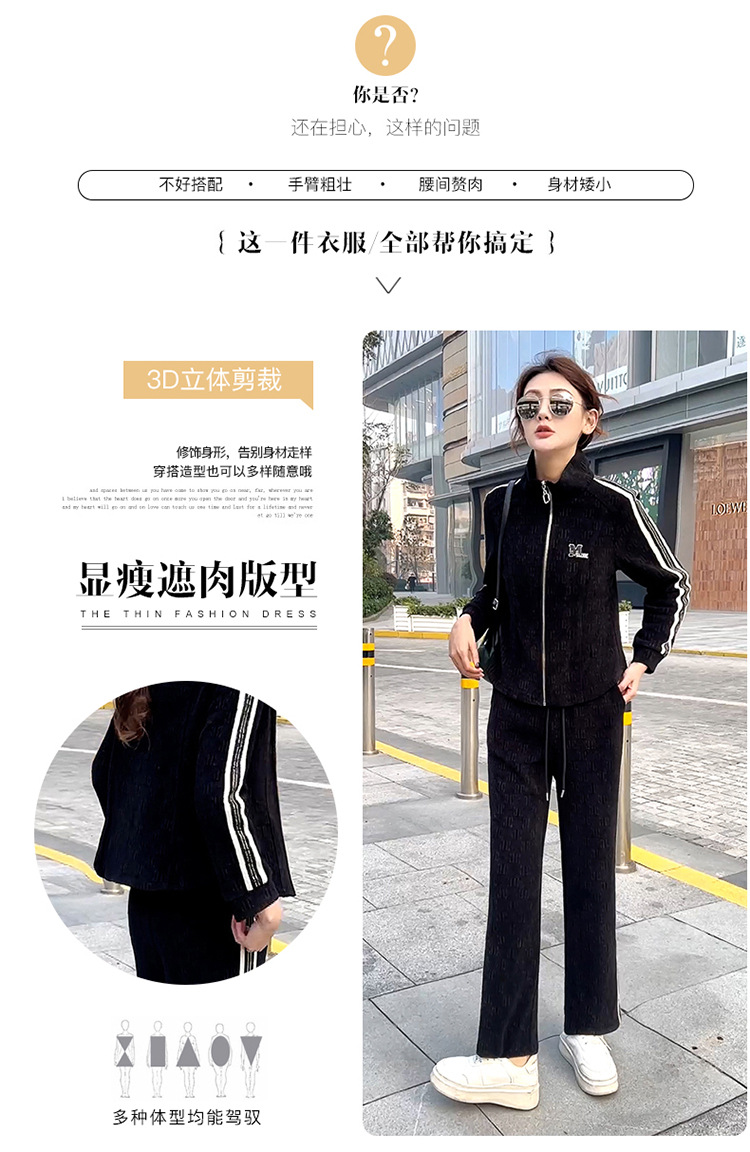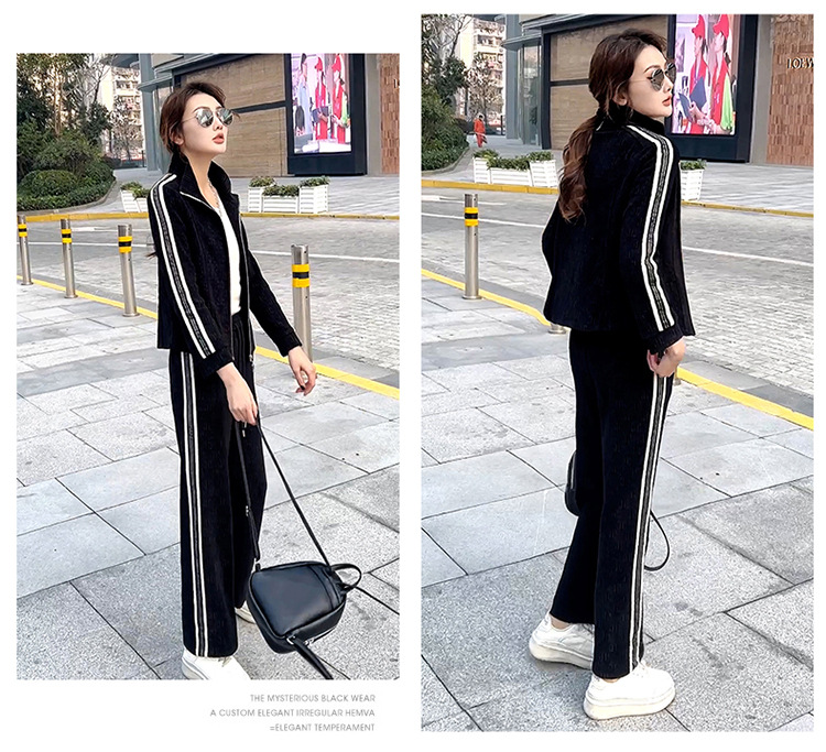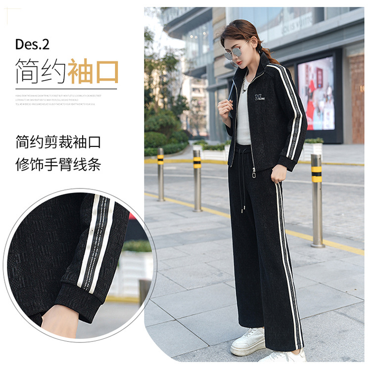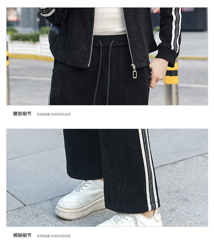 修身短款休闲外套+宽松显瘦简约长款阔腿裤两件套QYM- XYKL-4803-L