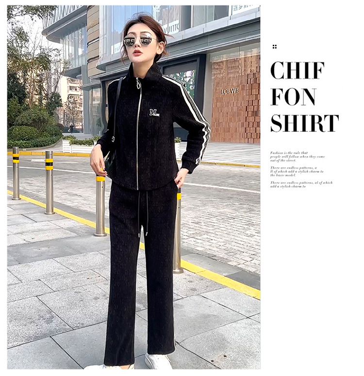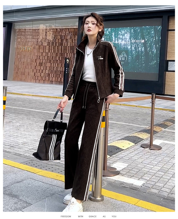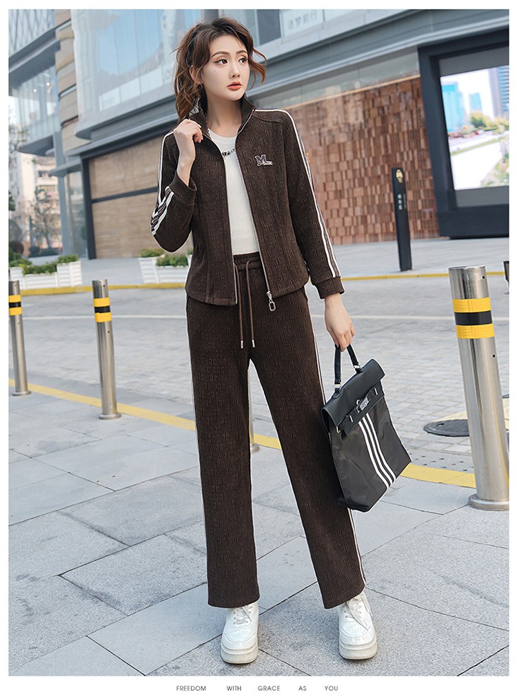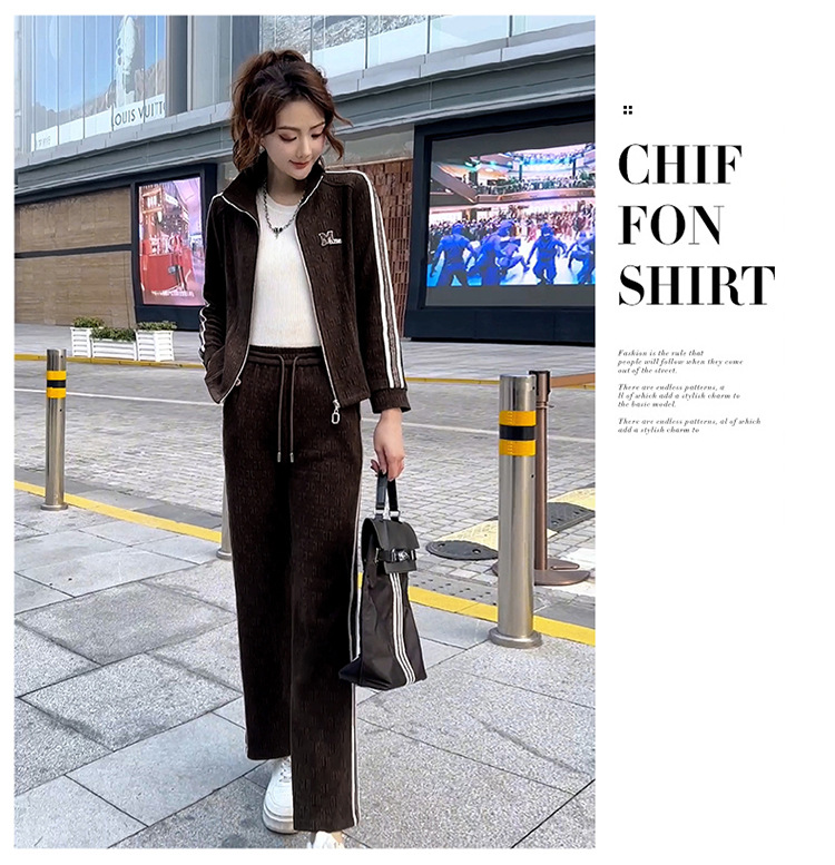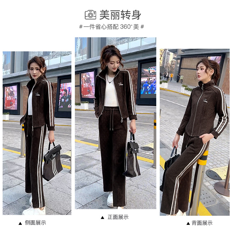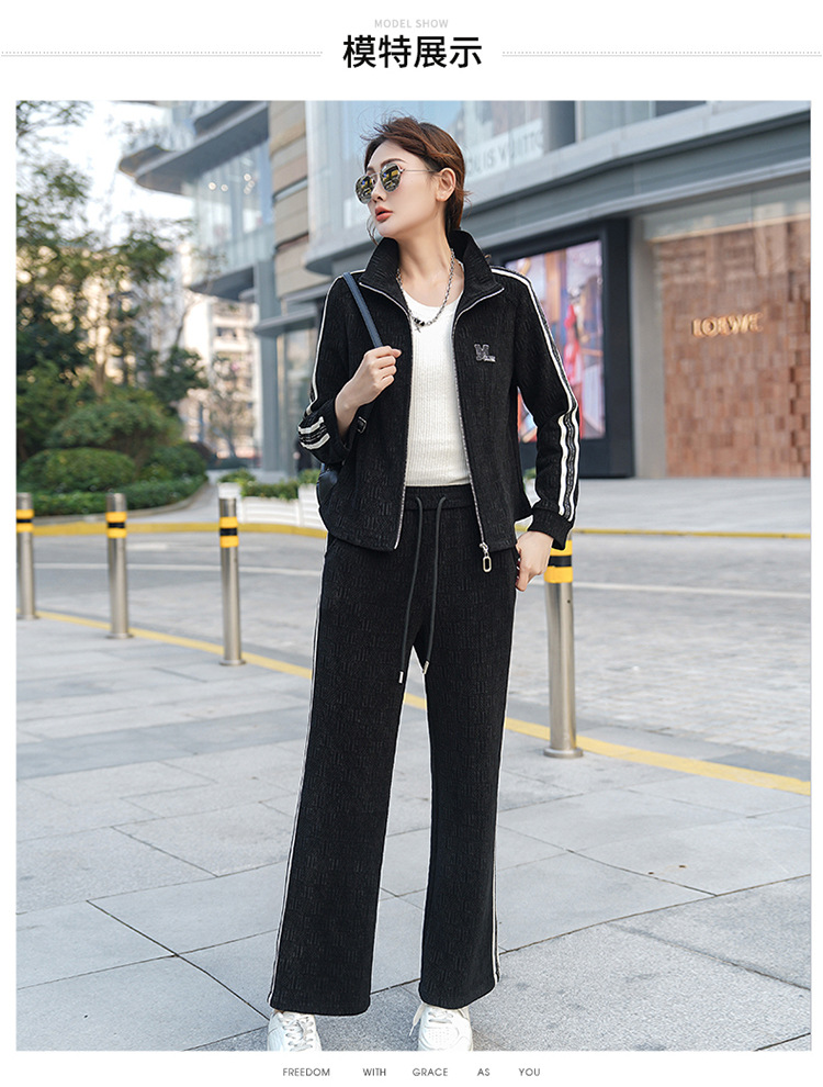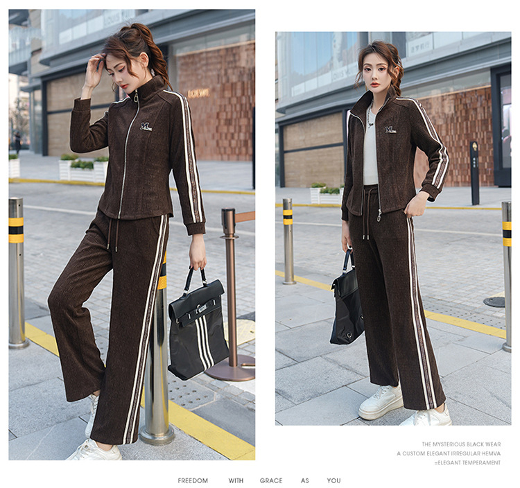 修身短款休闲外套+宽松显瘦简约长款阔腿裤两件套QYM- XYKL-4803-L
