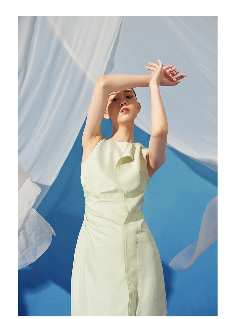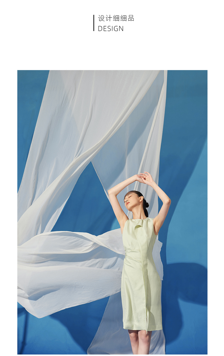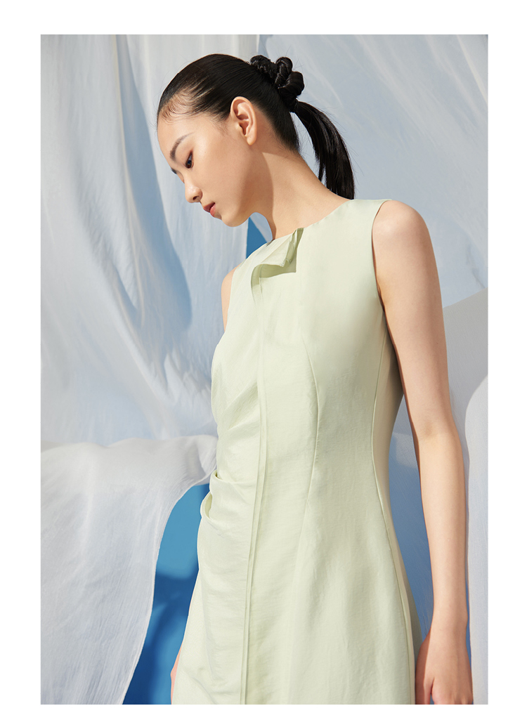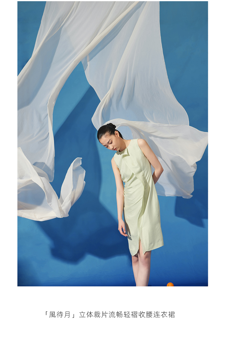 【風待月】立体裁片流畅轻褶显瘦收腰连衣裙/0000725