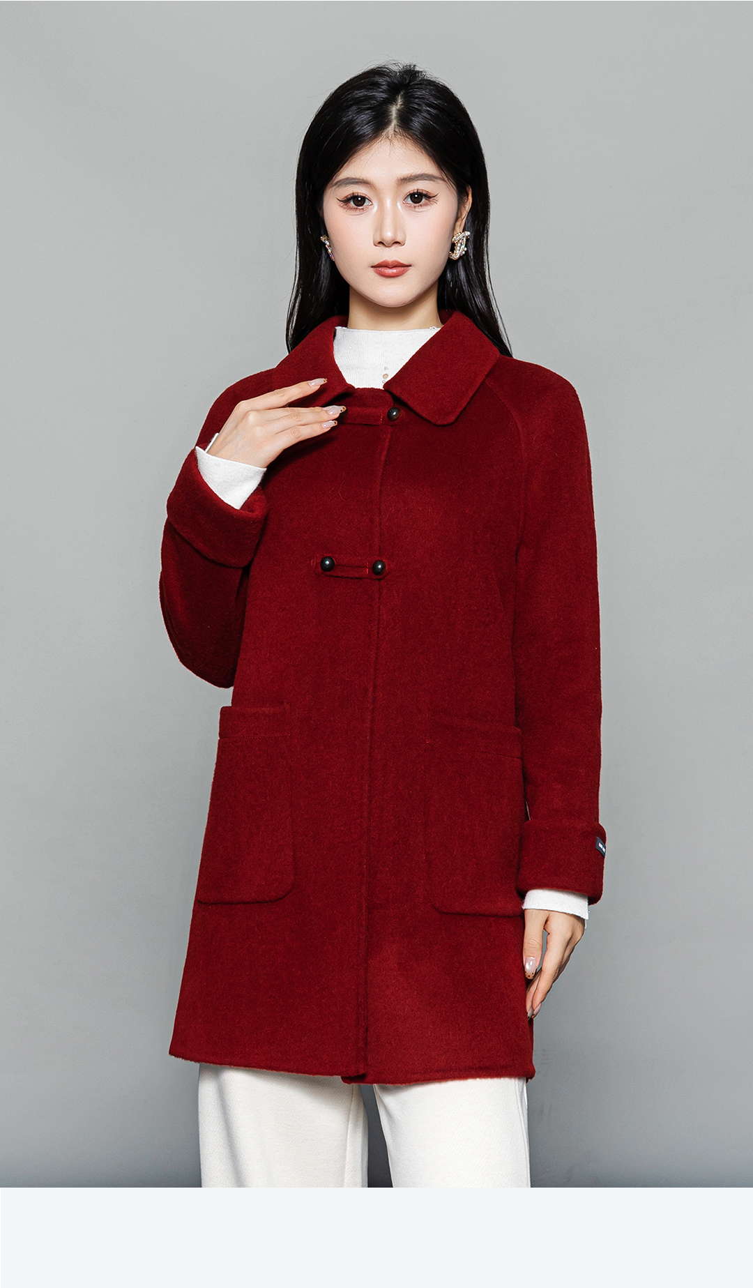 冬上新优雅翻领显瘦又显气质双面呢中长款大衣2254053