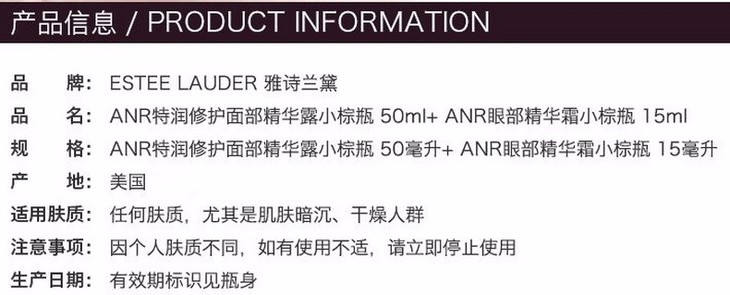 【精品推荐】【香港直邮】Estee Lauder /雅诗兰黛 小棕瓶ANR面部修护精华露50ml+眼霜15ml套装