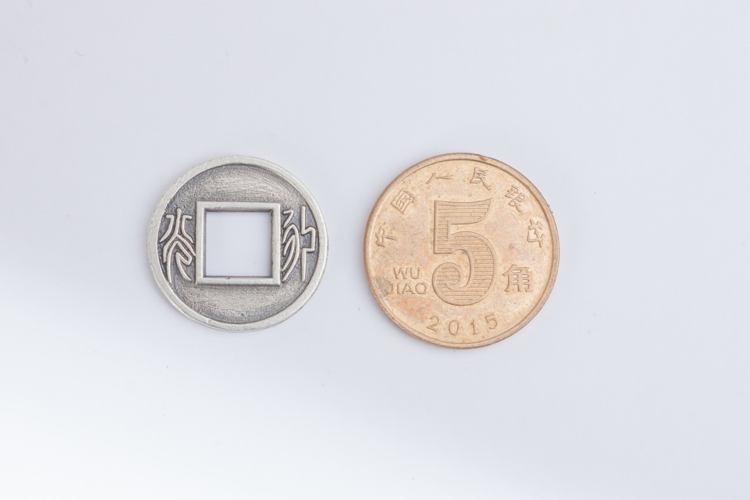尺寸:钱币直径约18毫米,厚约1.3毫米,钱币孔径约6.6毫米,重约2克(手工作品有少许误差)。