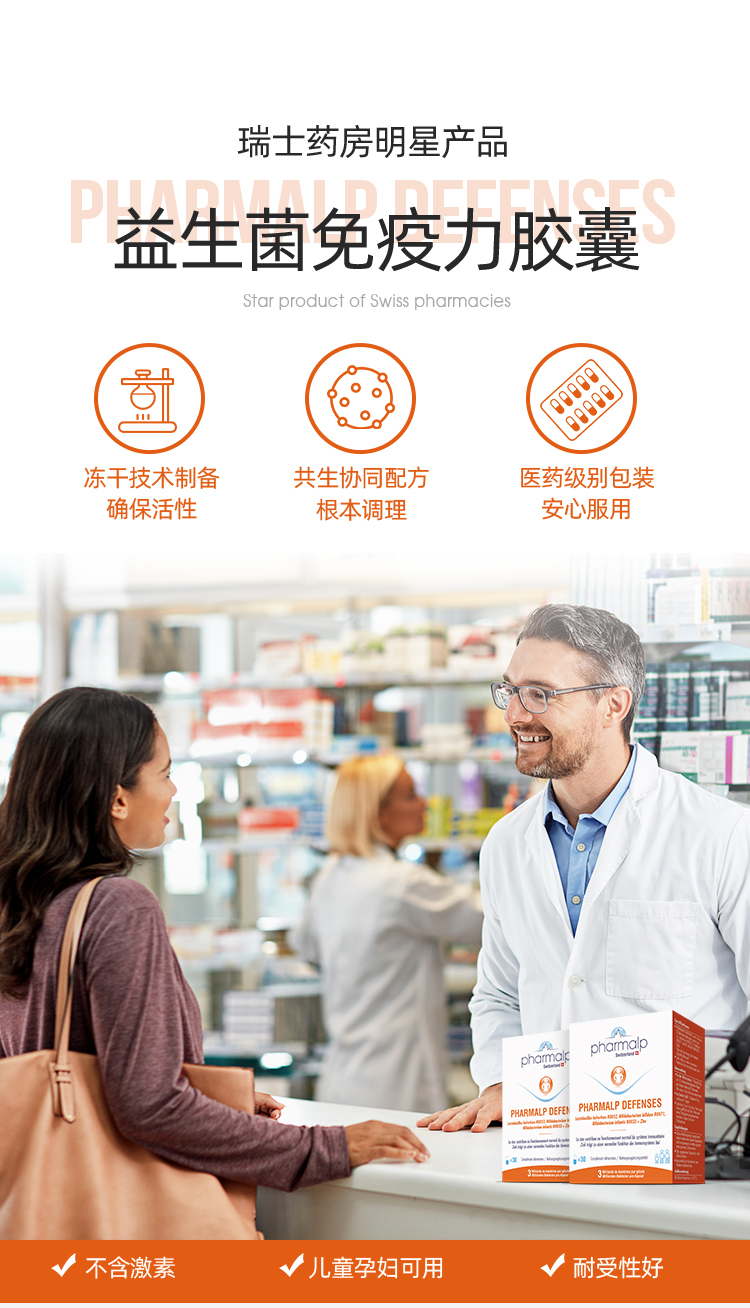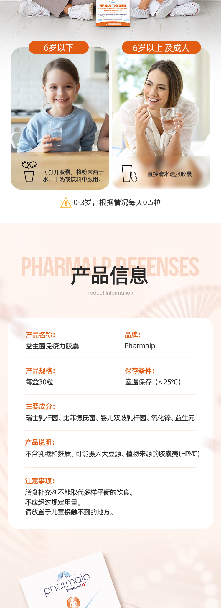 瑞士Pharmalp凡木安免疫力益生菌剑桥杂志推荐加益生元锌增强防御孕妇宝宝适用