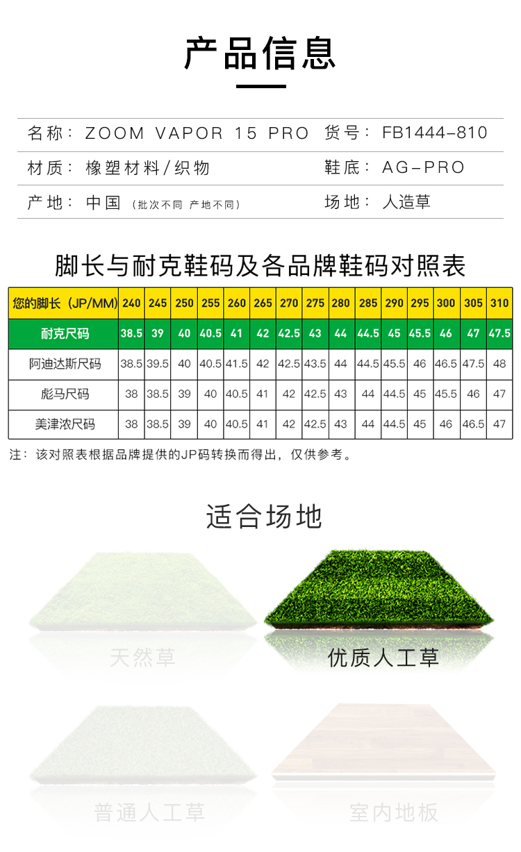 NIKE/耐克 ZOOM VAPOR 15 PRO AG-PRO 刺客15 低帮次高端AG-PRO足球鞋