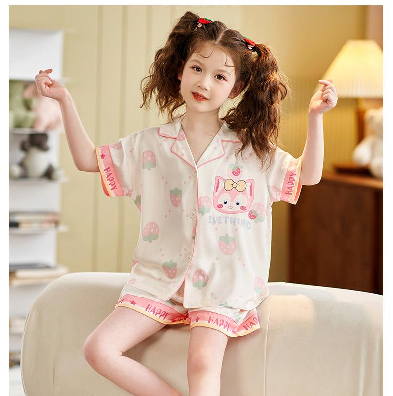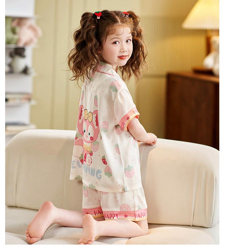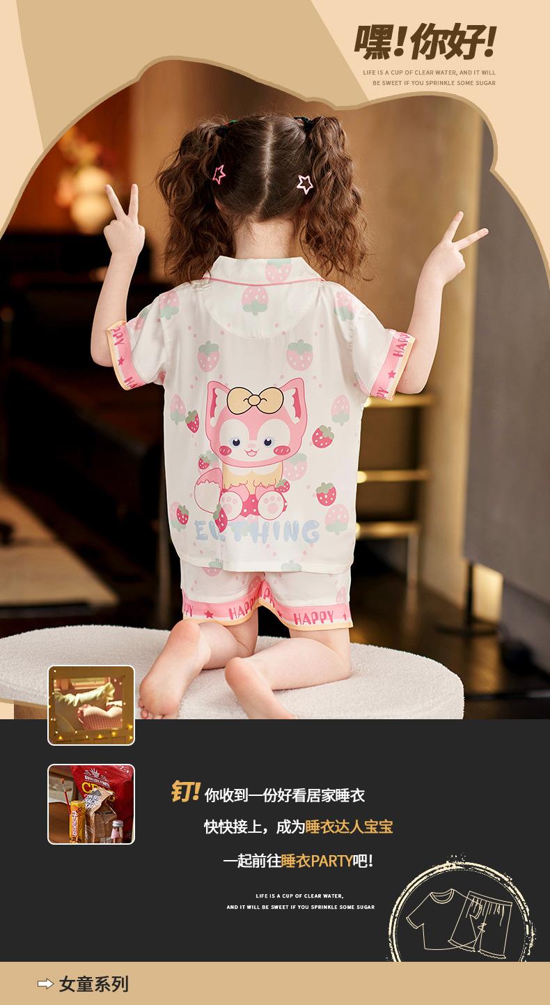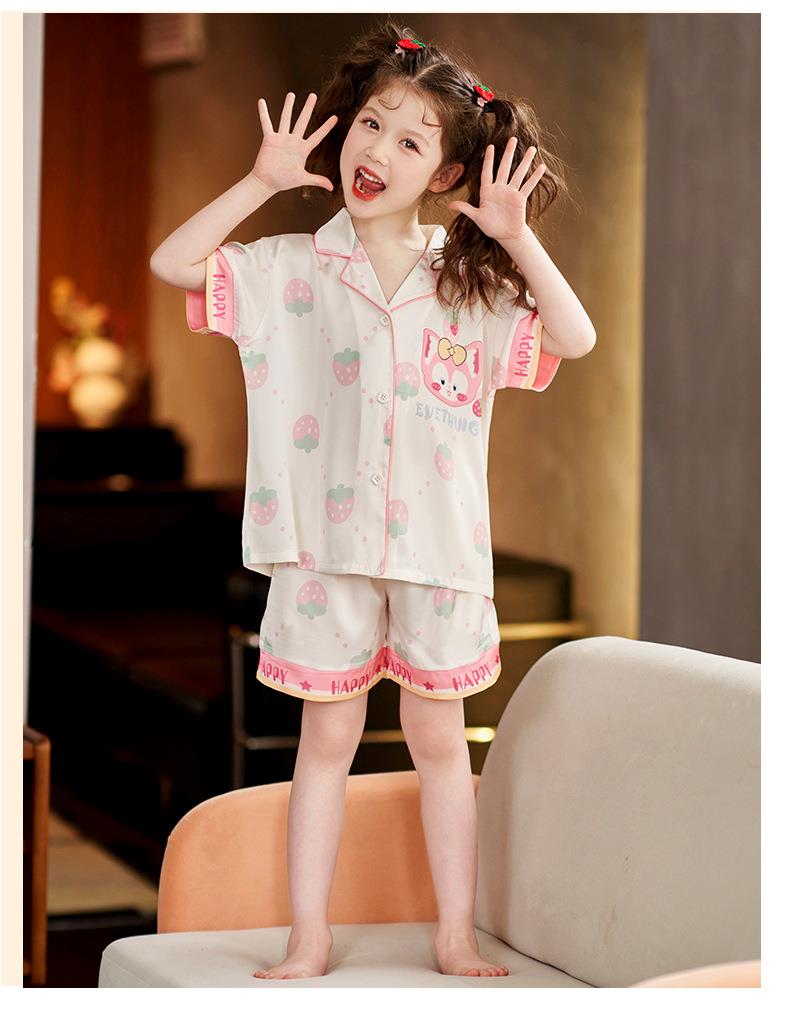 儿童睡衣女童夏季冰丝薄款短袖套装夏天小女孩公主宝宝凉爽家居服