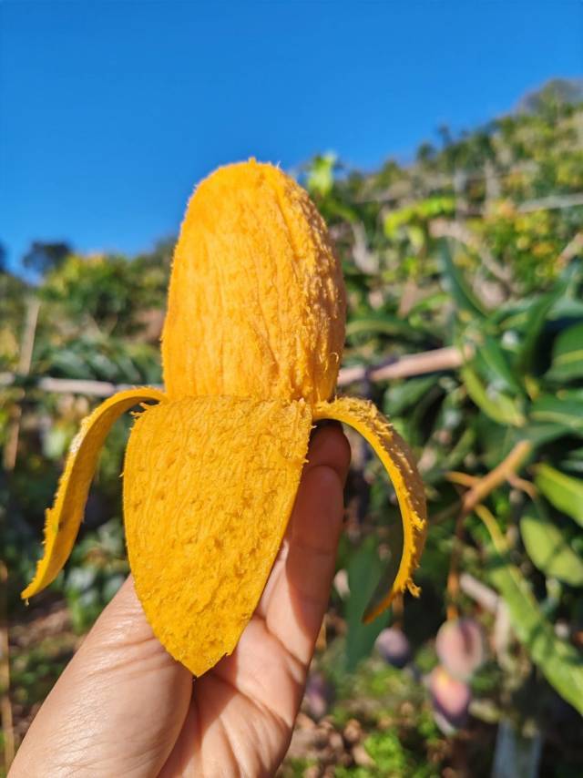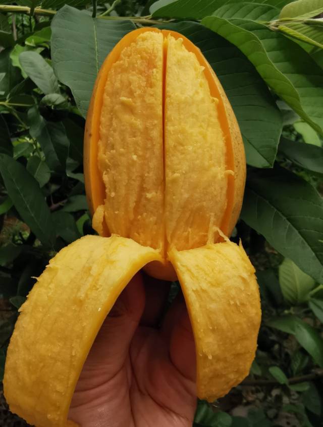 品种介绍:椰香芒果,又名鸡蛋芒。为印度引进的老品种芒果。果香浓郁,带着淡淡的椰奶香味。用它烘干出来的芒果干,更是有着奶糖一般的味蕾体验。所以,即便它的核比较大,可食率比其它芒果品种要低,但是在新品种不断更新换代的芒果届,它依然有着不可替代的独立地位。它的产量非常非常低,因此经济价值也低,不断被果农淘汰而缩减种植面积。但是在攀枝花的每一个芒果园,必然在零星角落能见到农户自留的几棵树。