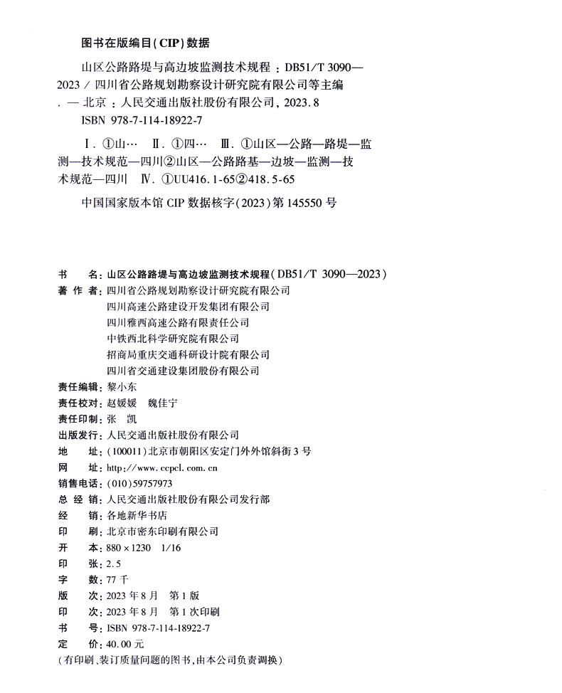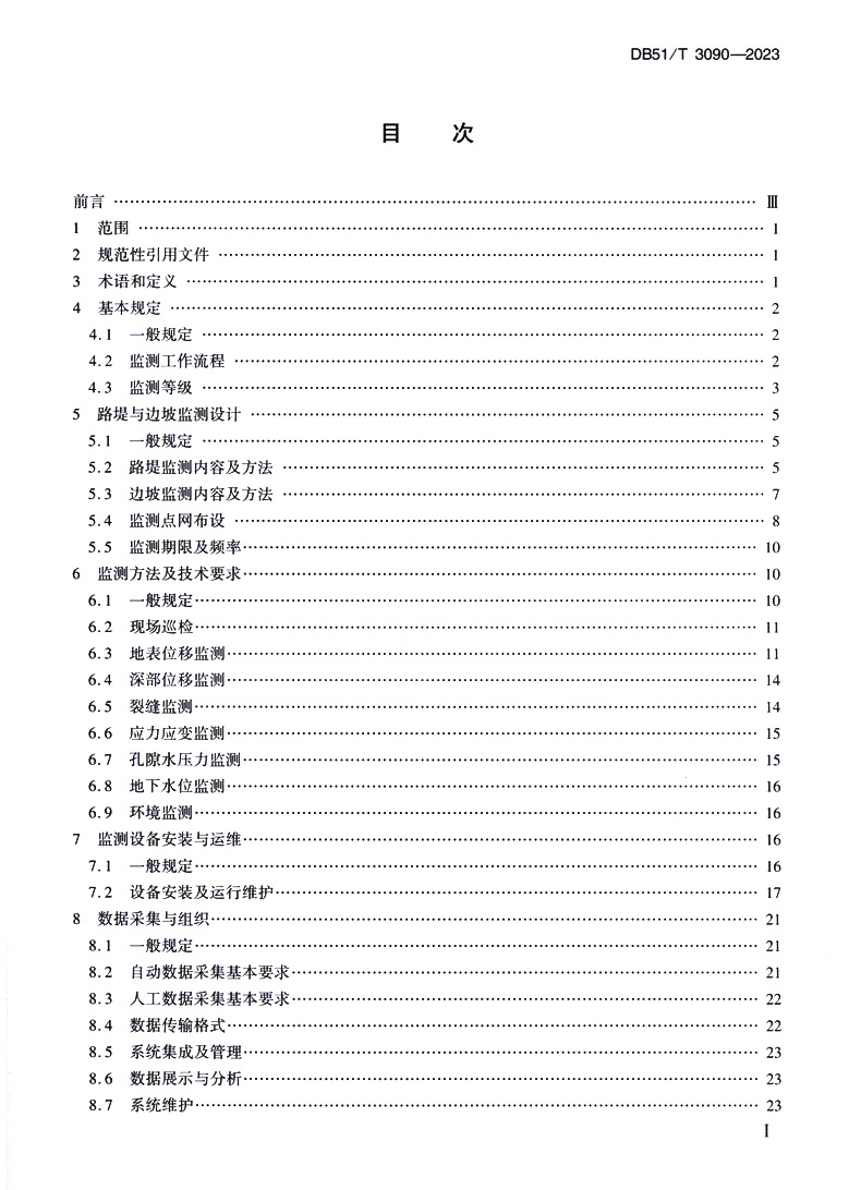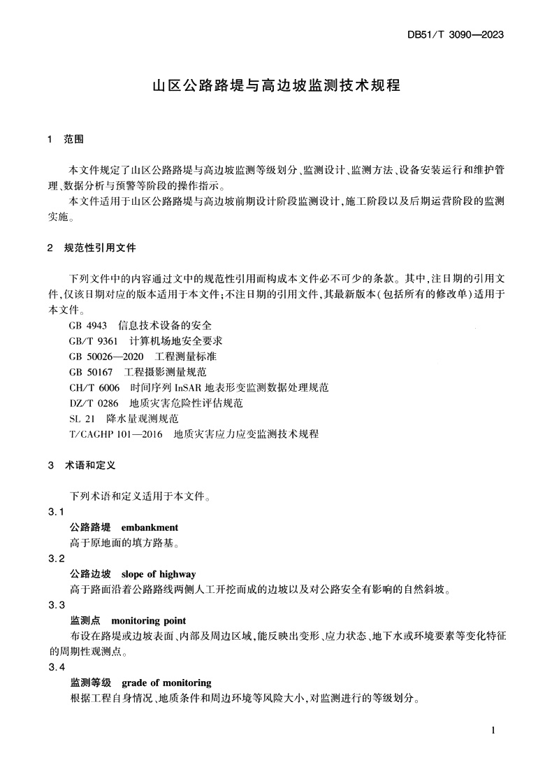 书名:山区公路路堤与高边坡监测技术规程(DB51/T 3090—2023)