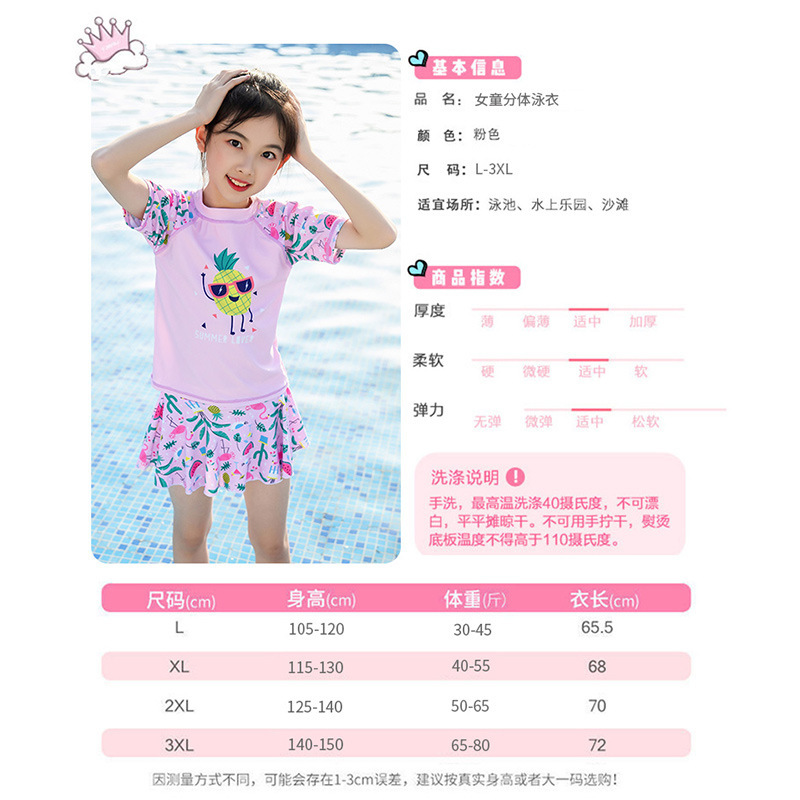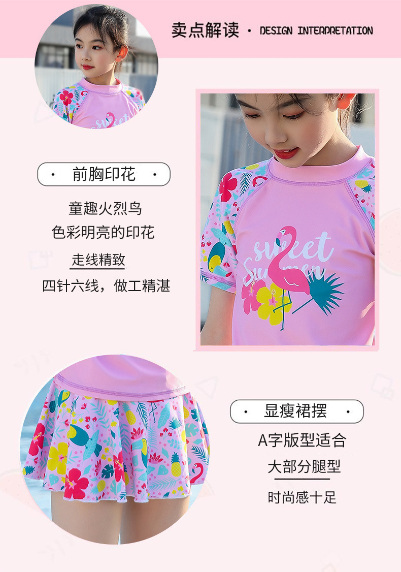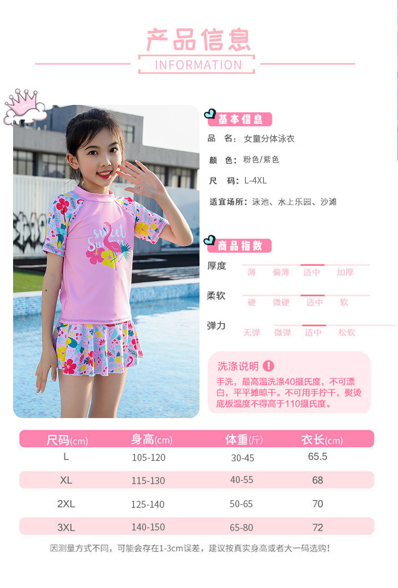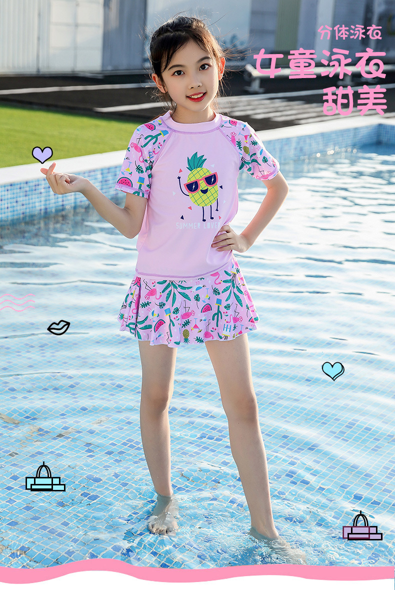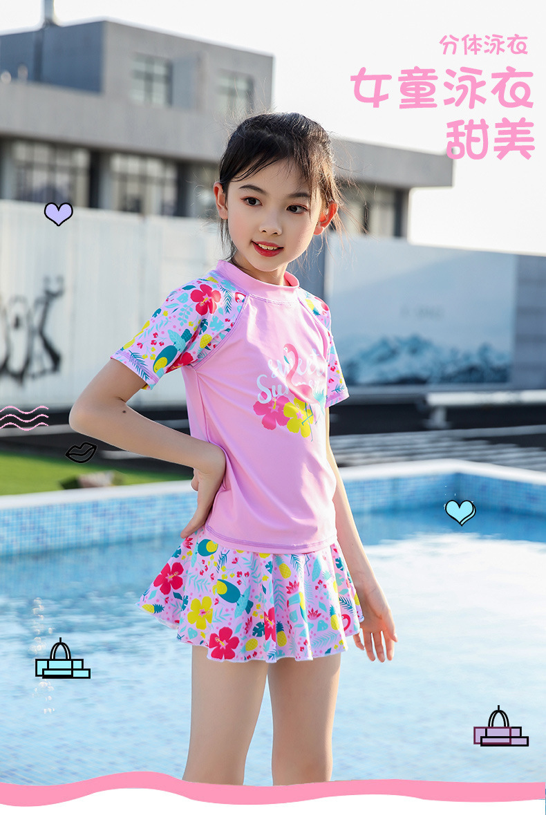 【女童泳衣,时尚分体裙式设计!】女童泳衣儿童分体裙式游泳衣 中大童女孩保守平角 速干防晒小童套装-QQ
