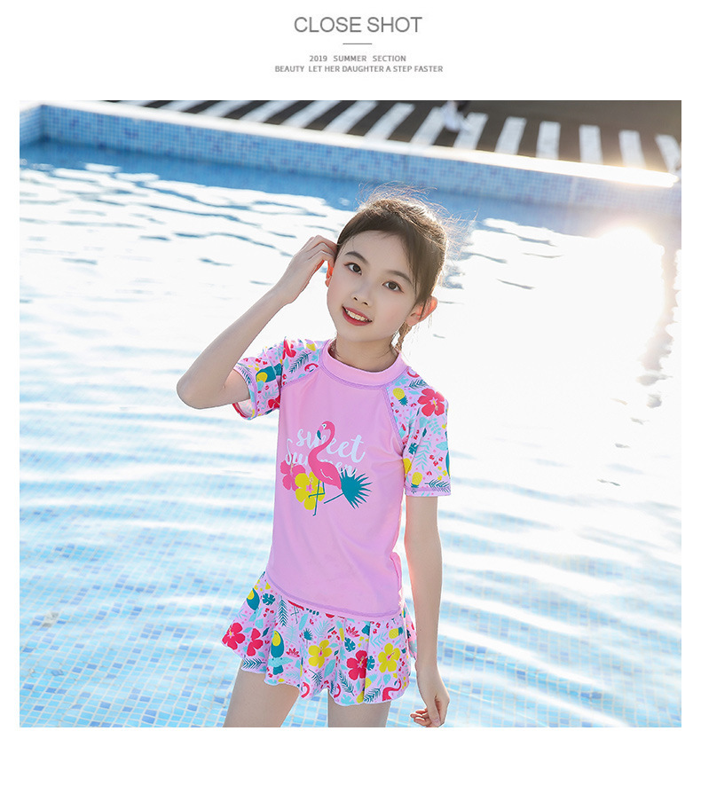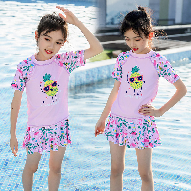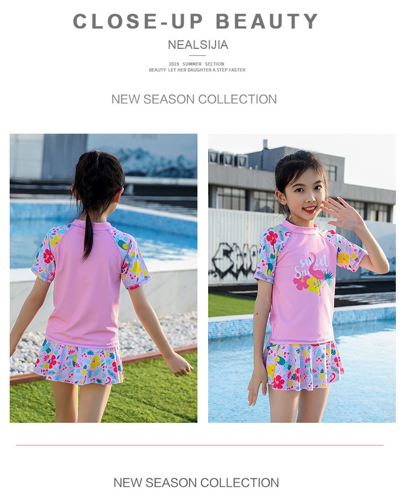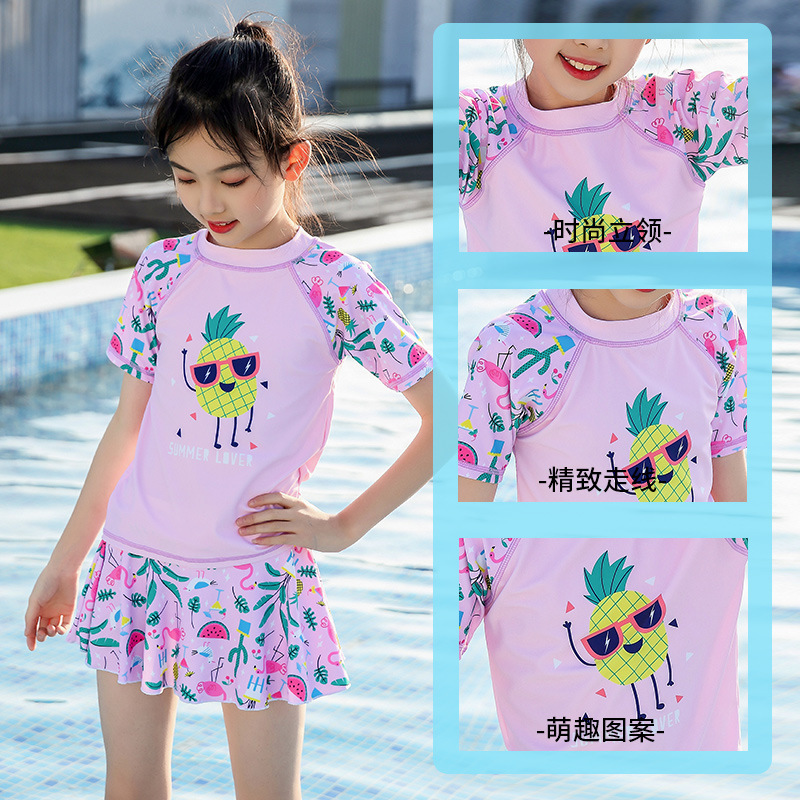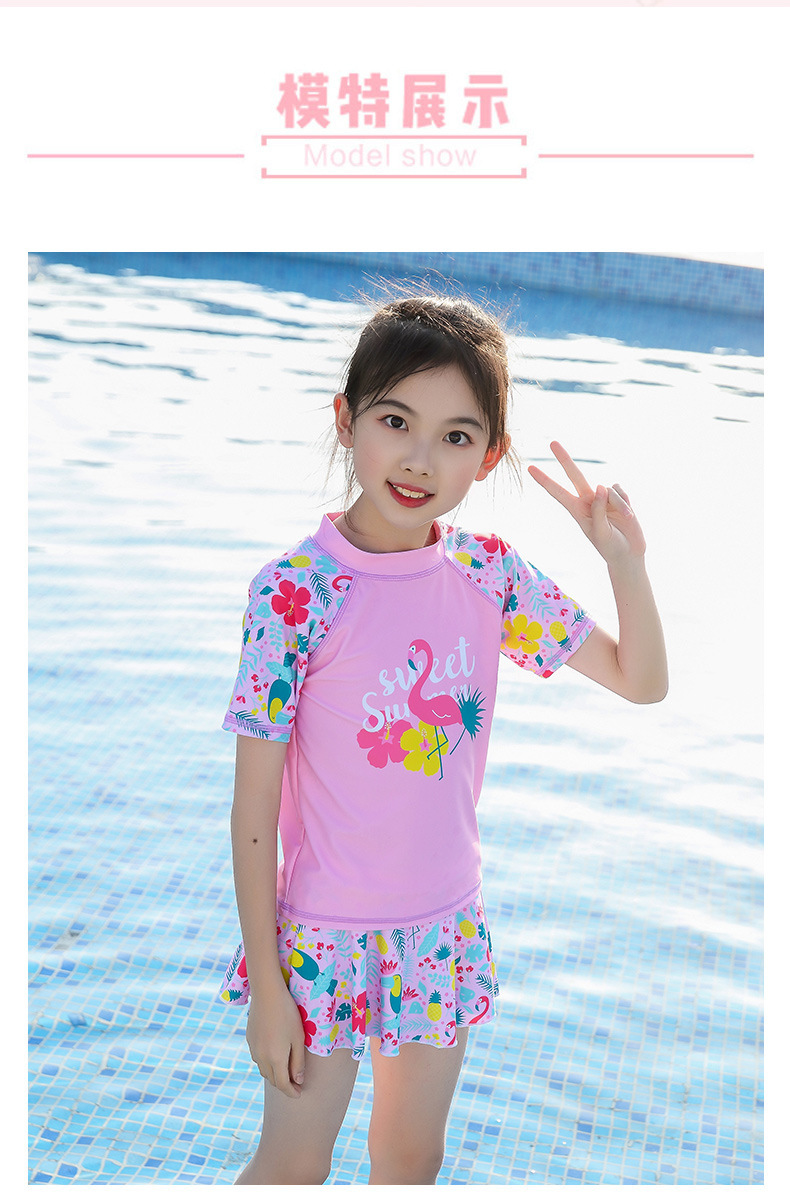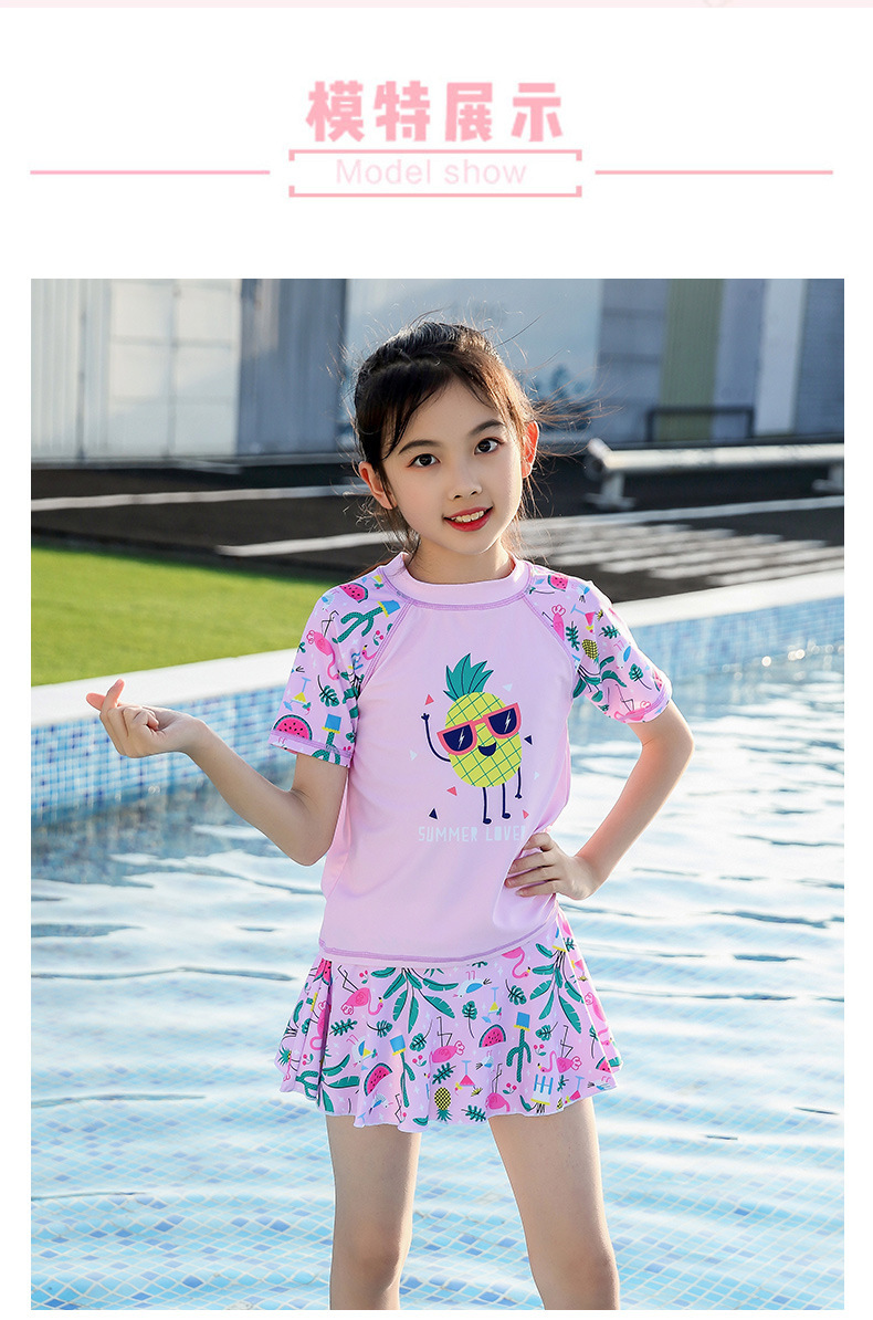 【女童泳衣,时尚分体裙式设计!】女童泳衣儿童分体裙式游泳衣 中大童女孩保守平角 速干防晒小童套装-QQ