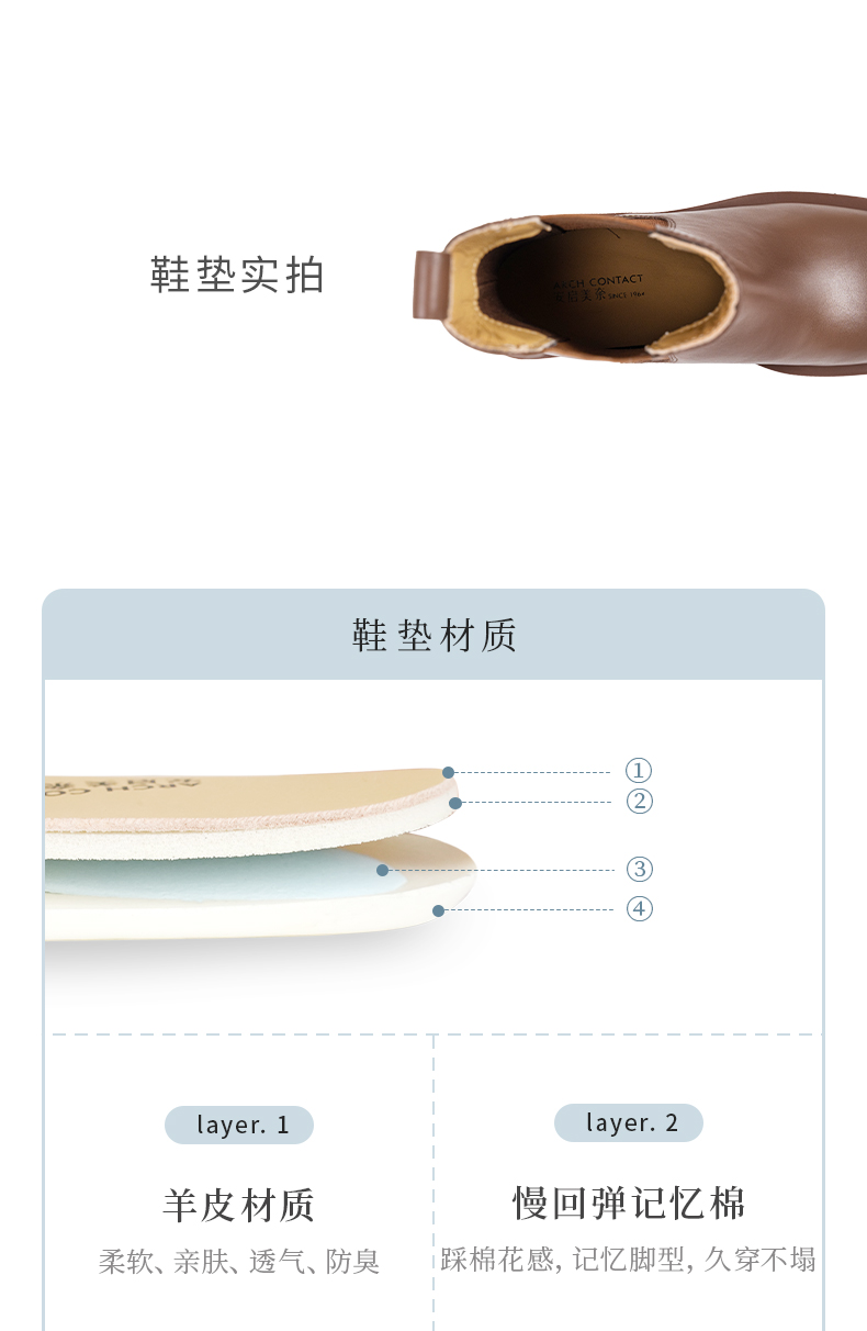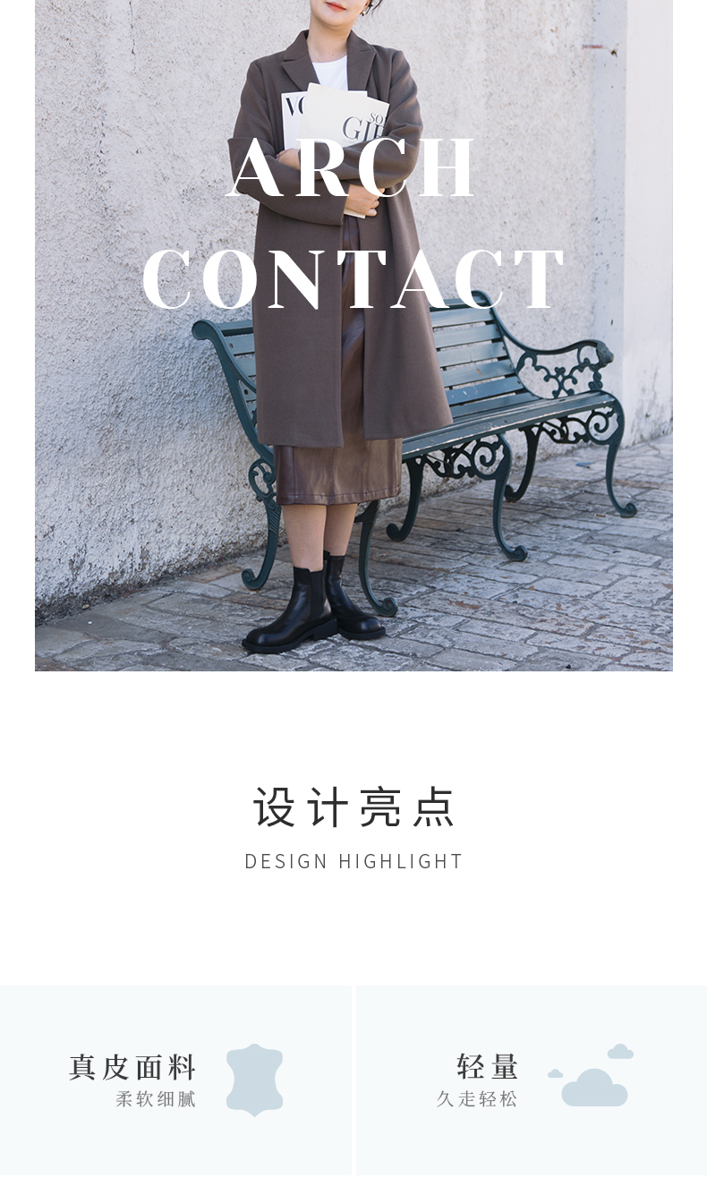 ARCHCONTACT安启美奈低跟中筒切尔西女靴52879