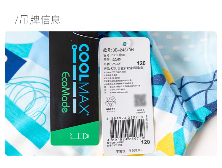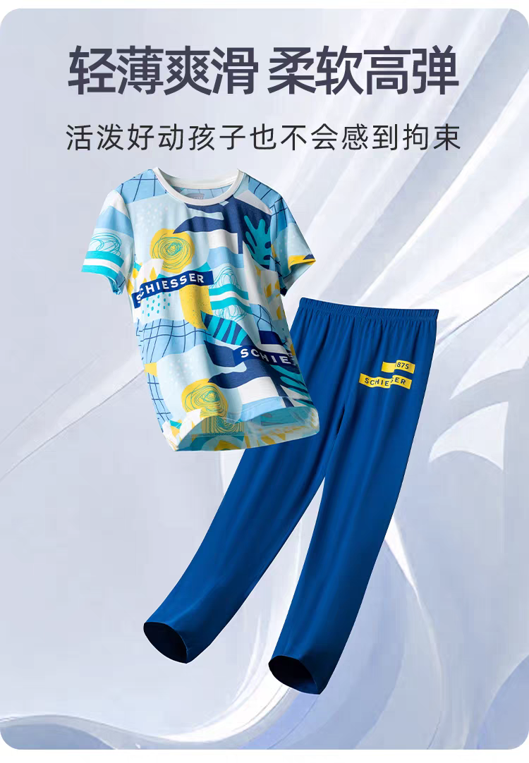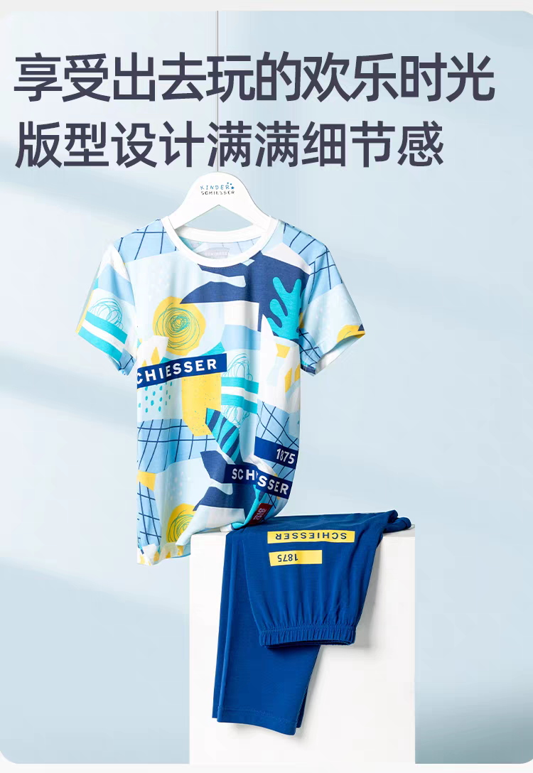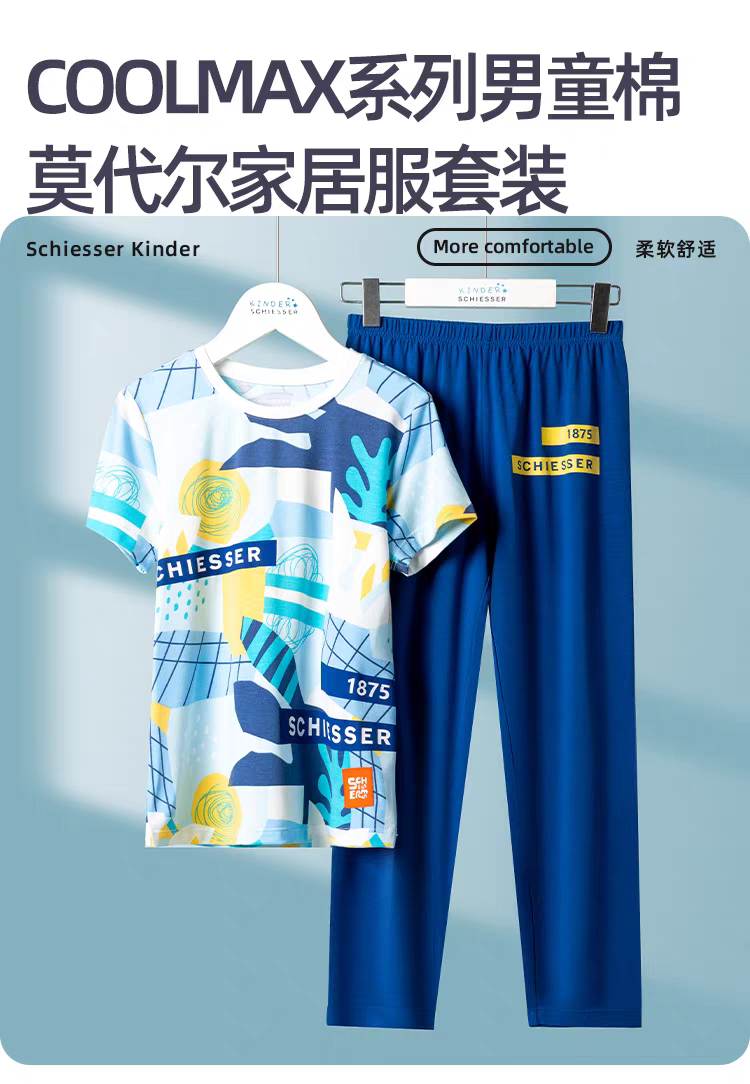 【COOL凉感】SCHIESSER德国舒雅男童COOLMAX凉感吸湿排汗功能面料短袖长裤套装3B/24310H