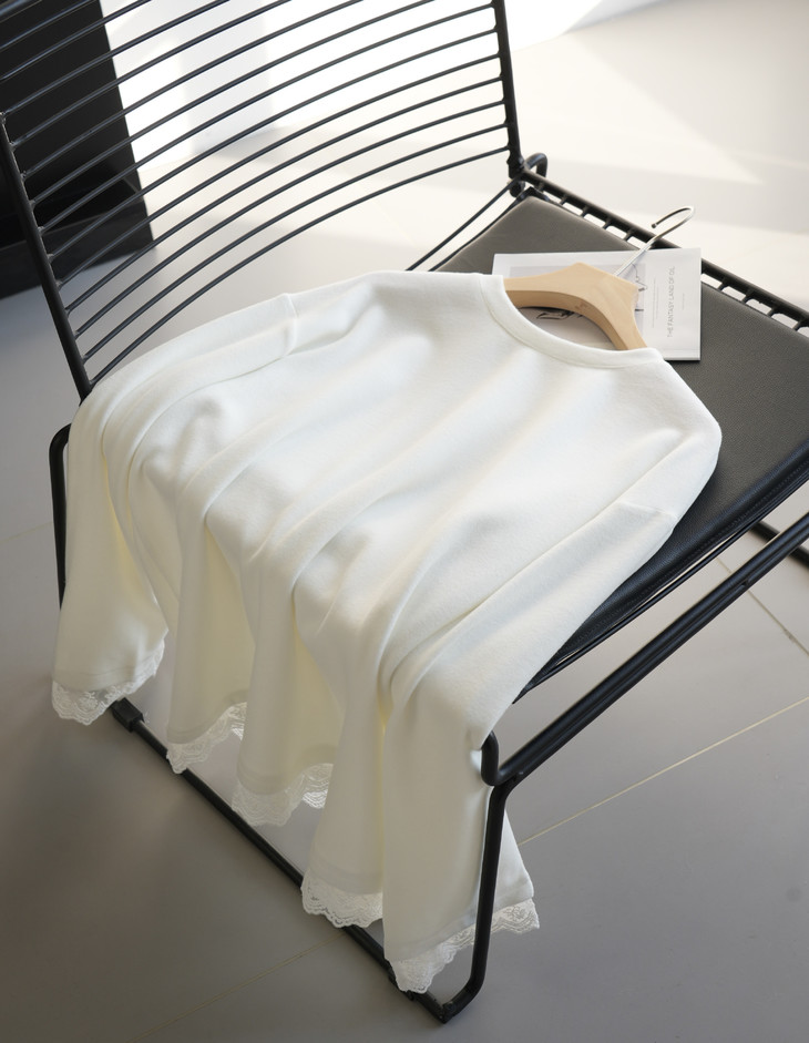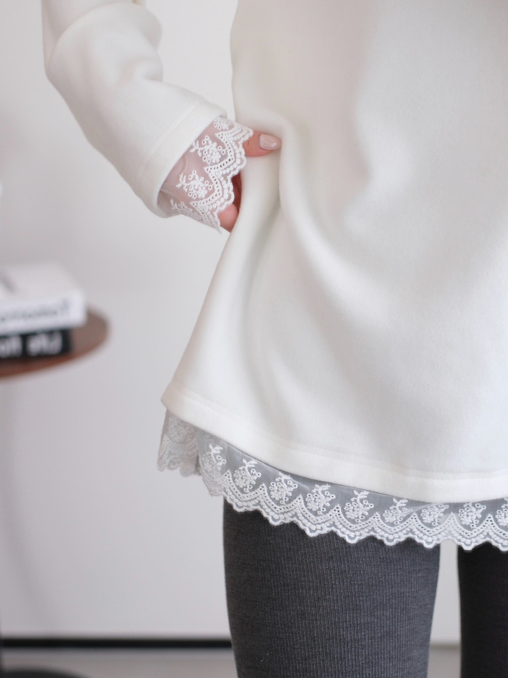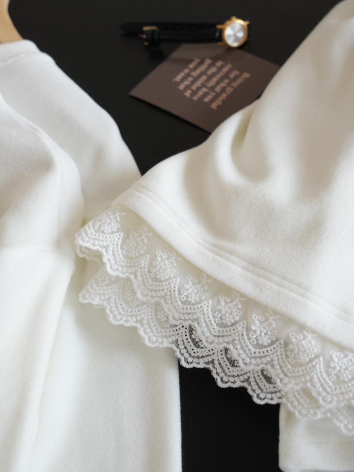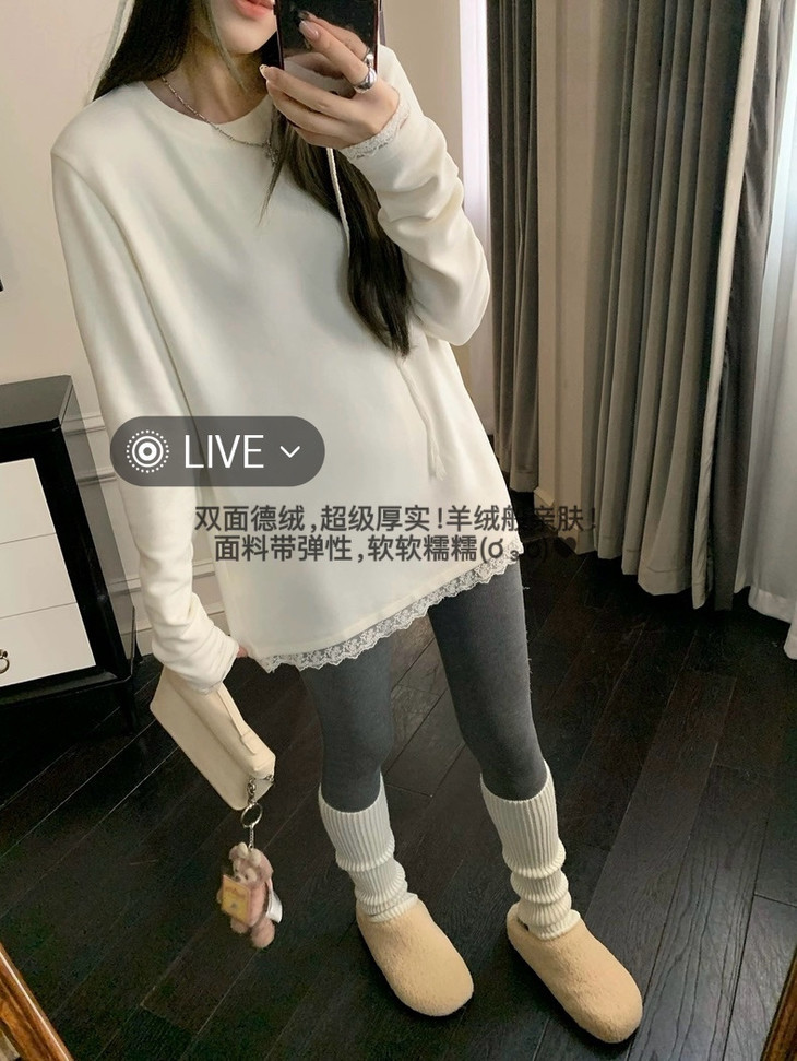 佰飞特加厚双面德绒蕾丝拼接打底衫