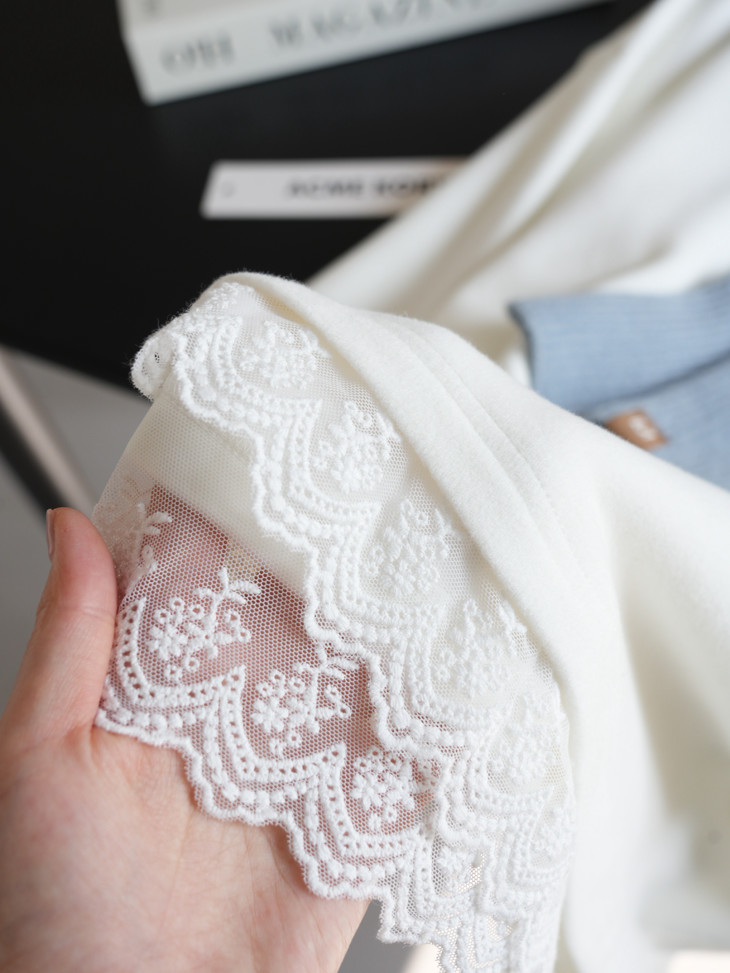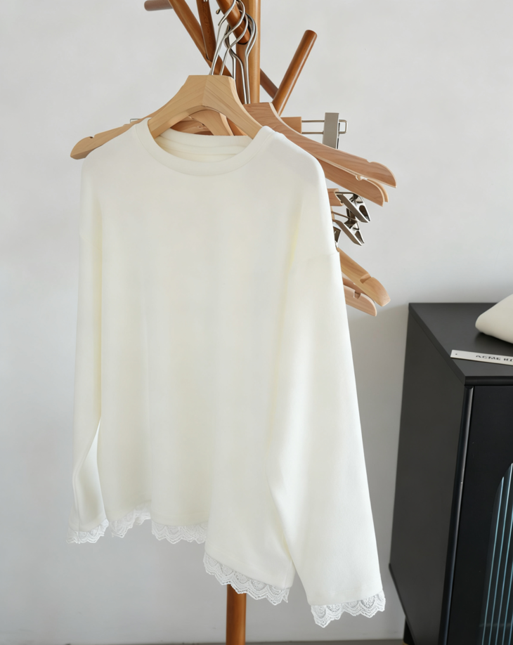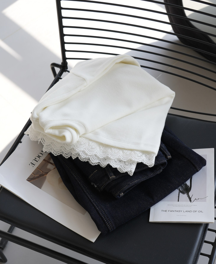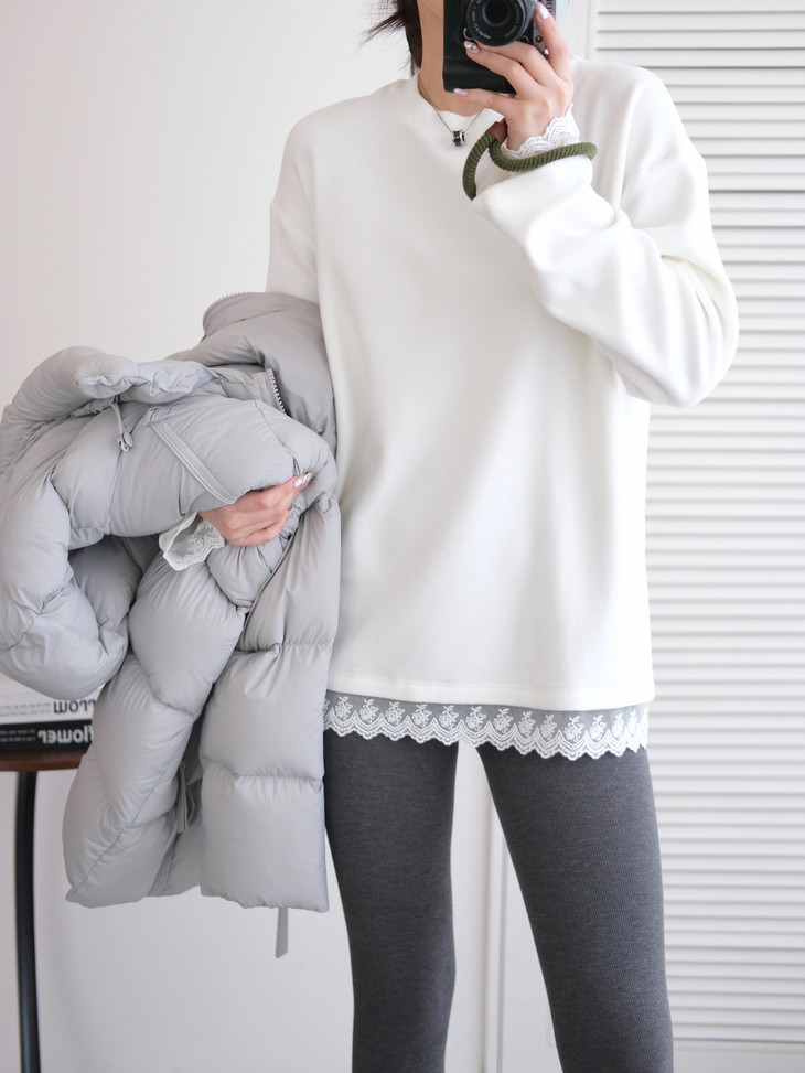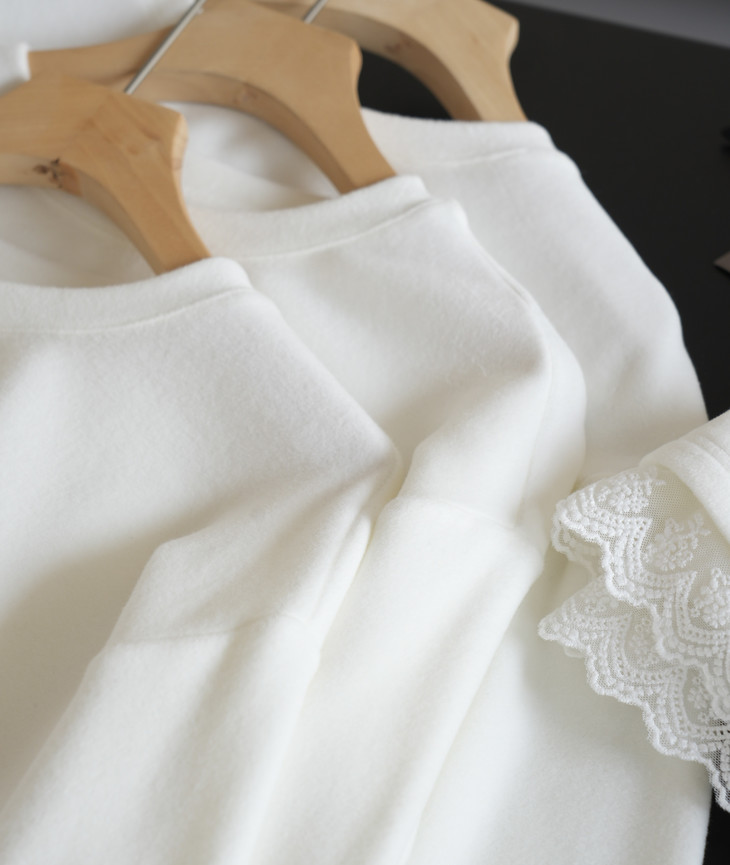 佰飞特加厚双面德绒蕾丝拼接打底衫