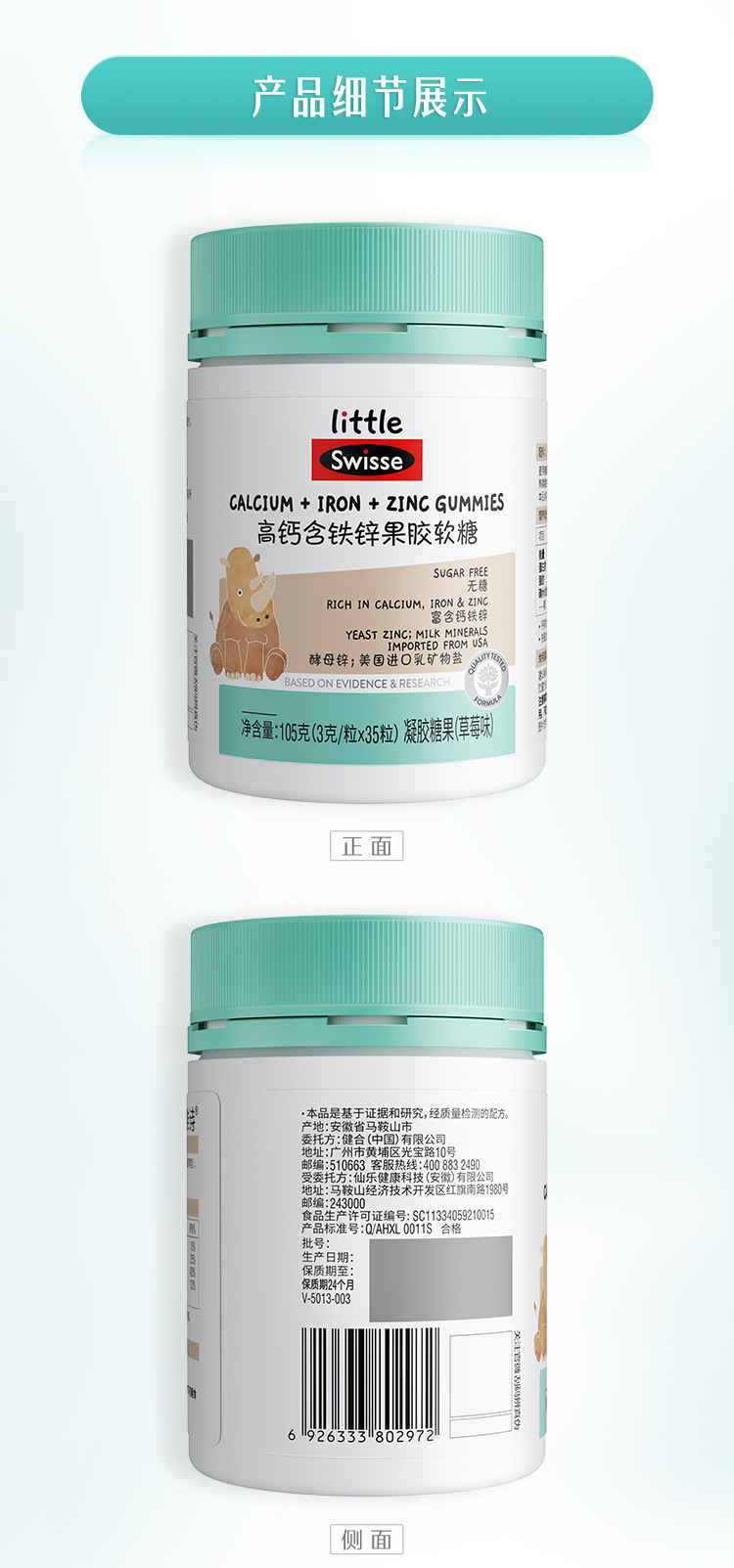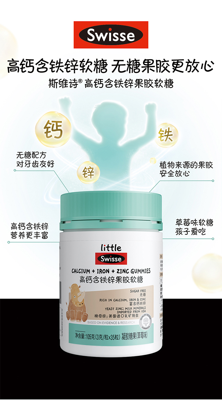 little Swisse小小斯维诗高钙含铁锌果胶软糖(草莓味)105g(3g/粒*35粒)/瓶