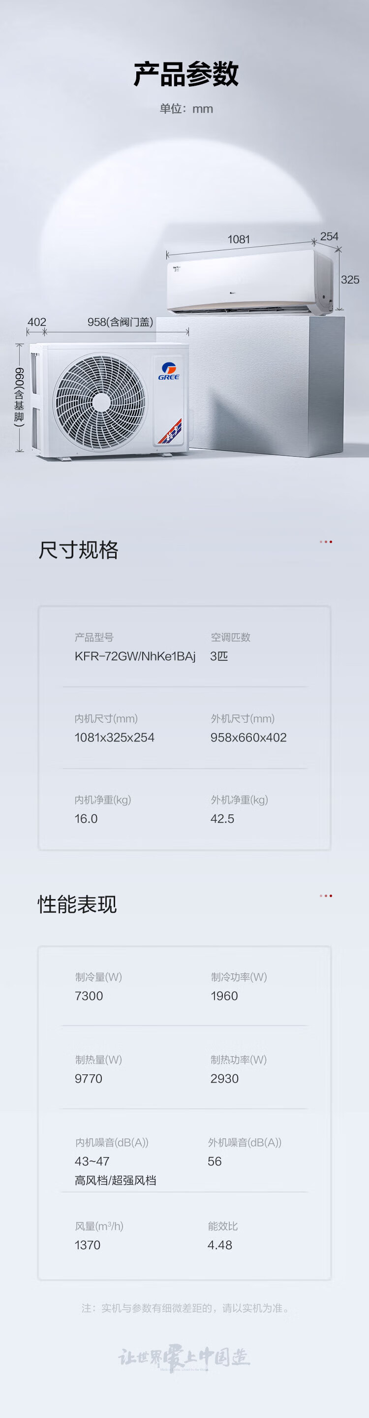 格力(GREE)3匹 京韵挂机 一级能效 变频冷暖 大风量 节能 WIFI智控 净菌自洁 壁挂式空调挂机 KFR-72GW/NhKe1BAj