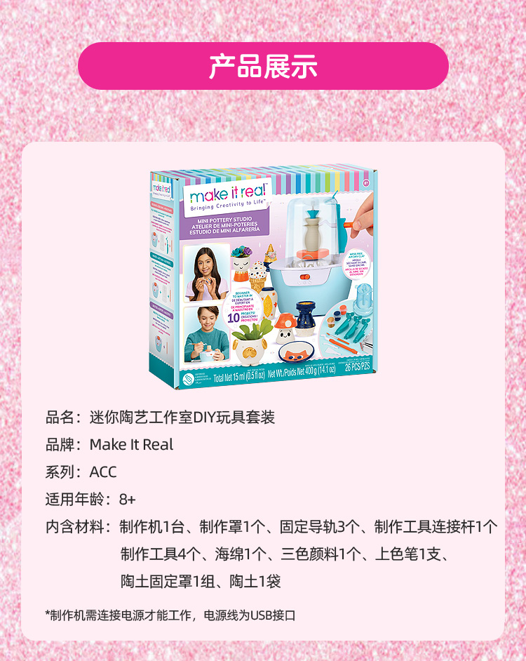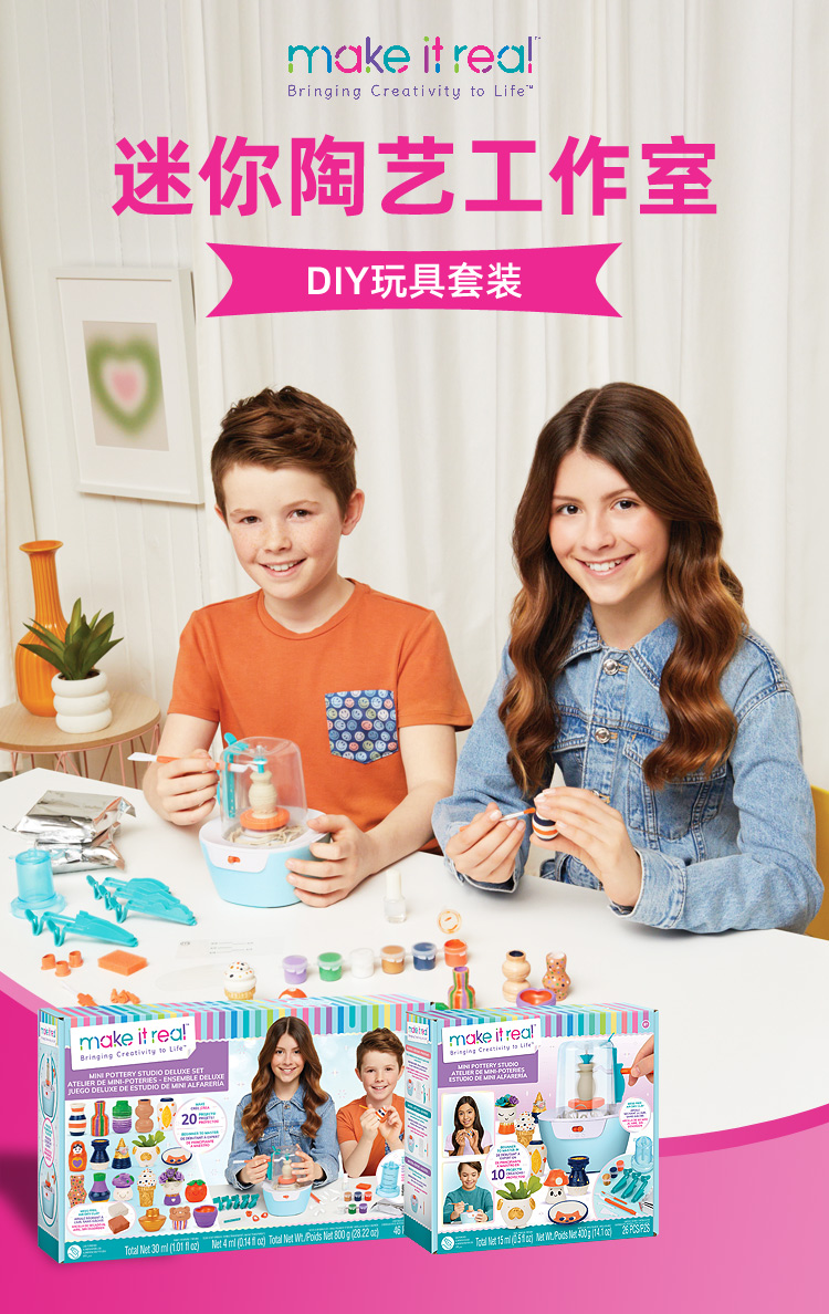 make it real美益睿迷你陶艺工作室DIY玩具套装MIRC1465