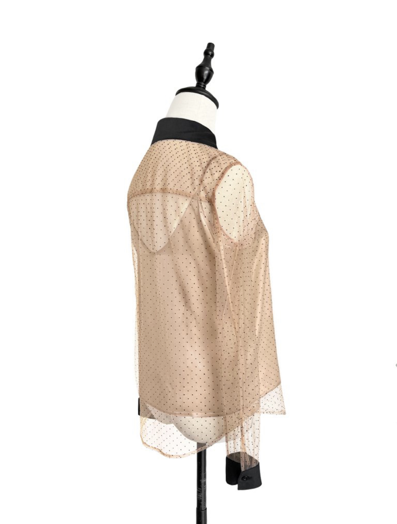 TYNVIE 翻领长袖衬衫 - 摩卡色透视波点