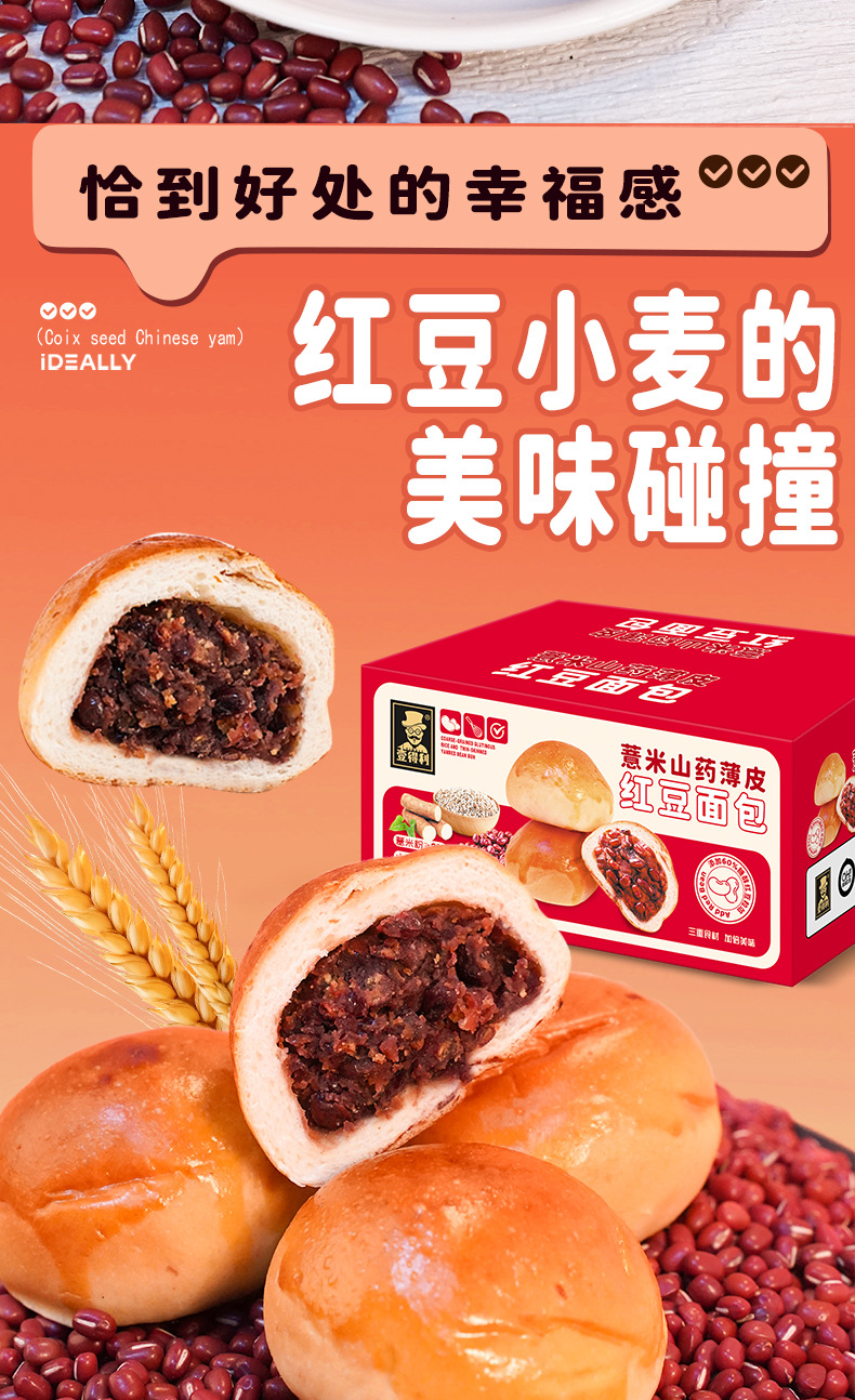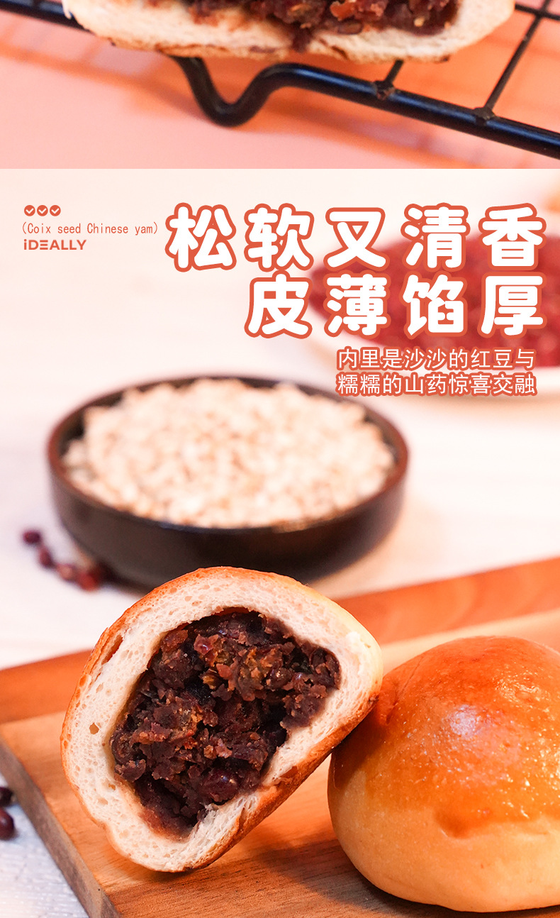 【49.9到手三箱❗薄皮山药薏米红豆包】甄选品质原料制作,松软又清香,满满内馅看的见,早餐面包软面包代餐用零食品健康L