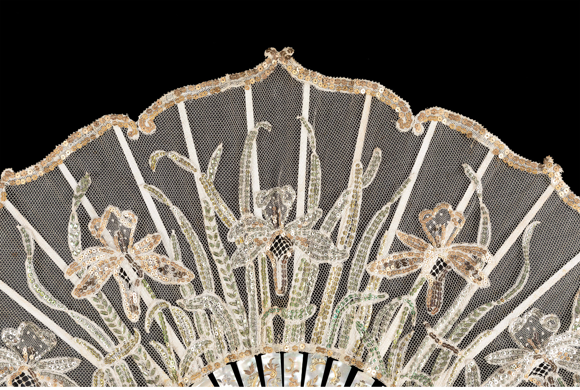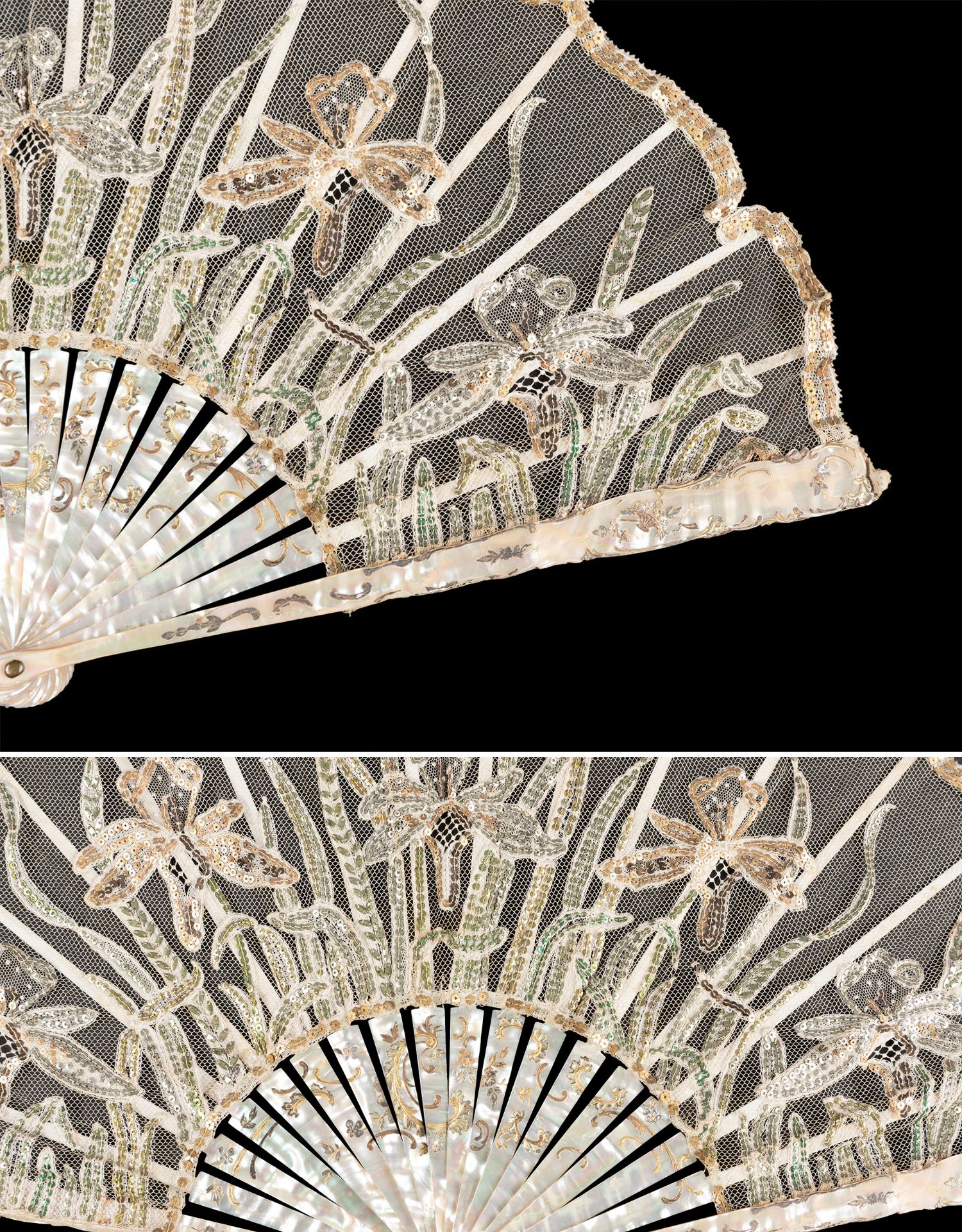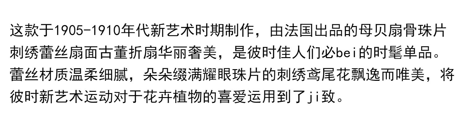 独角鹿西洋古董法国鸢尾花主题珠片刺绣蕾丝扇面母贝扇骨折扇