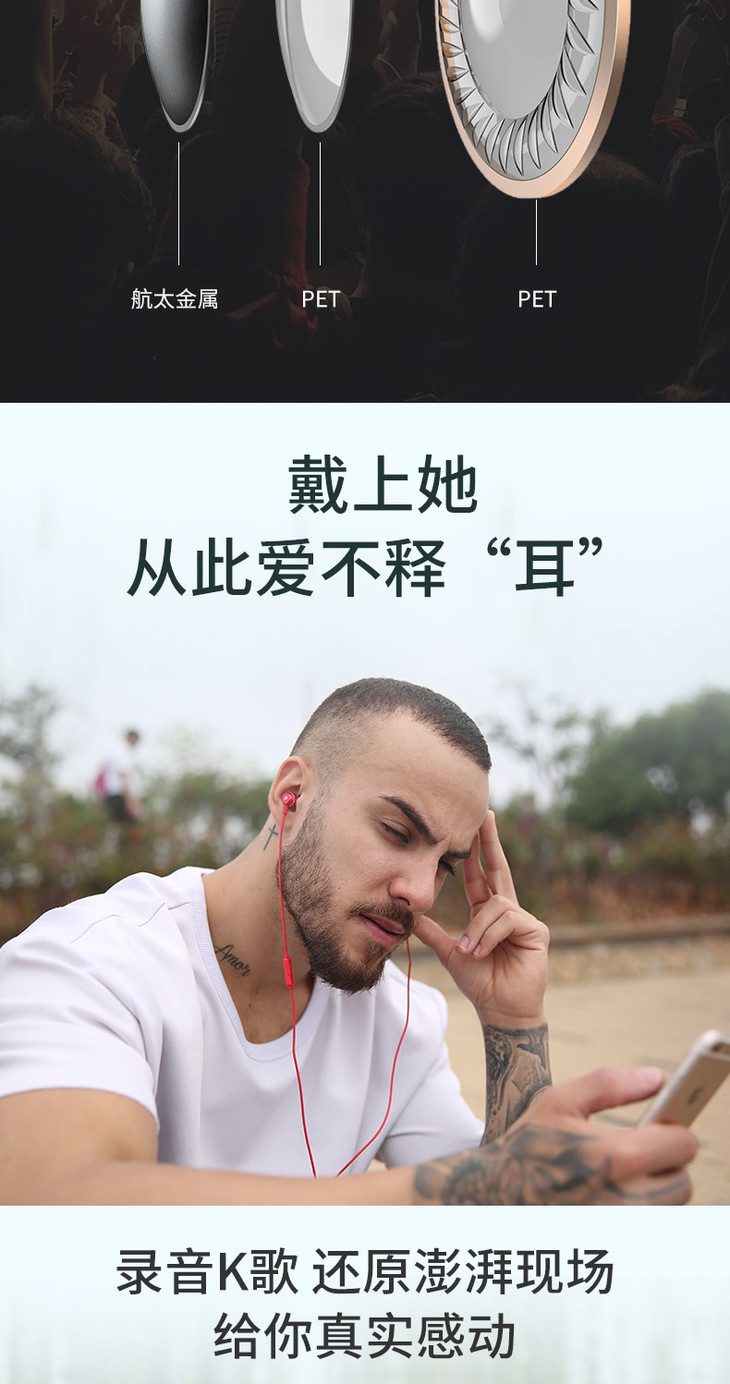Feliztrip斐利斯 时尚双膜片动圈带麦克风入耳式耳机有线控听音清晰畅玩游戏 TR-H19