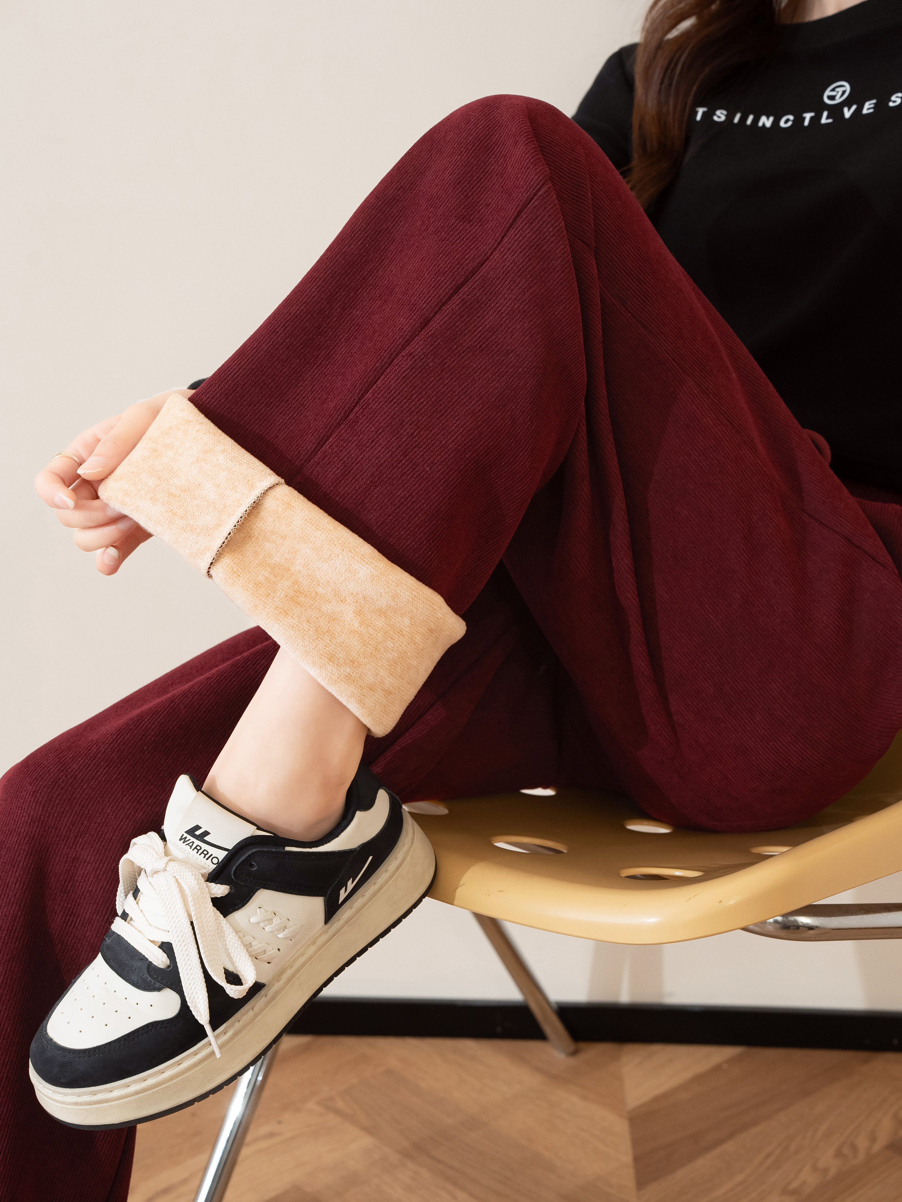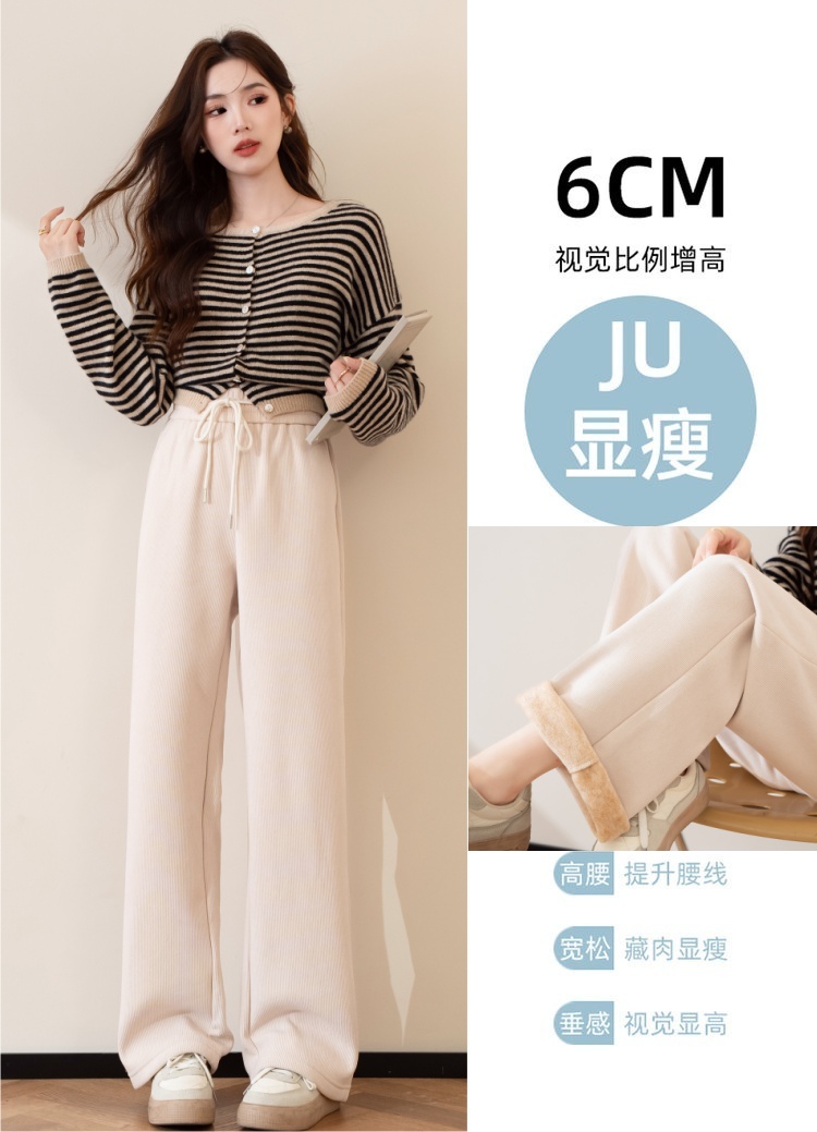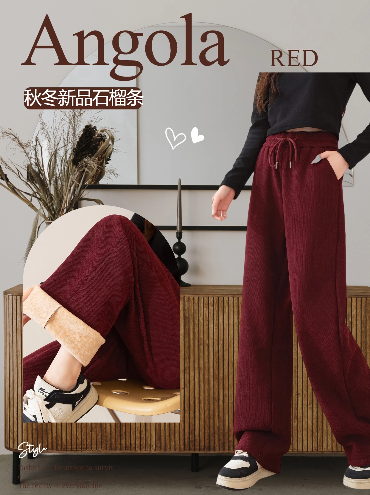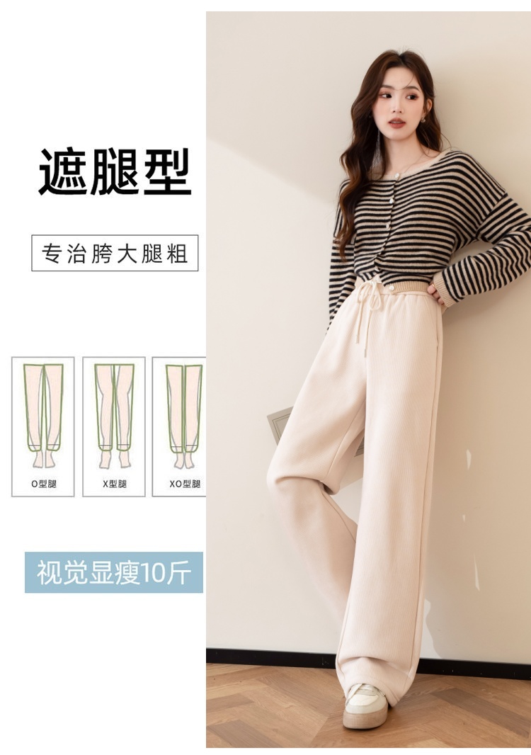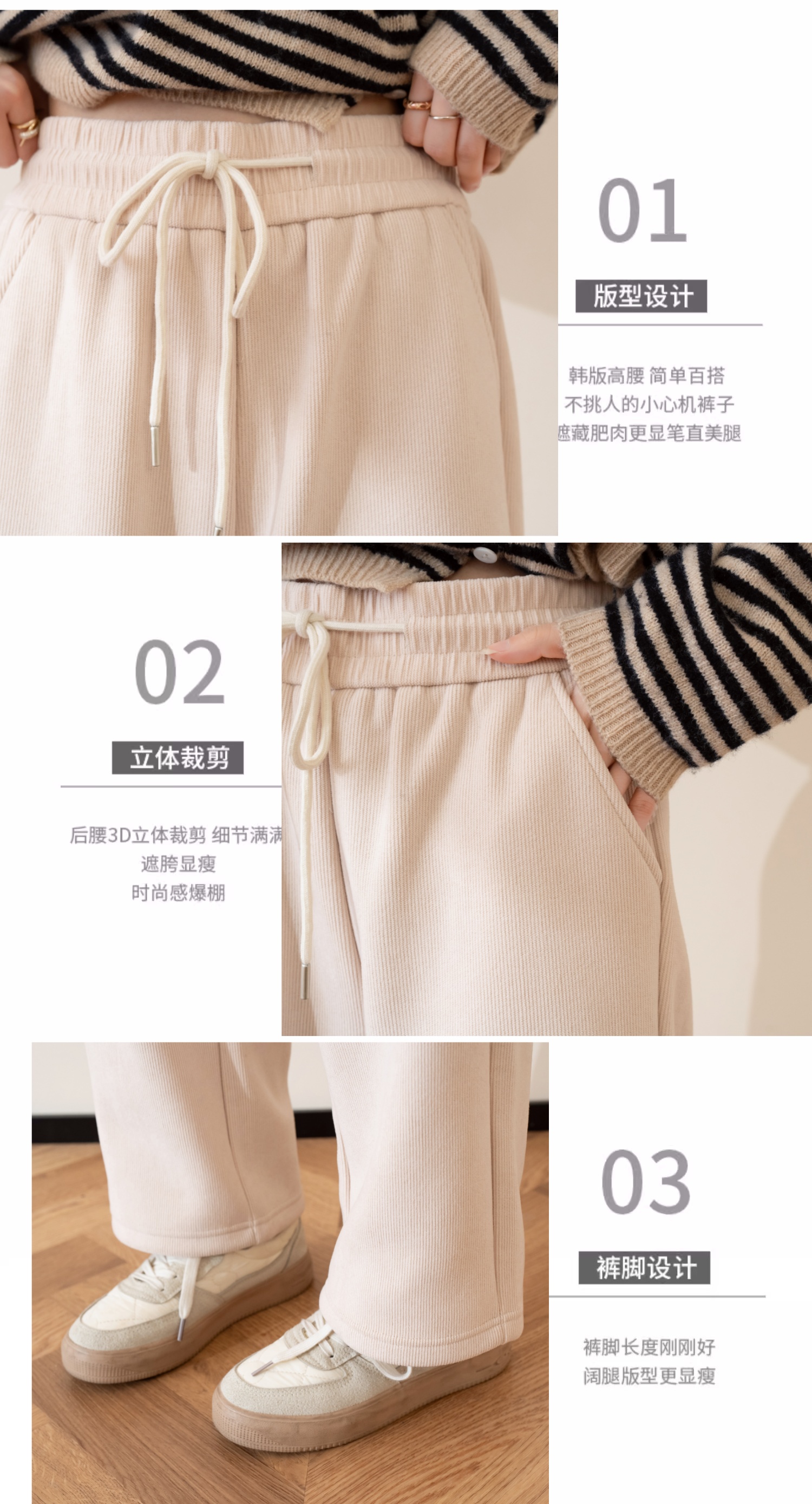 【YW】无忧购秋冬韩版百搭石榴条驼绒加厚直筒休闲裤907(截单后7天发货)25年清仓捡漏25年清仓捡漏