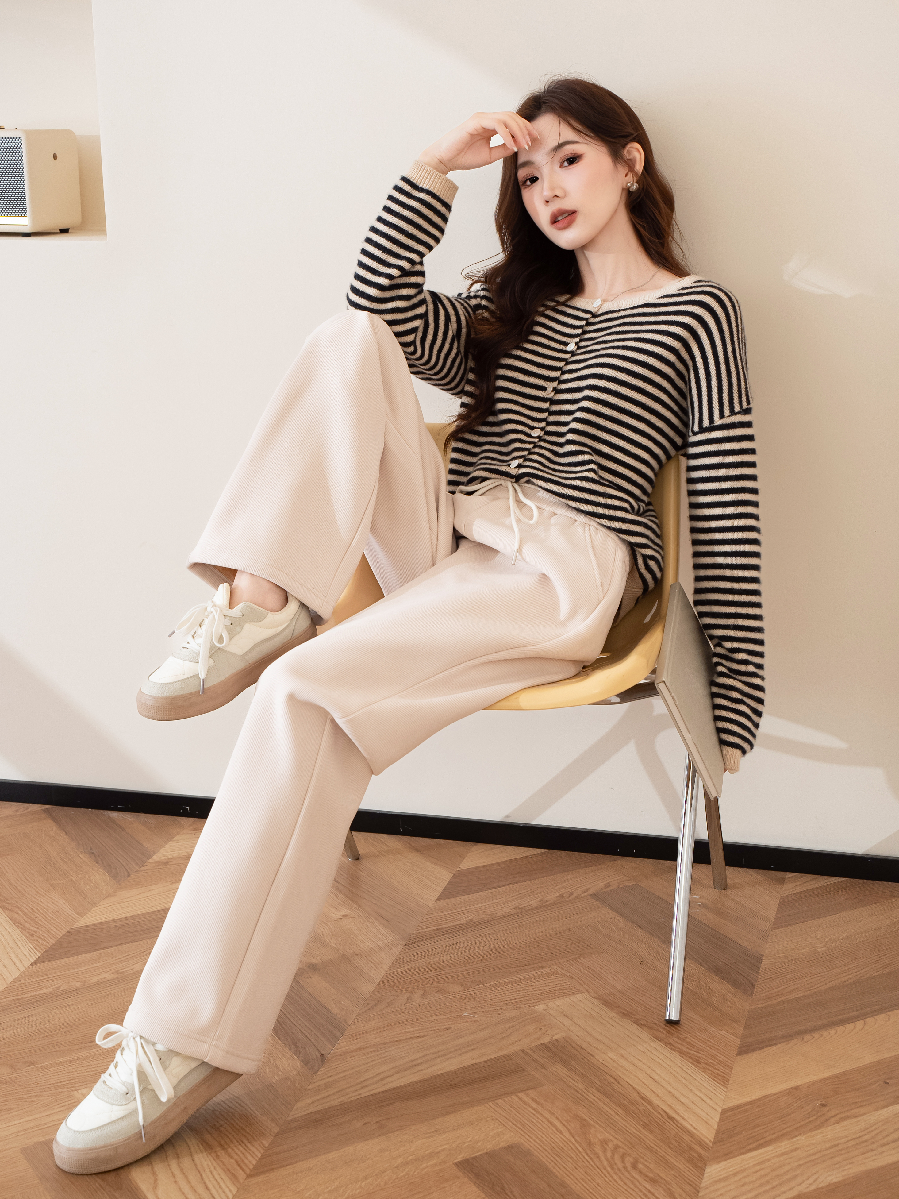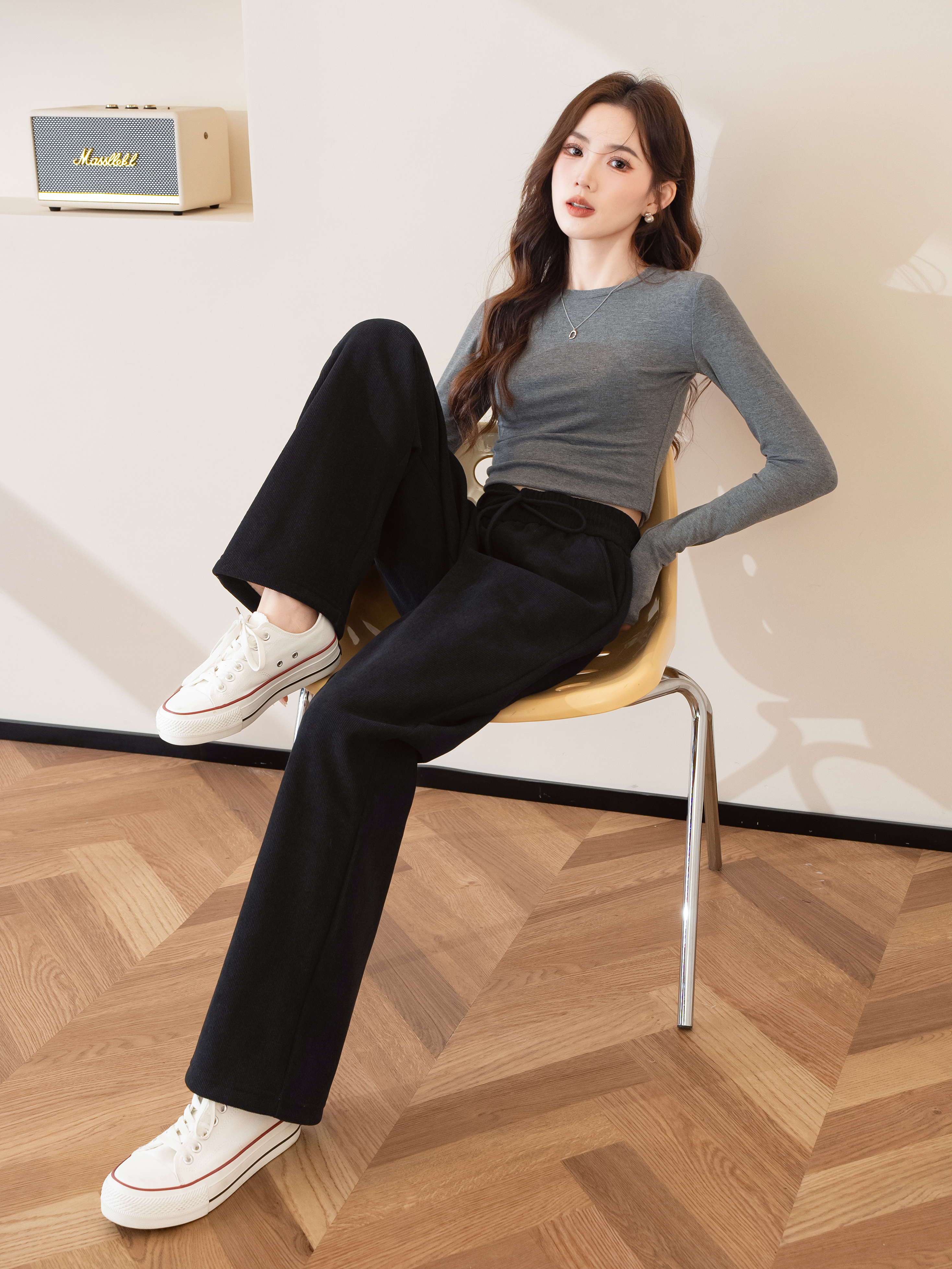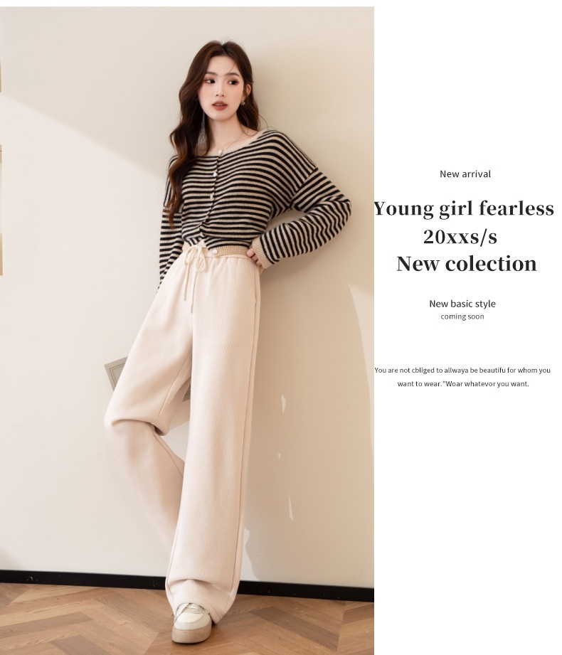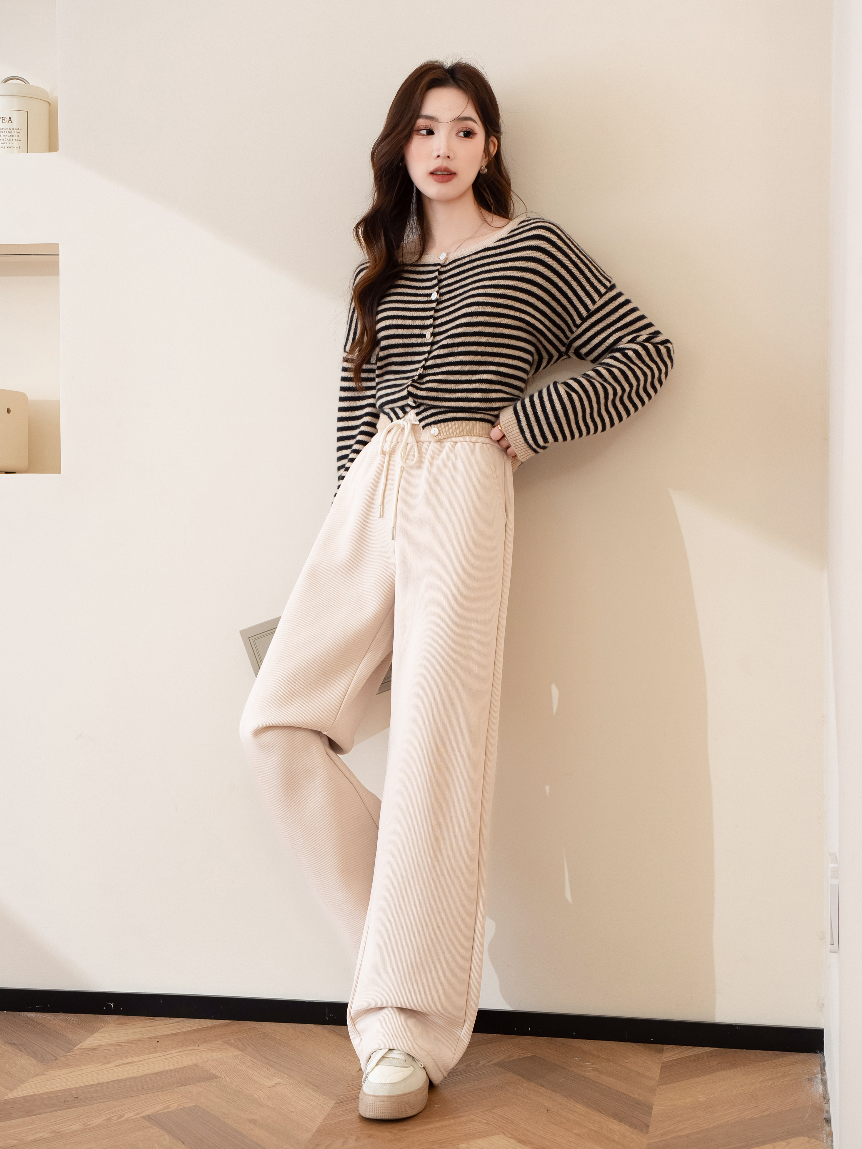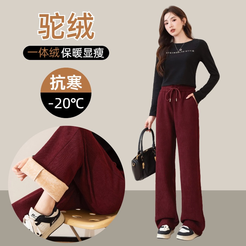 【YW】无忧购秋冬韩版百搭石榴条驼绒加厚直筒休闲裤907(截单后7天发货)25年清仓捡漏25年清仓捡漏