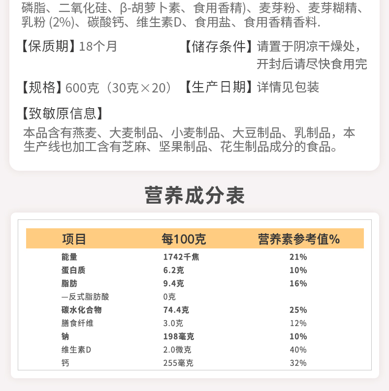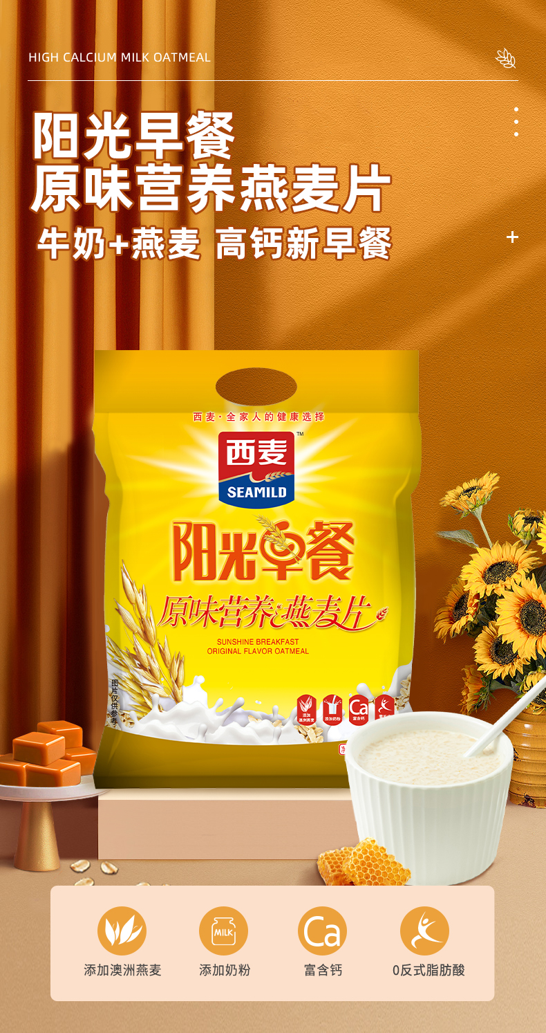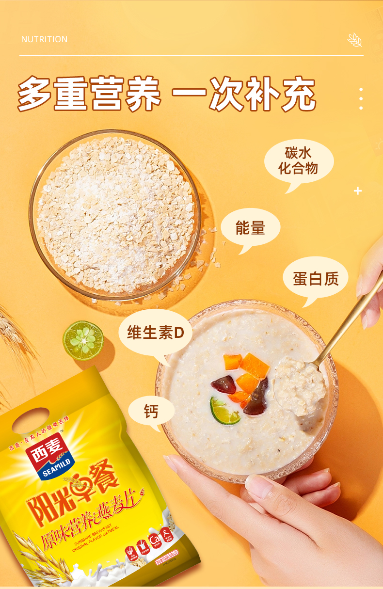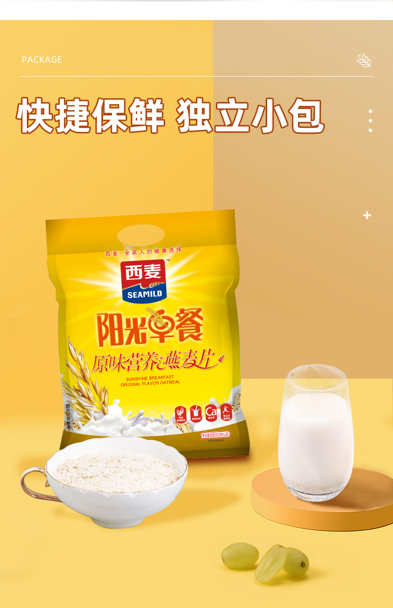 阳光早餐原味营养燕麦片600g袋装社区定制高蛋白饱腹代餐企业福利采购营养早餐