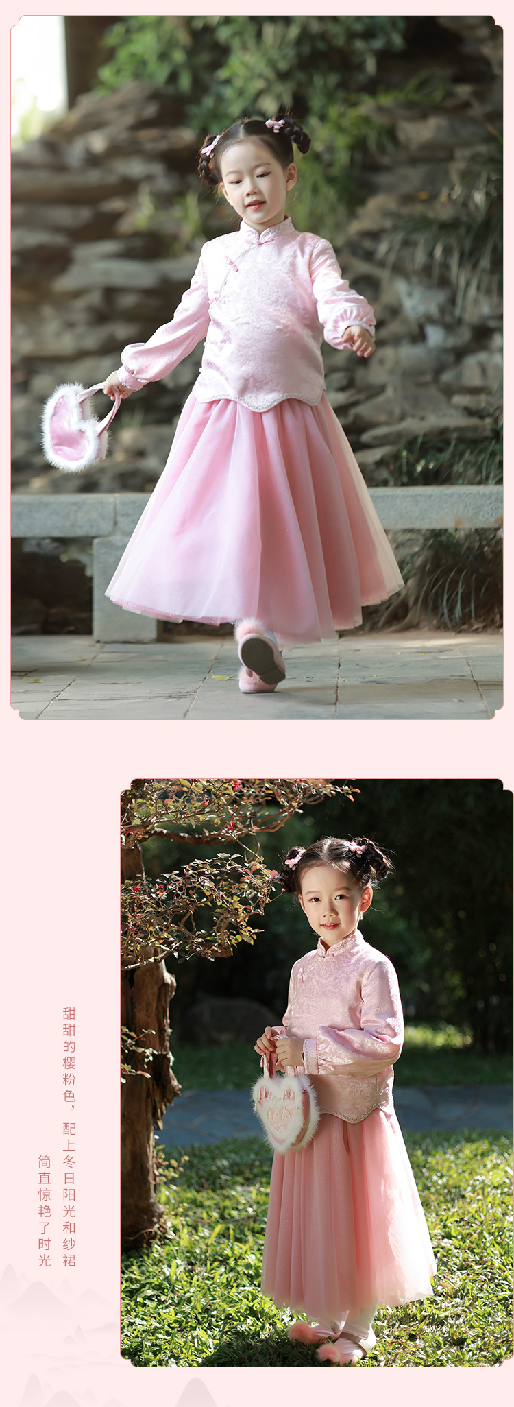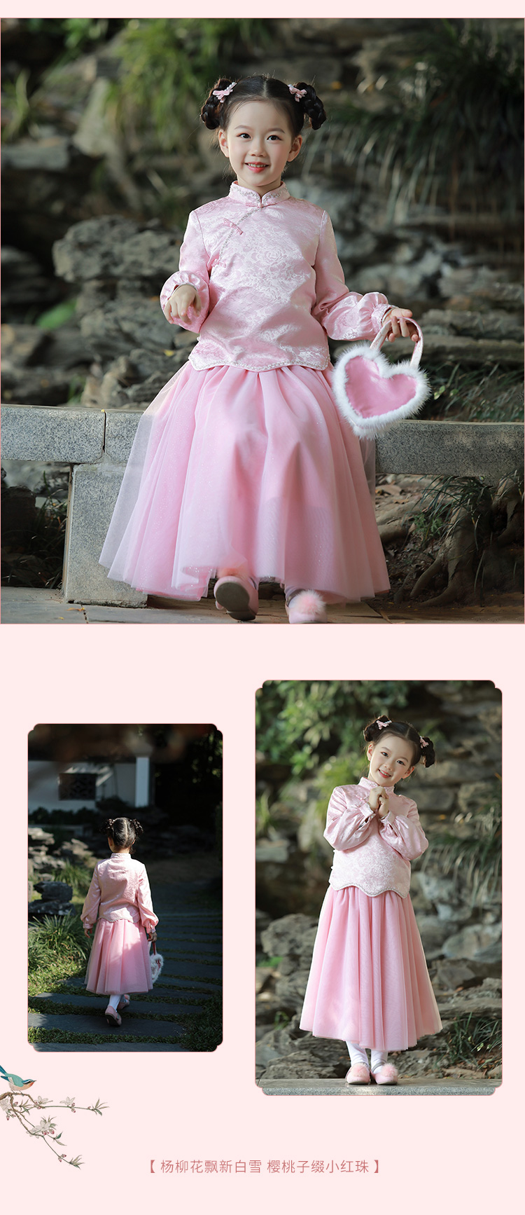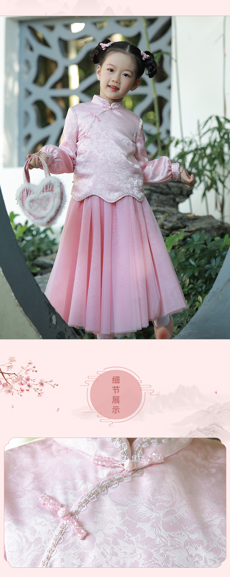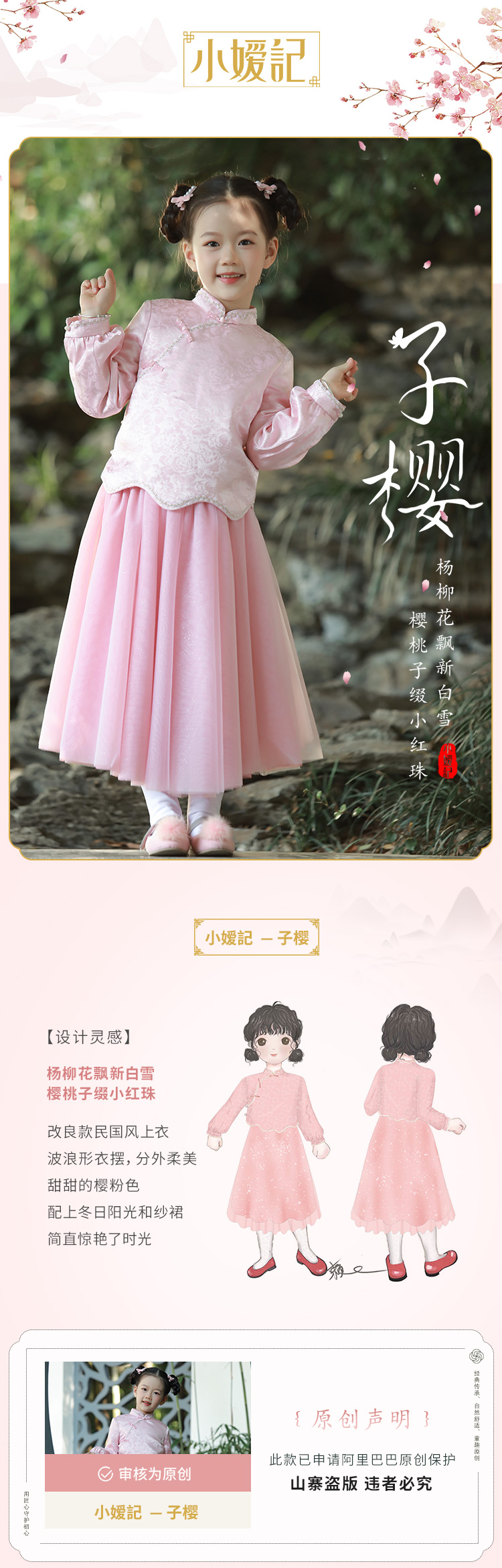 小嫒記国潮中国风新中式高端童装两件套连衣裙-子樱