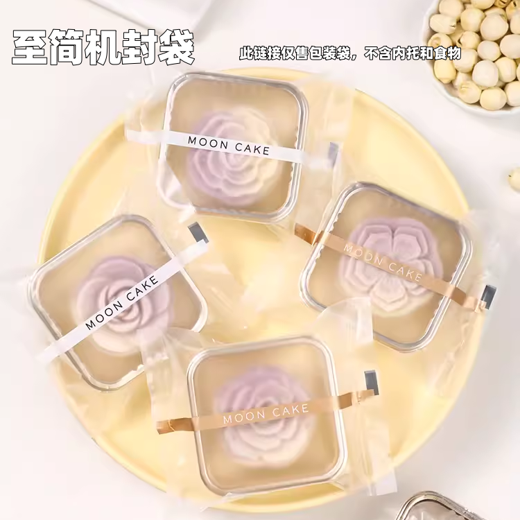 100个 月饼袋磨砂【至简】 机封袋 金色白色MOONCAKE包装袋 蛋黄酥月饼机封袋