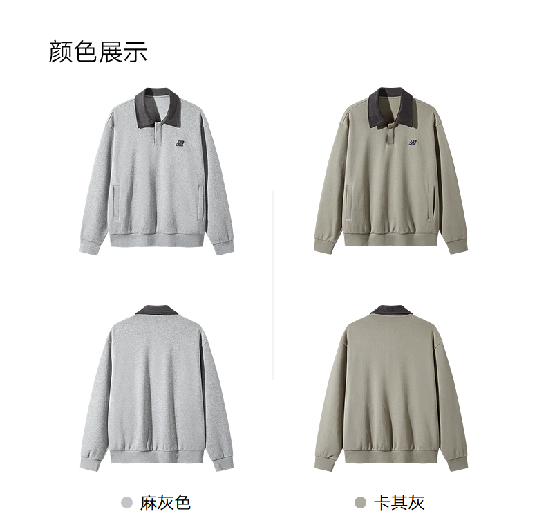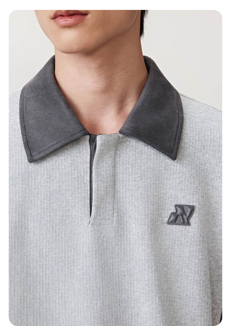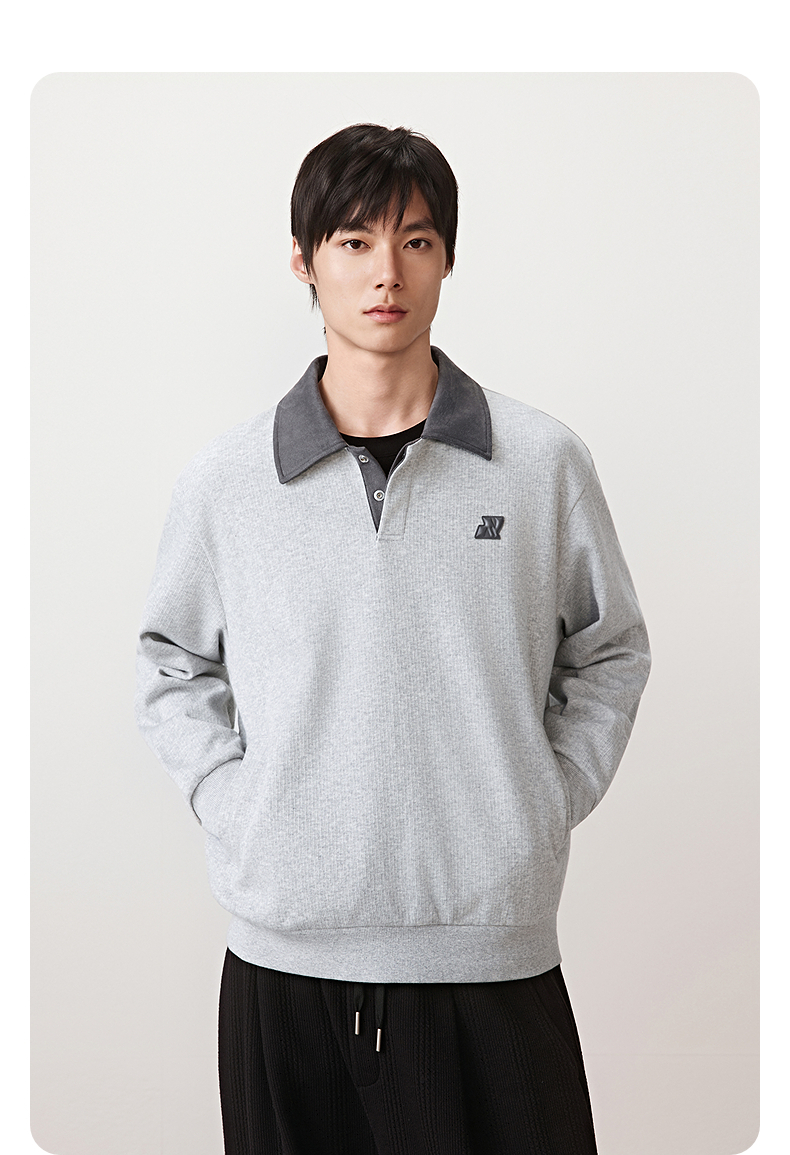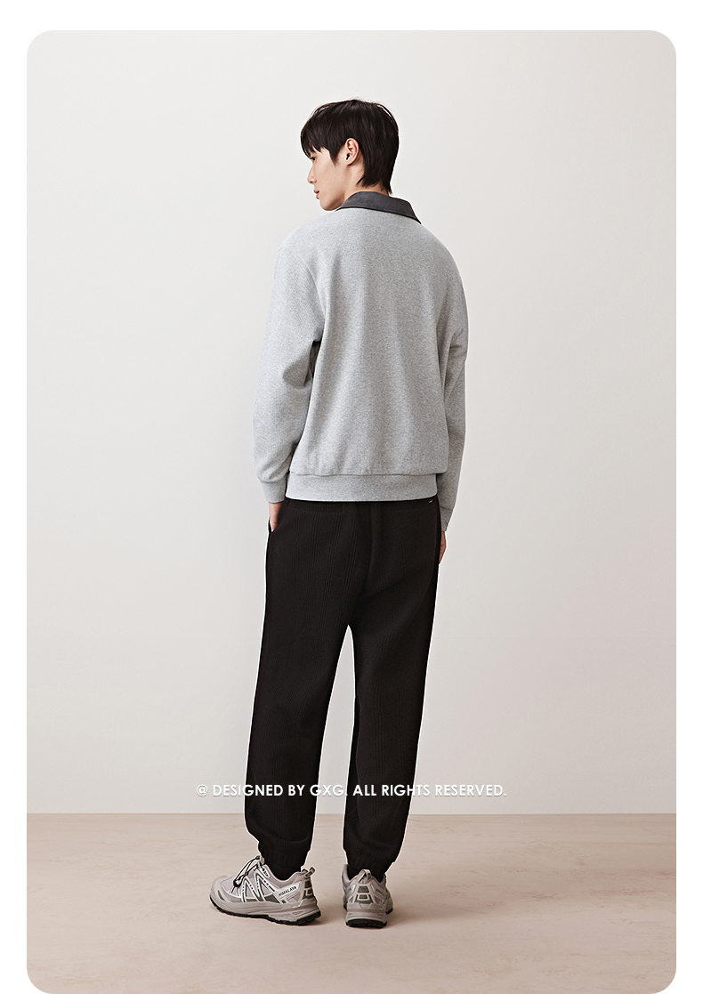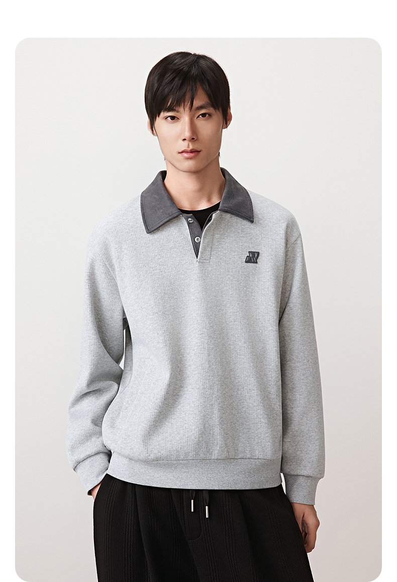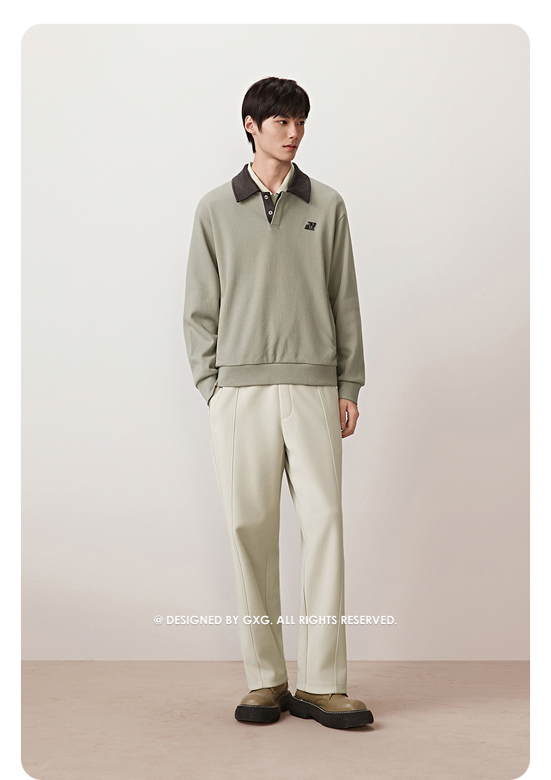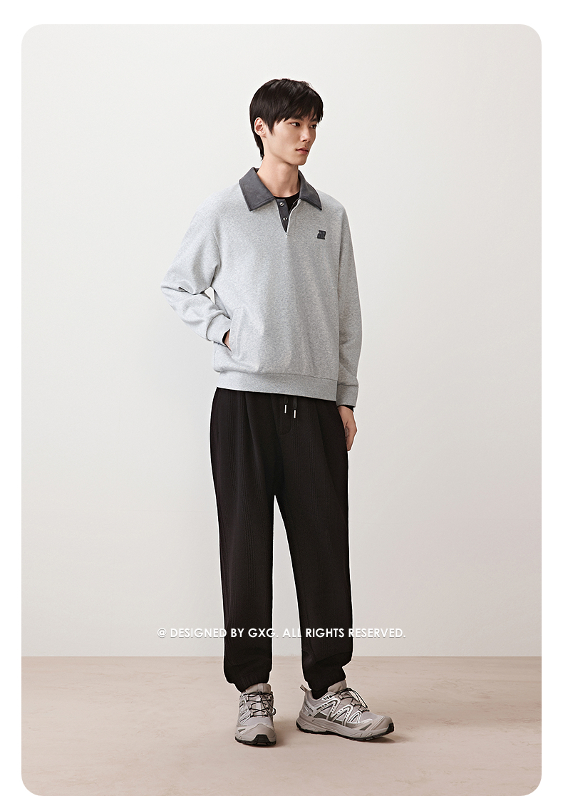 GXG男装 翻领卫衣撞色拼接肌理上衣polo领长袖内搭 2025秋季新品